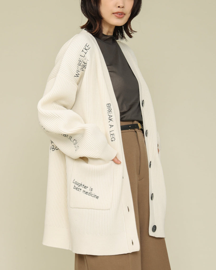 ダンボール糸7Gミラノリブ編み 刺繍カーディガン(T256-88045)