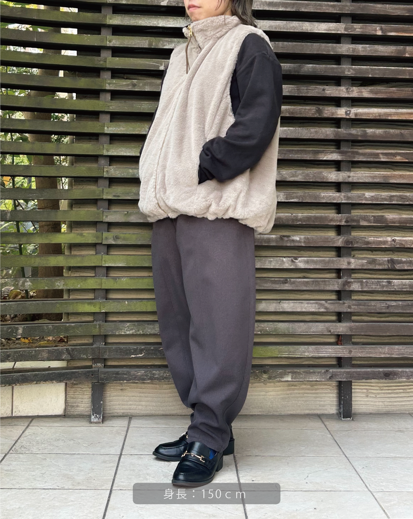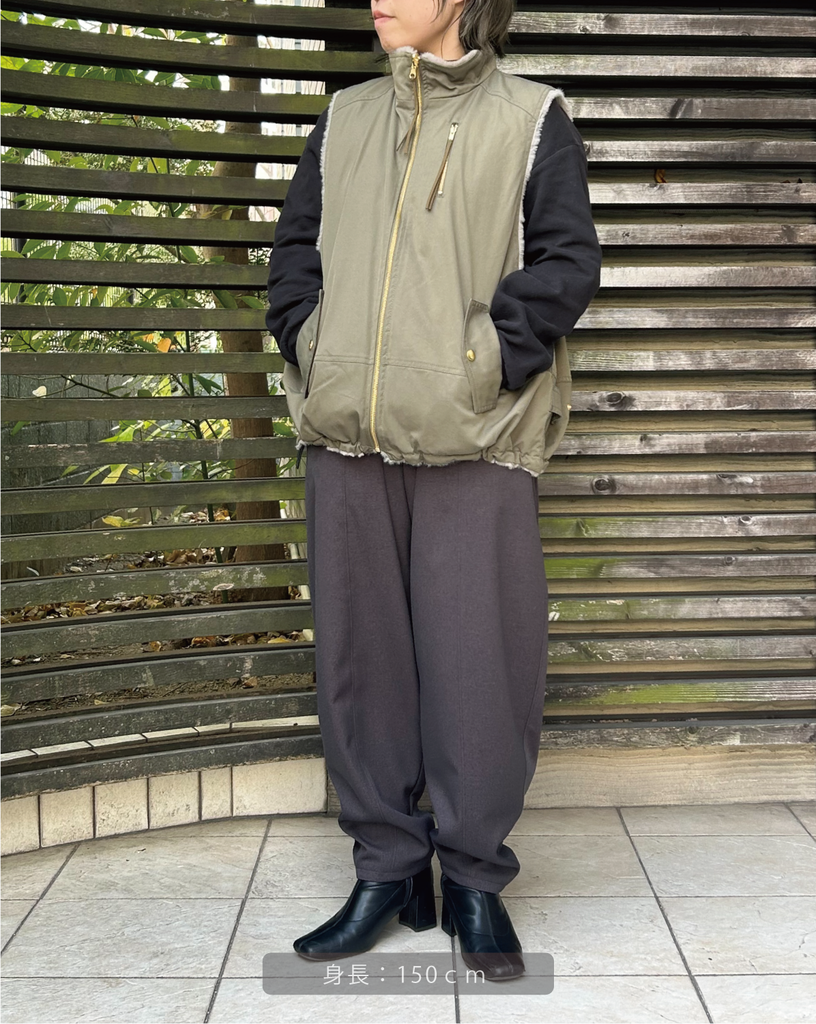 TCツイル×エコファー リバーシブルスタンドネックジレ(T256-83062)