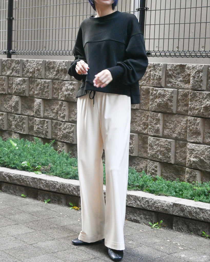 ショート丈のサイドスリットにオーバーシルエットがトレンドかつ大人カジュアルに着ていただけるアイテムです。身幅をゆったりと持たせ、体のラインを拾いにくい安心感のあるシルエットで、肩を少し落としたデザインが抜け感を演出してくれます。