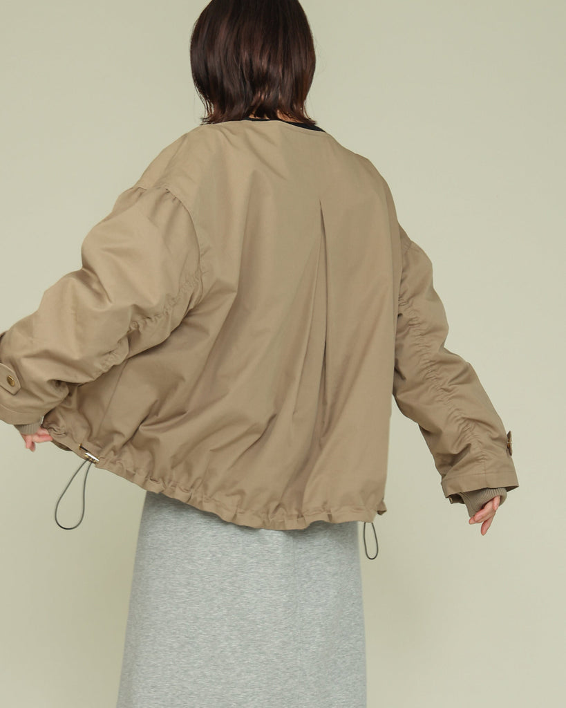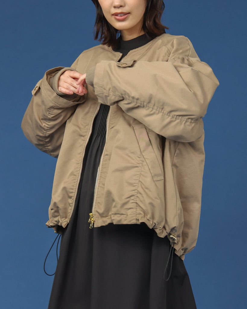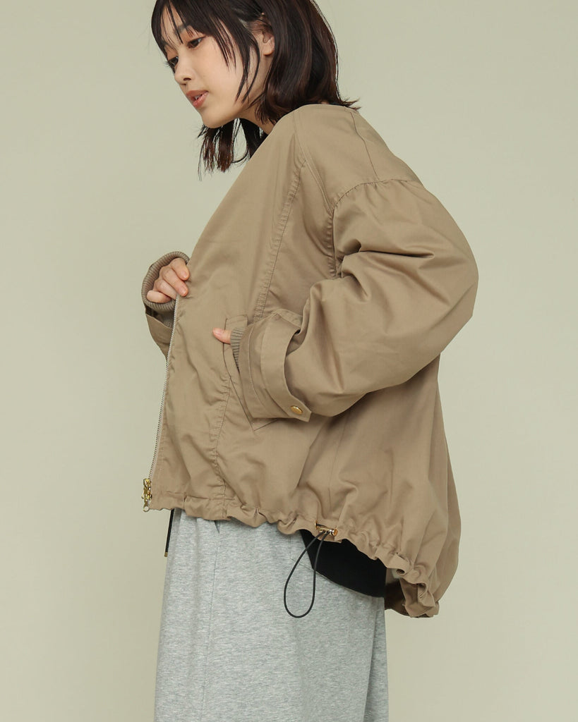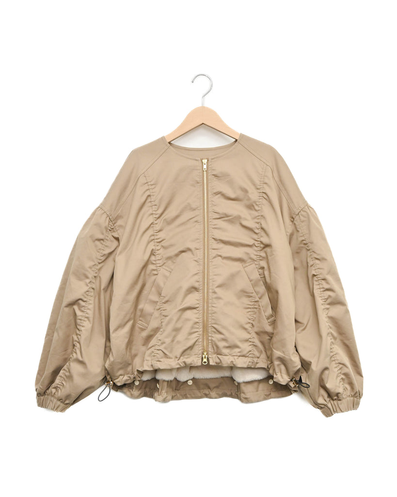 TCツイル×エコファー ラウンドネックショートブルゾン(T256-83063)