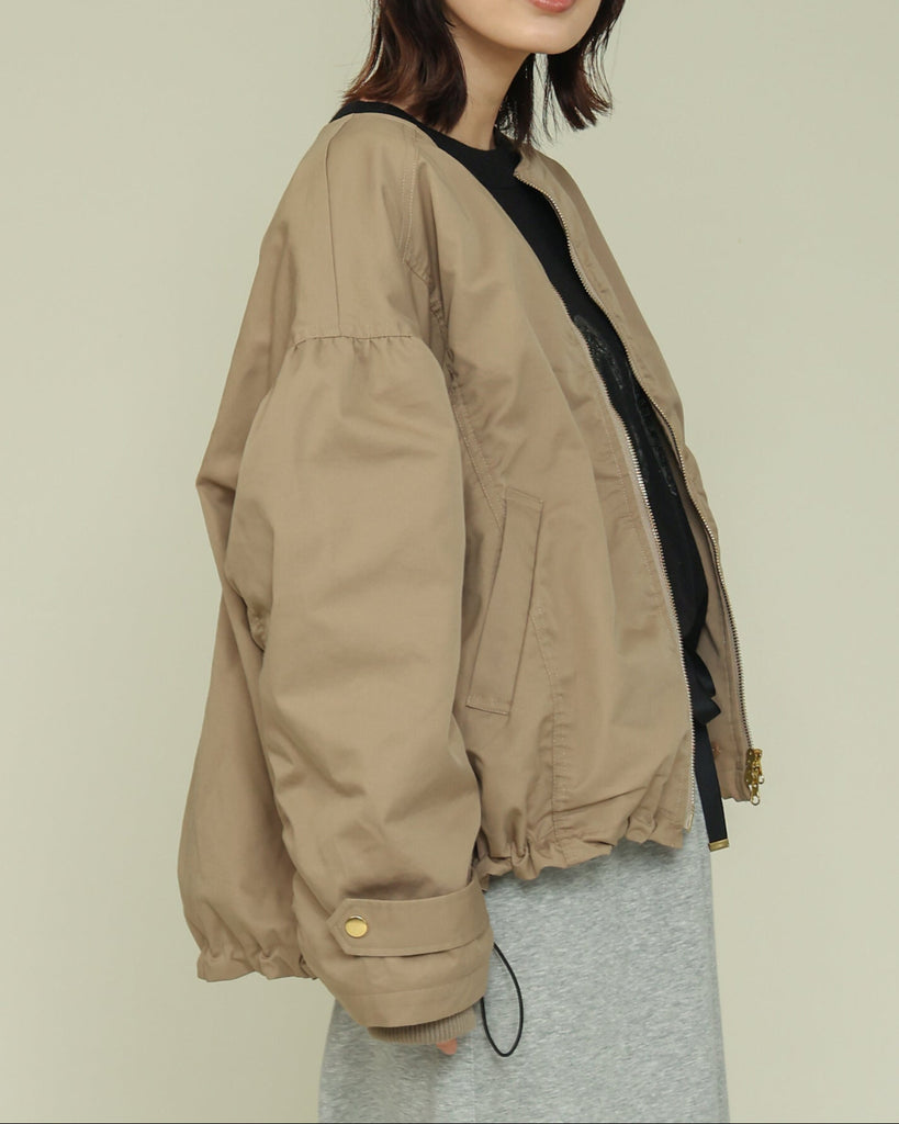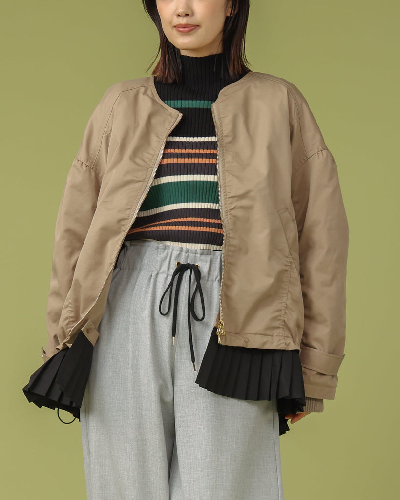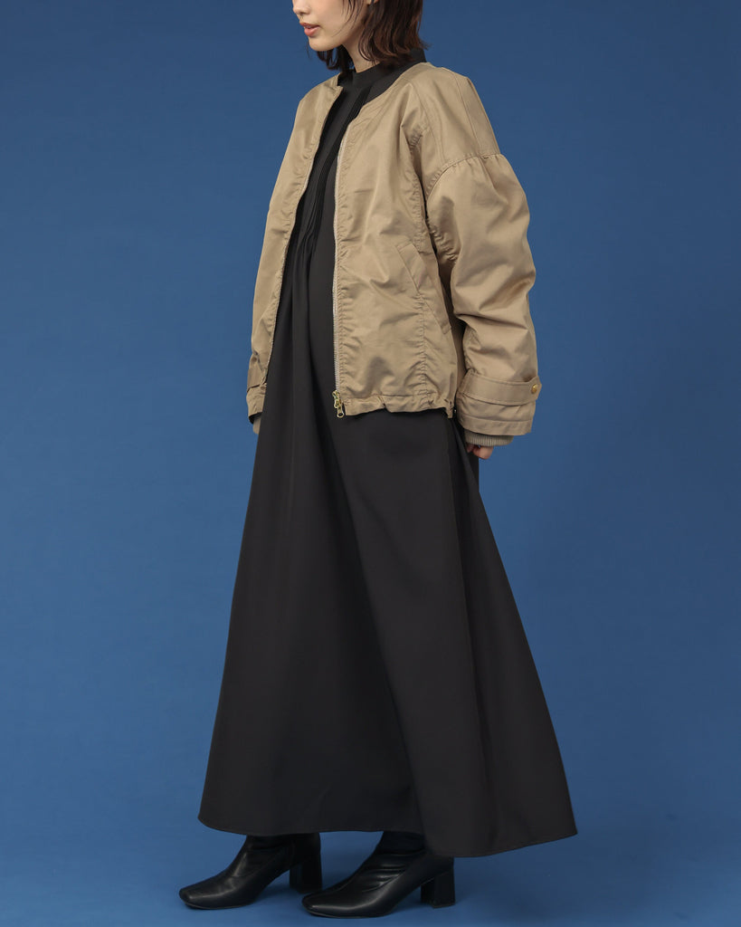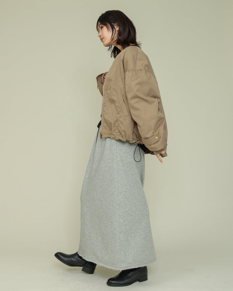 TCツイル×エコファー ラウンドネックショートブルゾン(T256-83063)