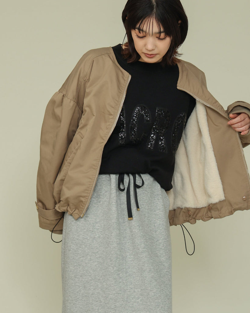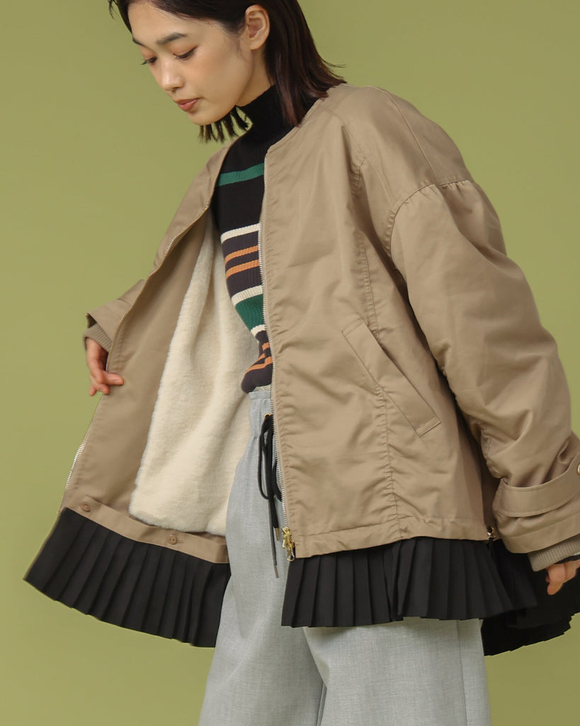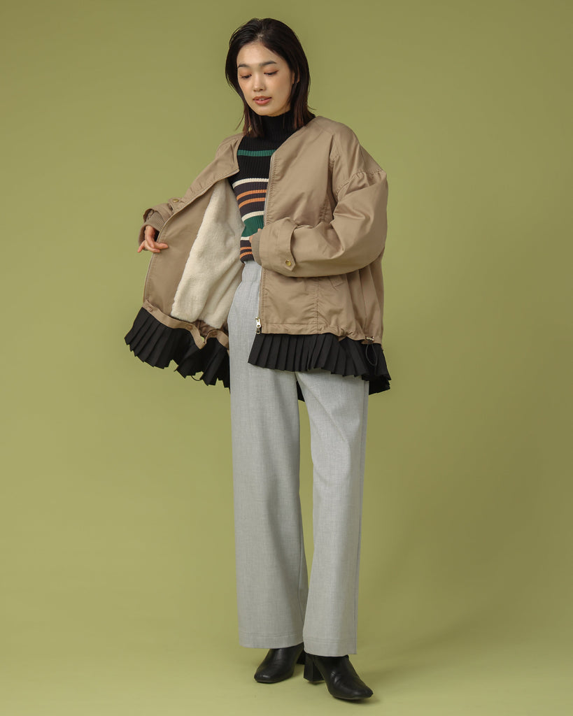 裾のフリルは取り外しでき、すっきりカジュアルにも。裏ファーや裾のドロスト、袖口のリブ等、暖かさと可愛らしさを兼ね備えた1枚です。寒い日もおしゃれに着こめて、お出かけコーデにおすすめです。