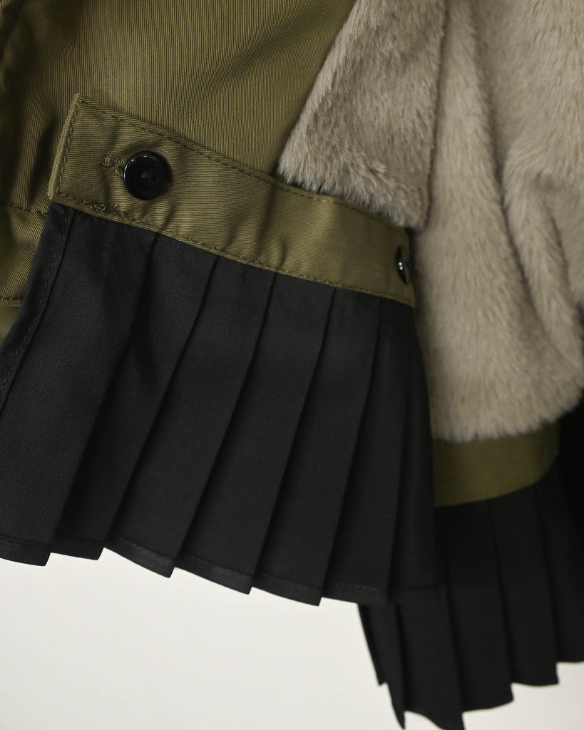 軽くて暖かいエコファーと、程よいハリ感のTCツイルを組み合わせた素材。
