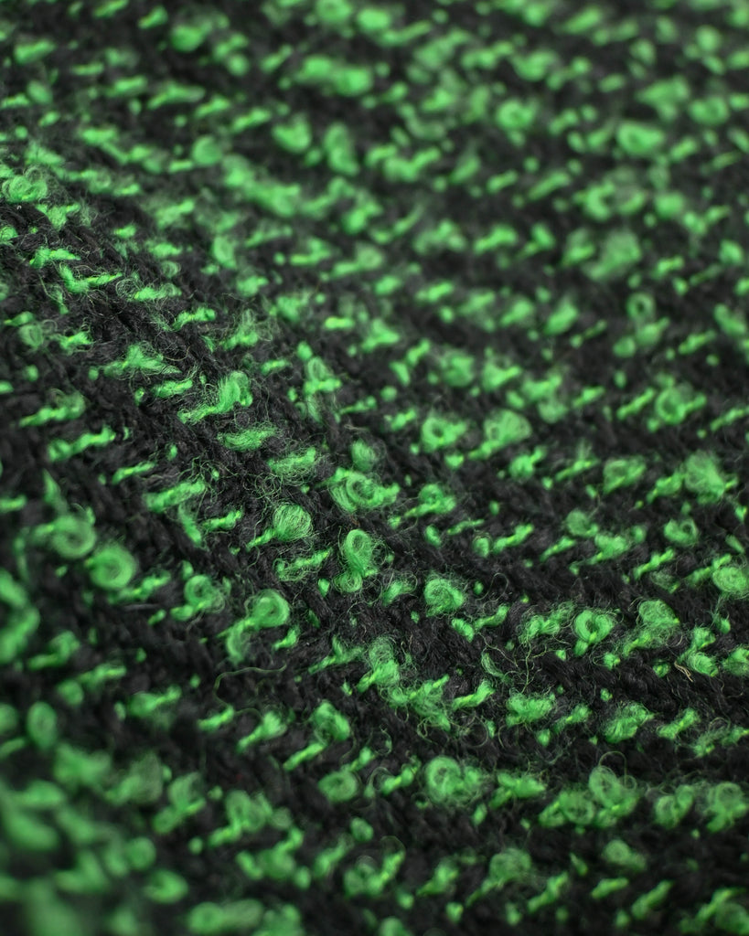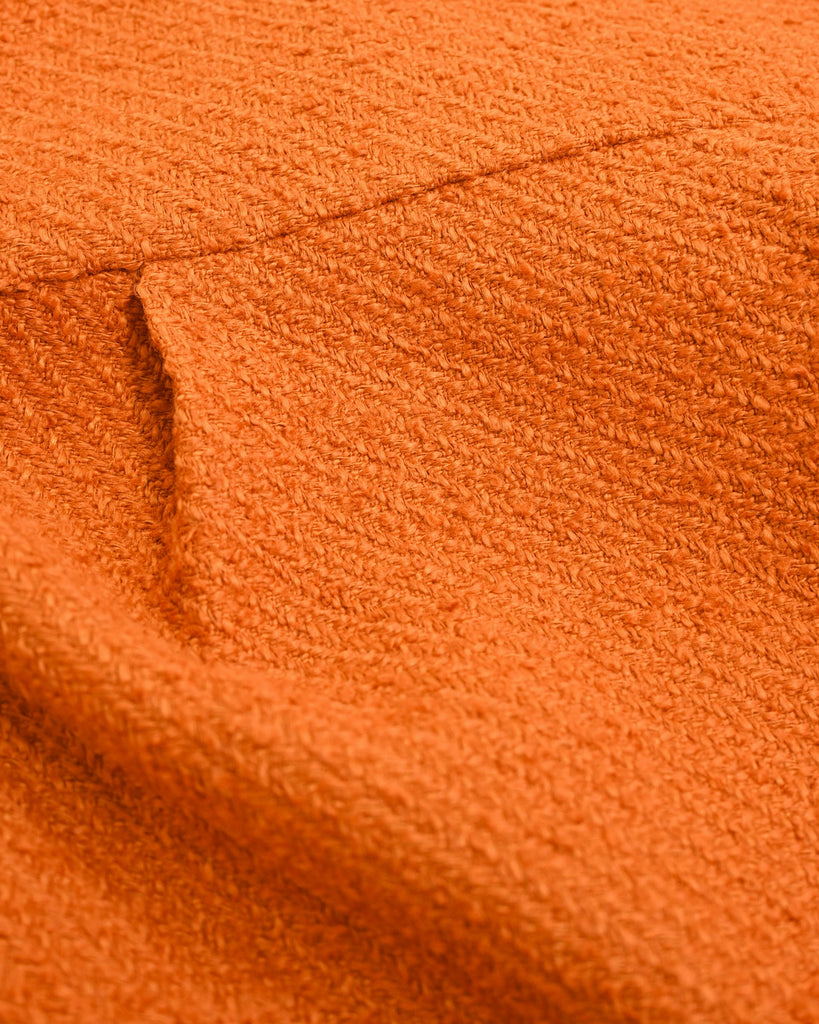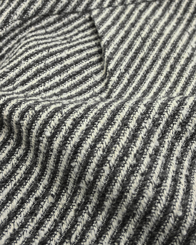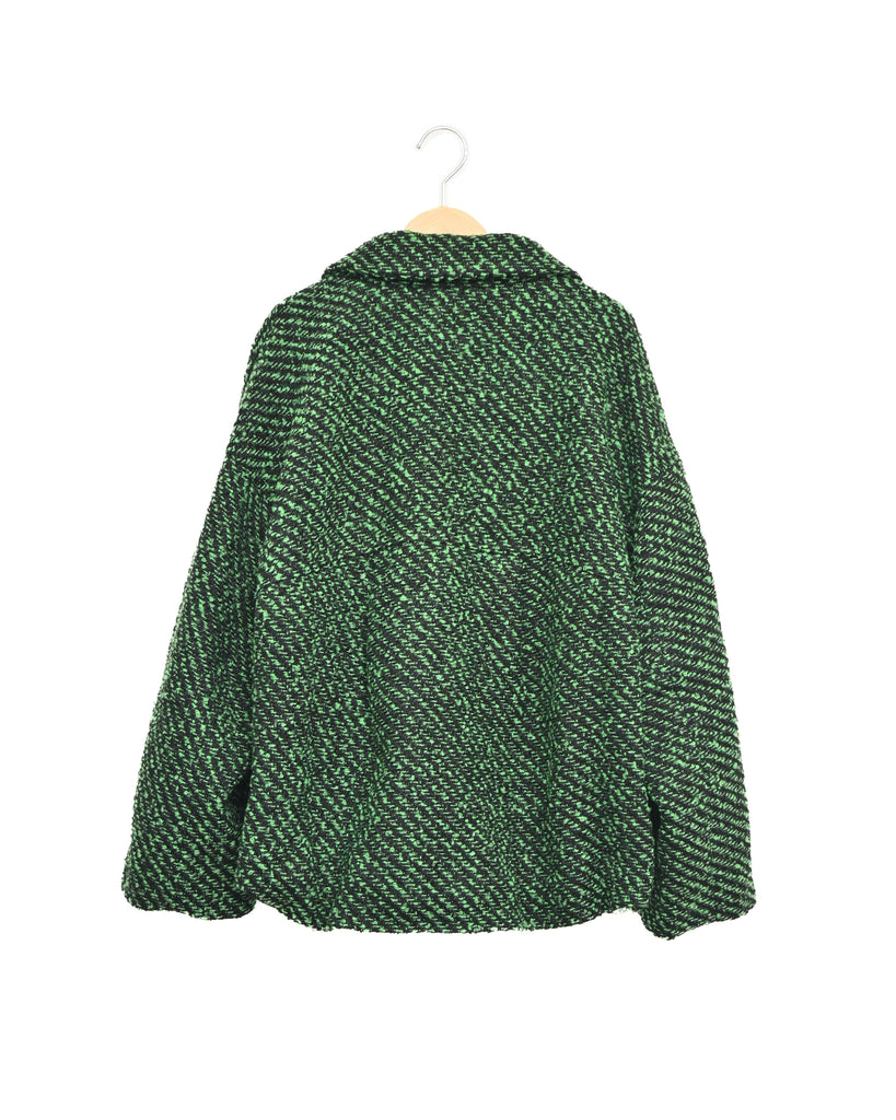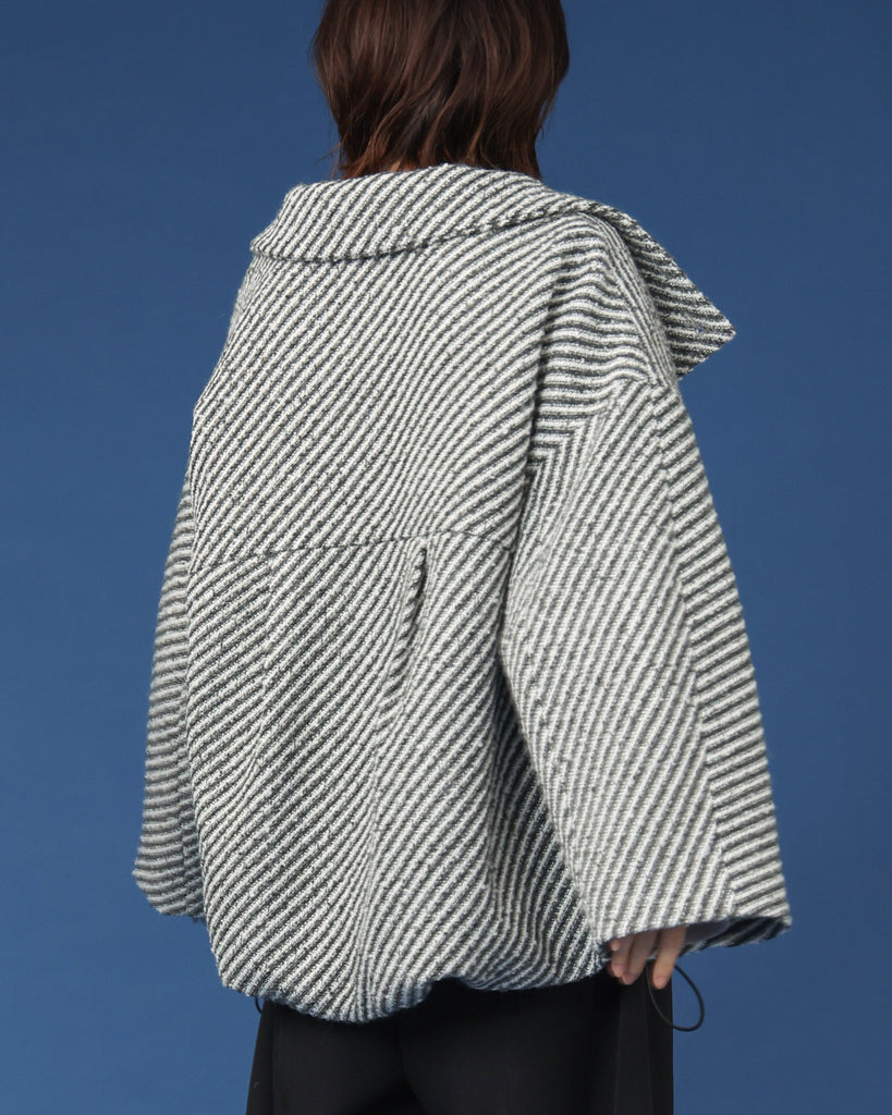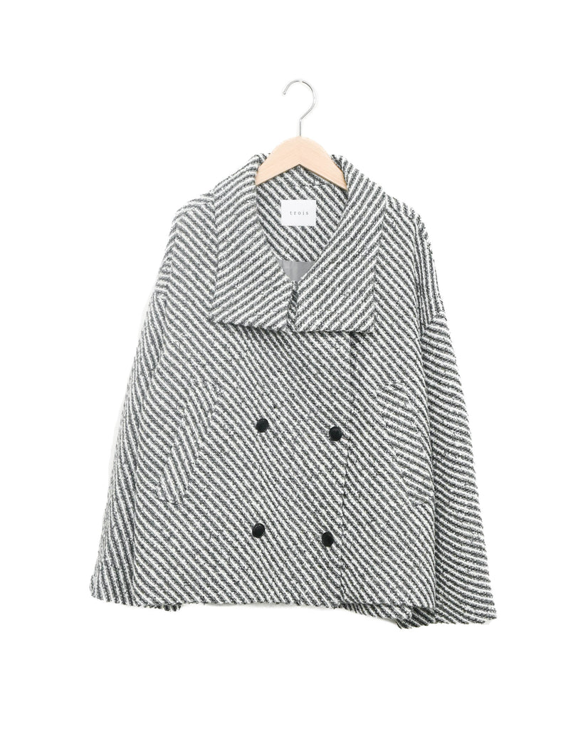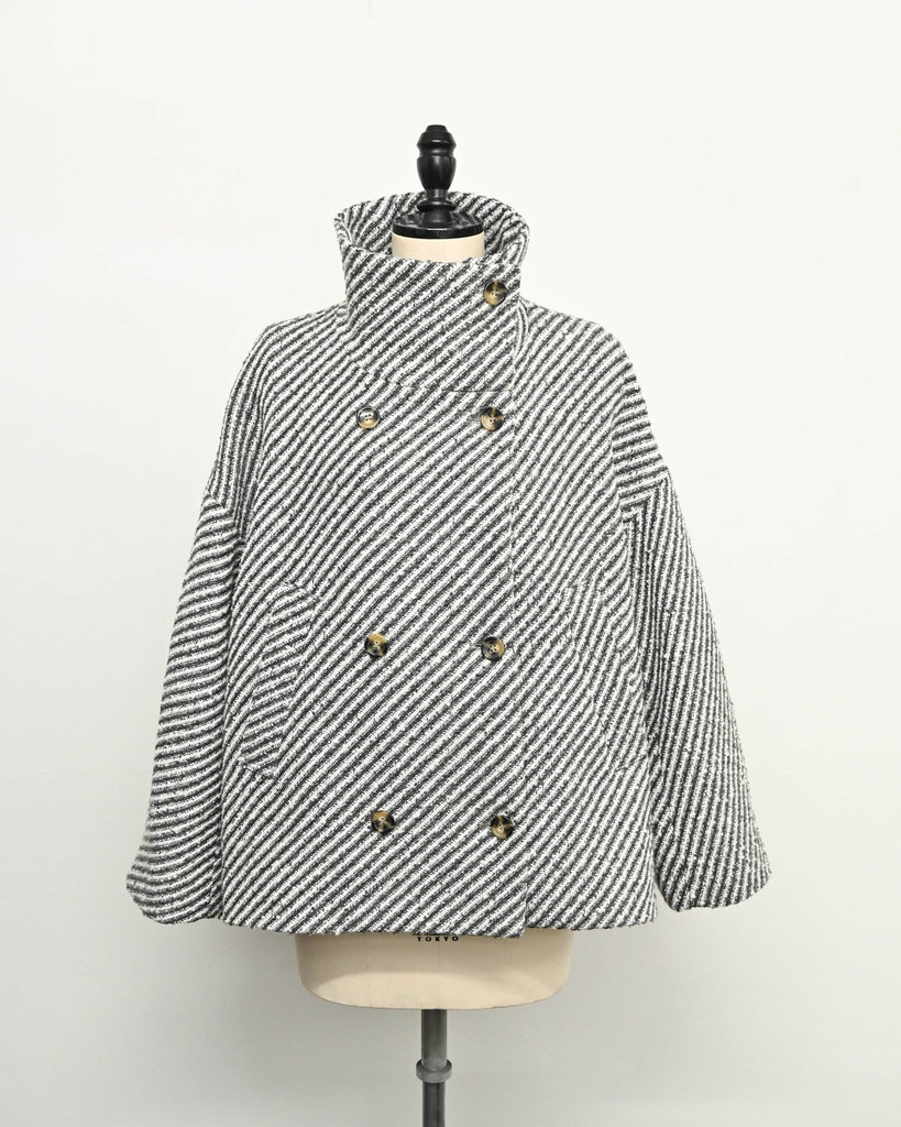 襟の着こなし次第で、違った表情に見せてくれます。表面に立体感と高級感があり、着るだけで上品な雰囲気に。短めの丈でバランスが取りやすく、ワイドパンツやスカートとも相性抜群です。