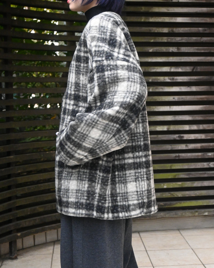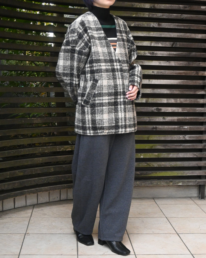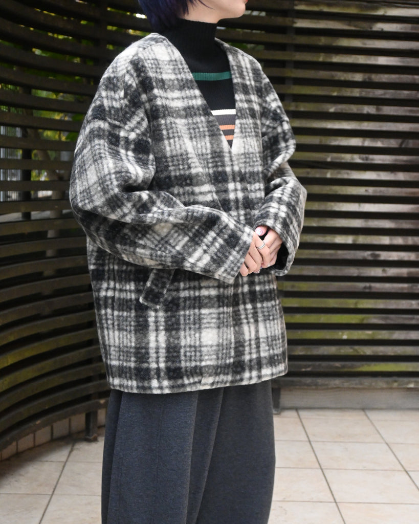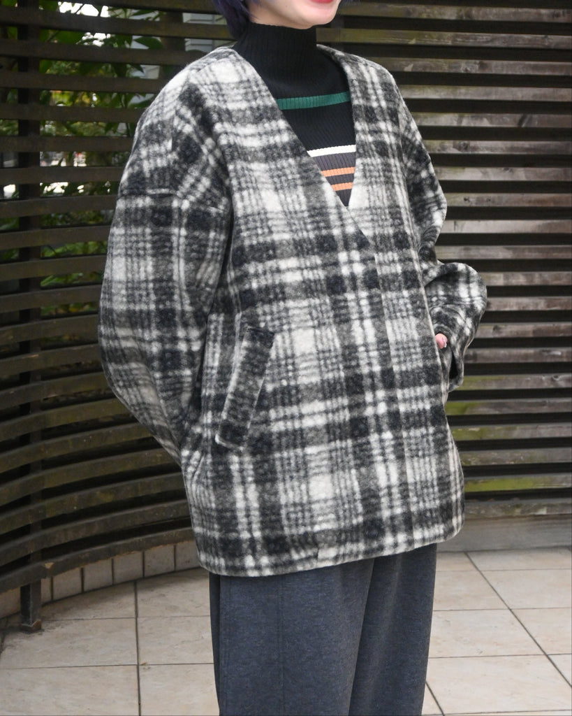 クラシックなマドラスチェックがスタイリングのアクセントになり、お尻まですっぽり隠れるハーフ丈でボトムスとのバランスも取りやすく着まわし抜群◎
