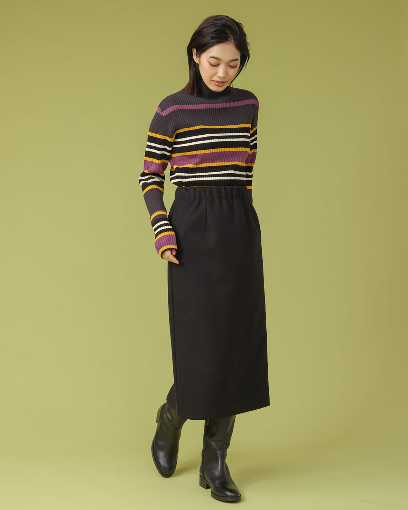 テレコ無地&ボーダー ハイネックニット(T256-88060)