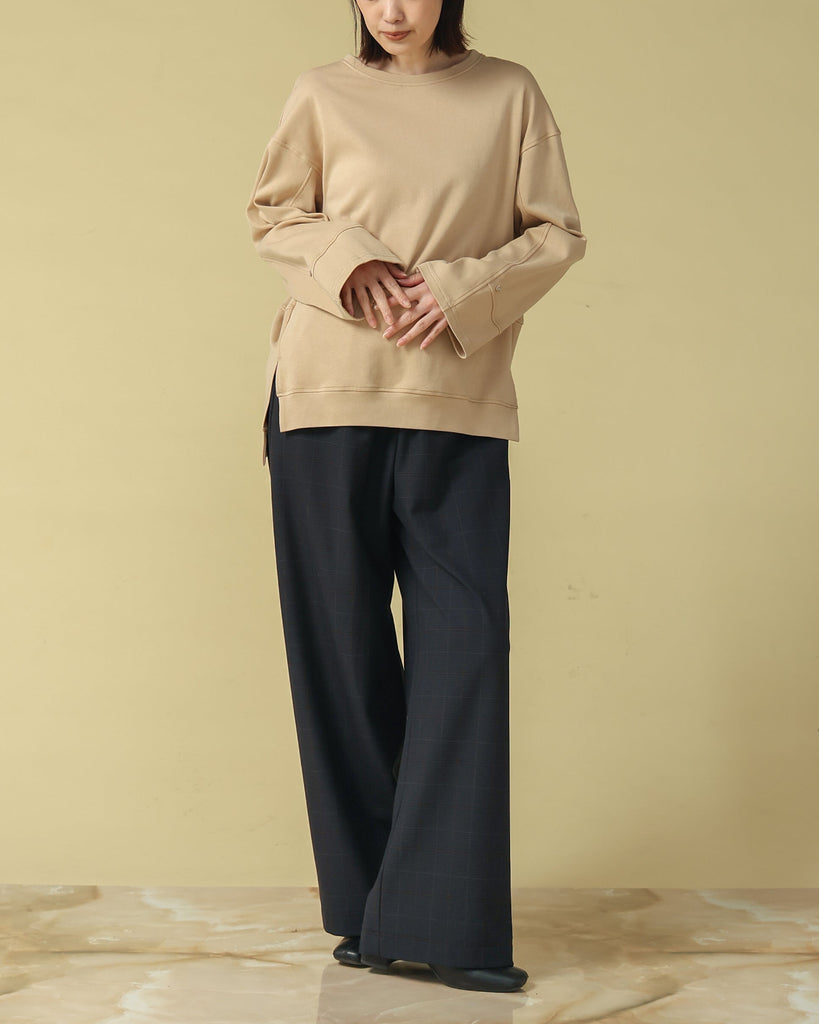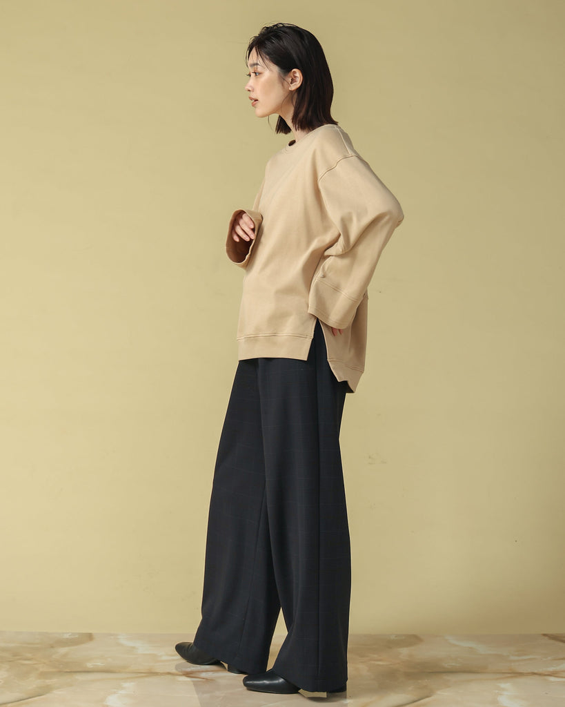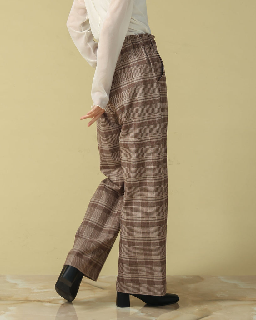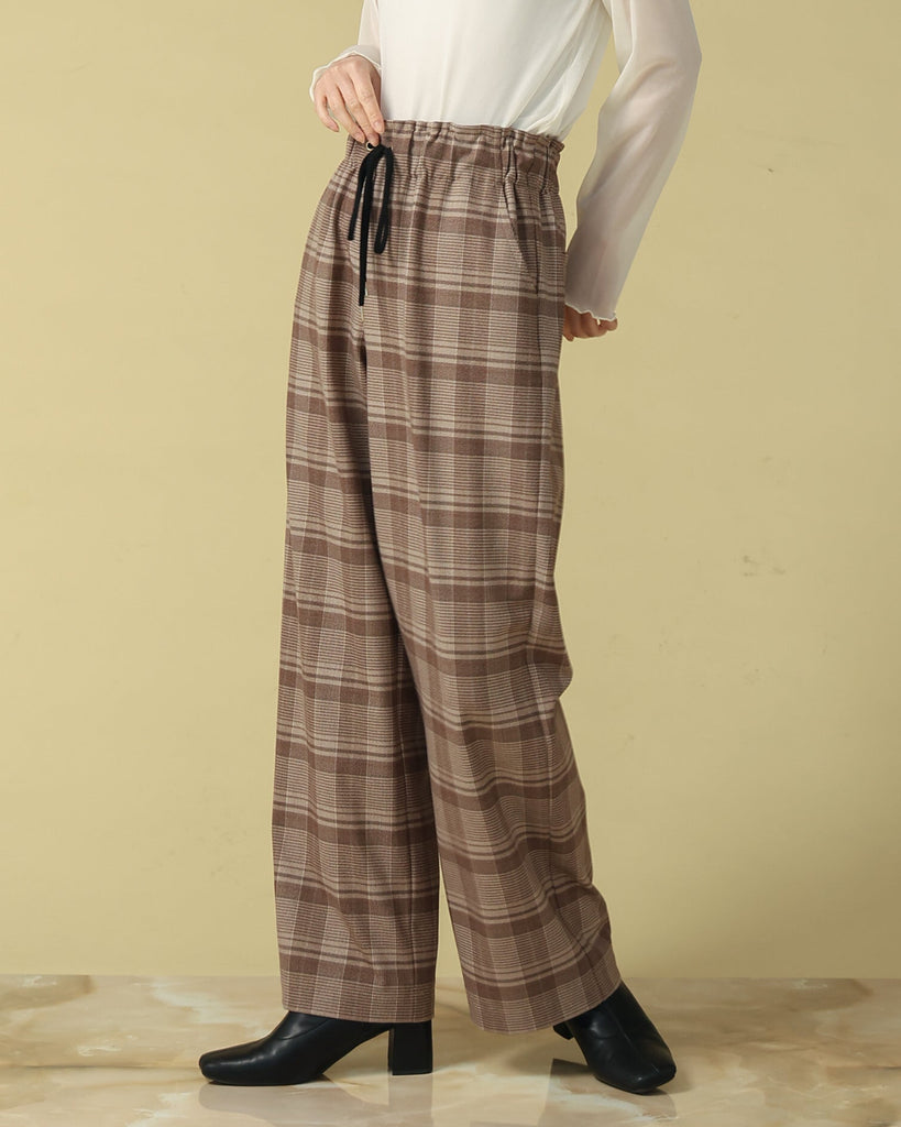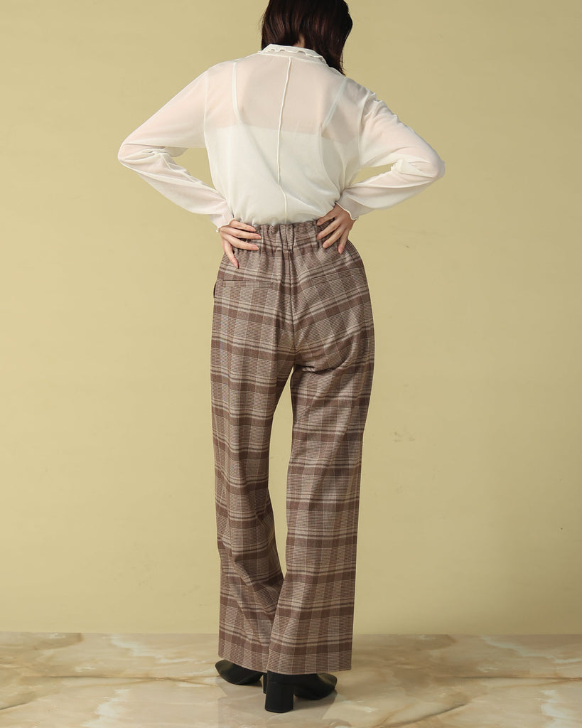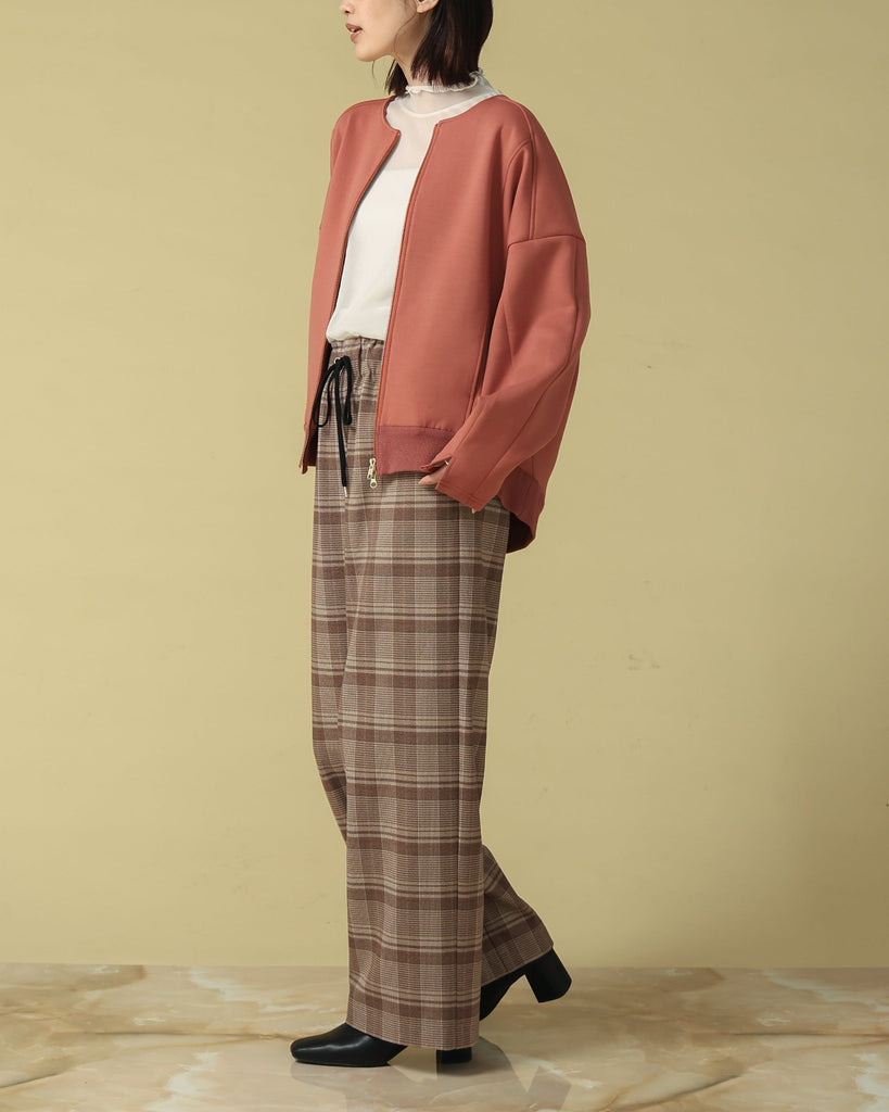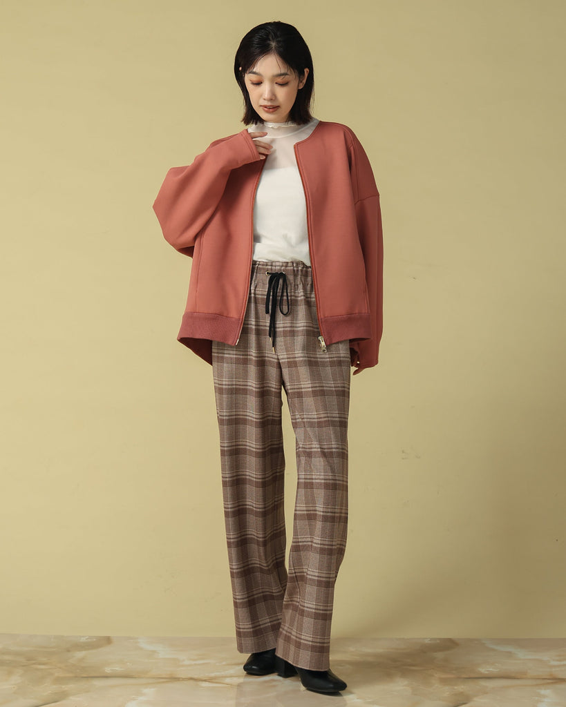 ストレッチ生地で動きやすく防シワ性もあるので、長時間の座り姿勢もノンストレス。キレイ目チェック柄で、コーデに取り入れるだけで秋冬のアクセントとなりこなれ感のあるスタイルに。スニーカーからブーツまで、シーンに応じた多様な着こなしが楽しめます。
