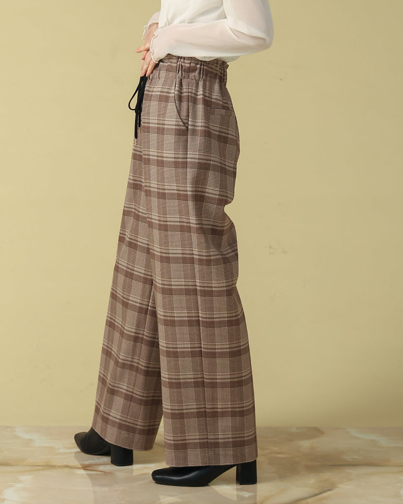サキソニーチェック セミワイドパンツ(T256-87048-b)