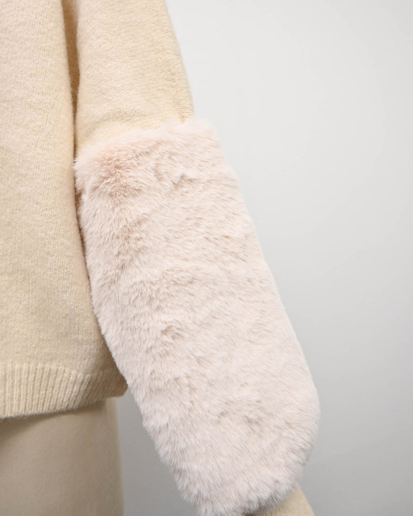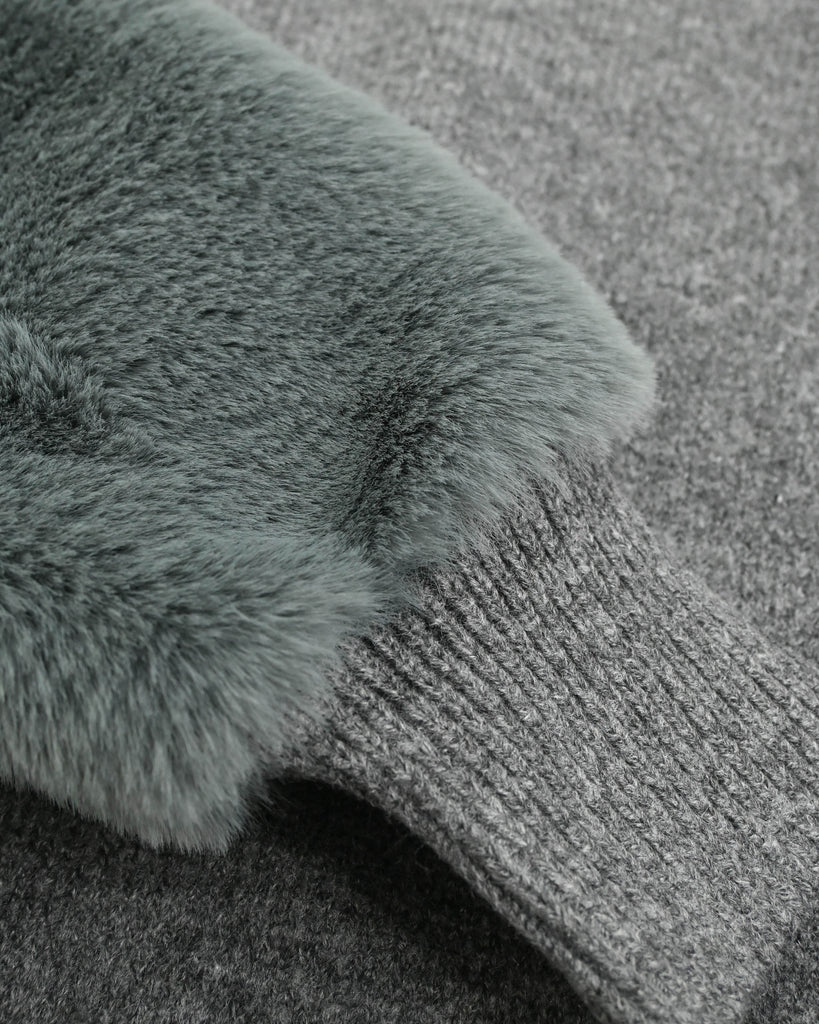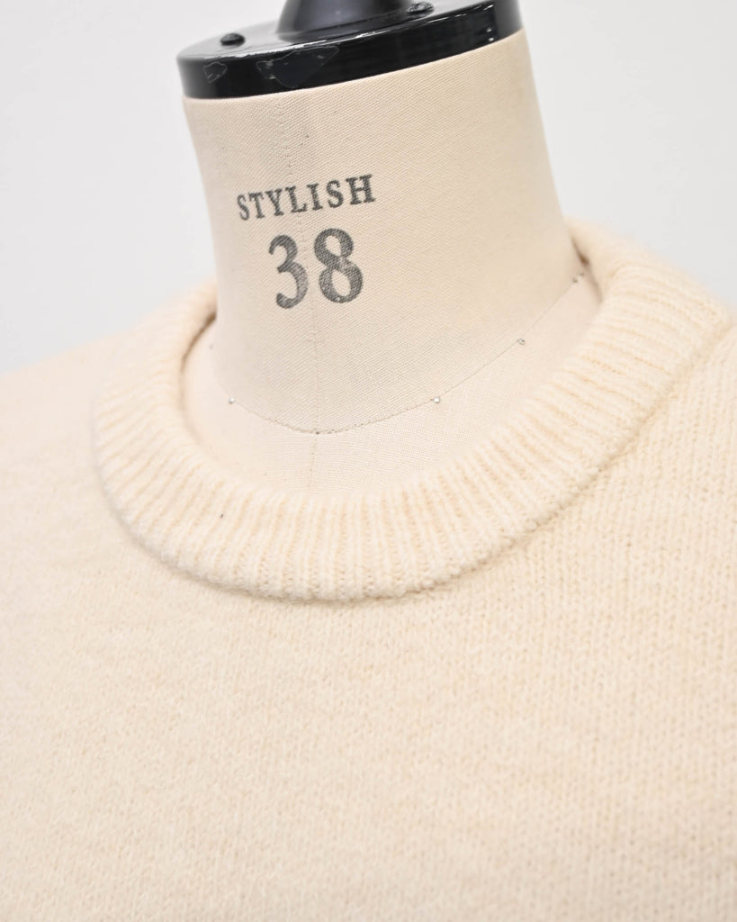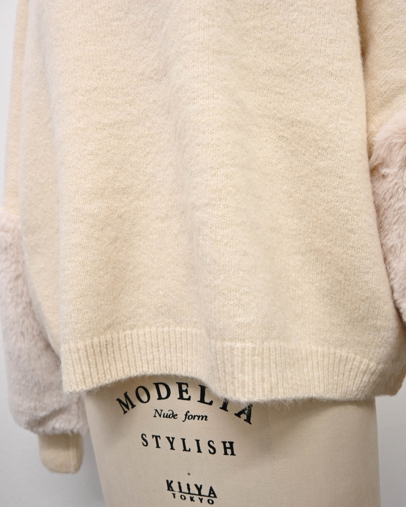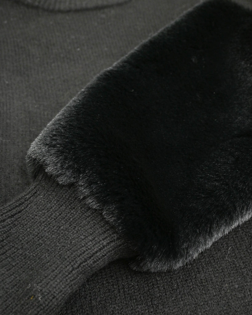 軽く暖かい糸を5Gで編みたてた、弊社人気のエコファー切替ニット。