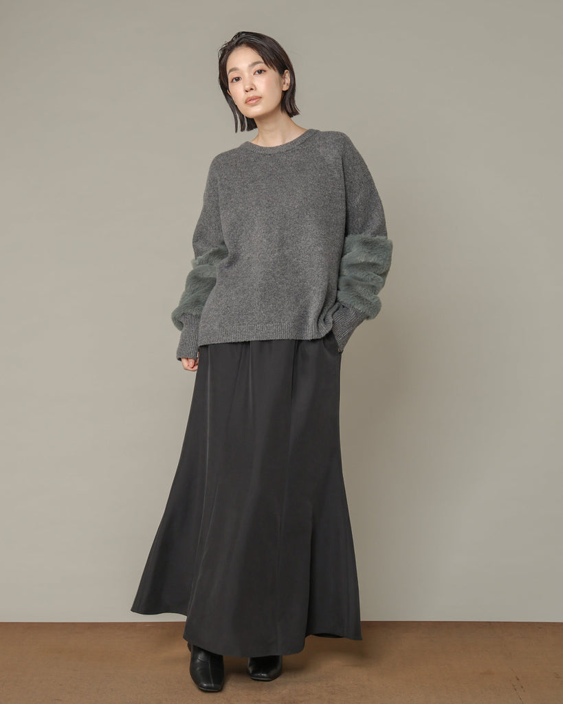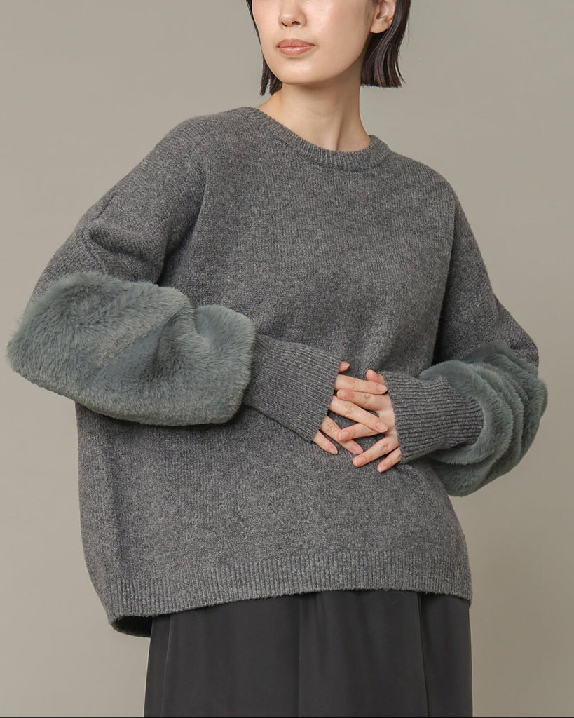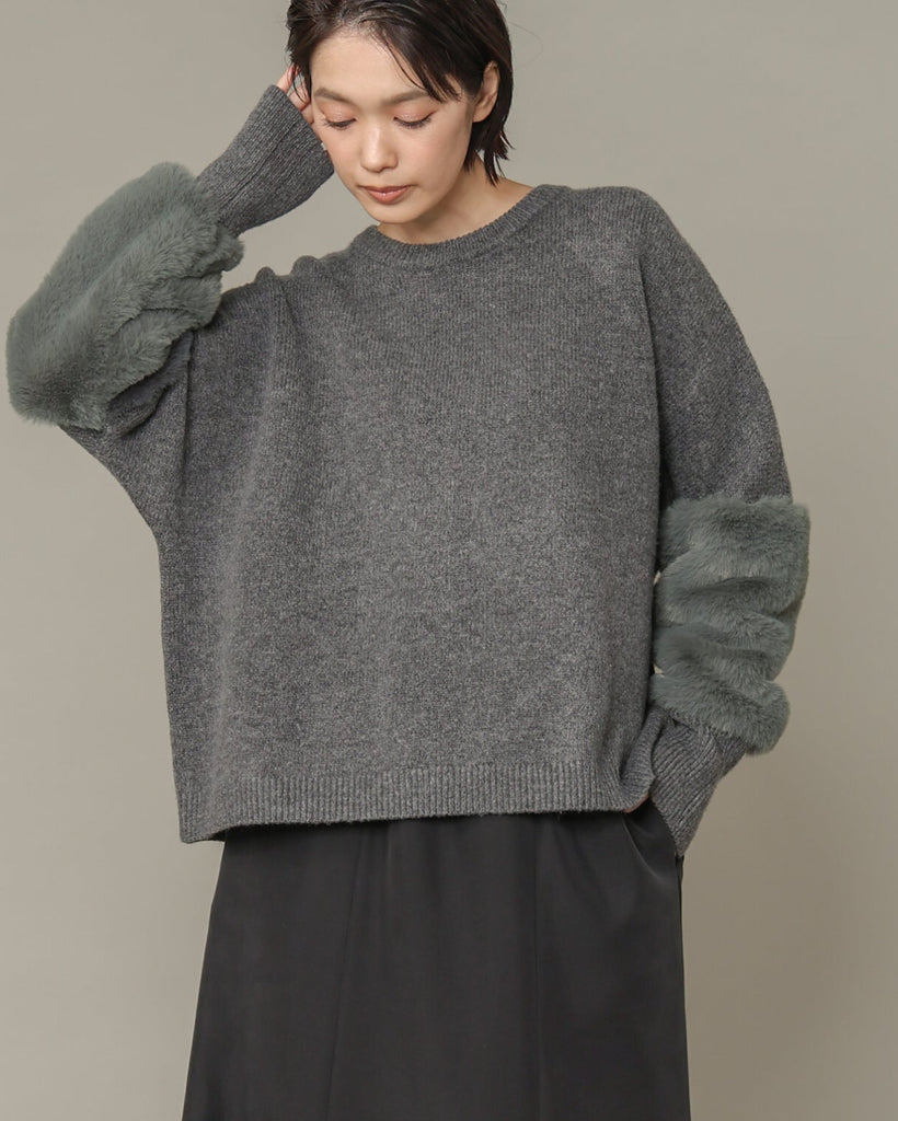 袖にたっぷりとボリュームを持たせたエコファーがアクセントに。シンプルながら存在感があり、1枚でスタイリングが華やぐデザイン。着心地の良さと見た目のあたたかさを兼ね備え、冬の主役アイテムとして活躍します。