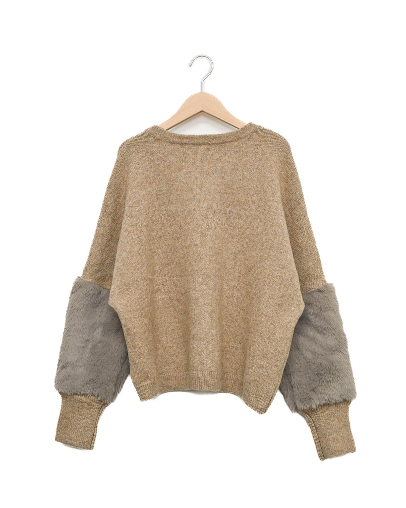 5G天竺編袖エコファー切替 プルオーバーニット(T256-88064)