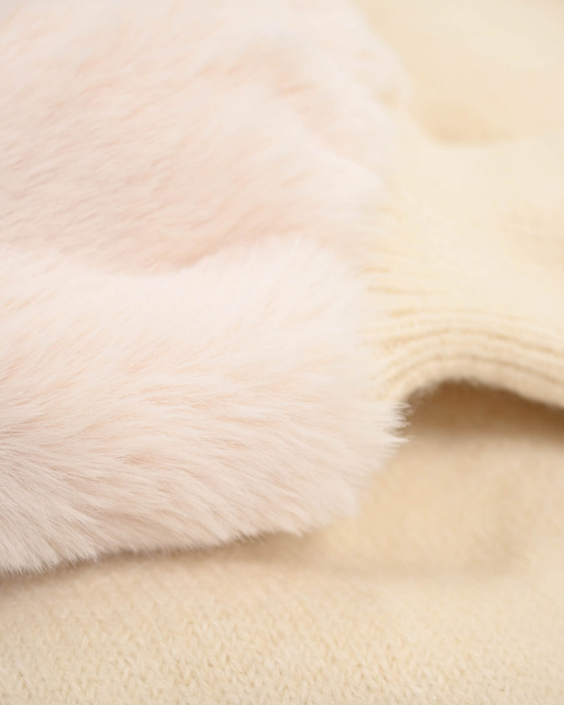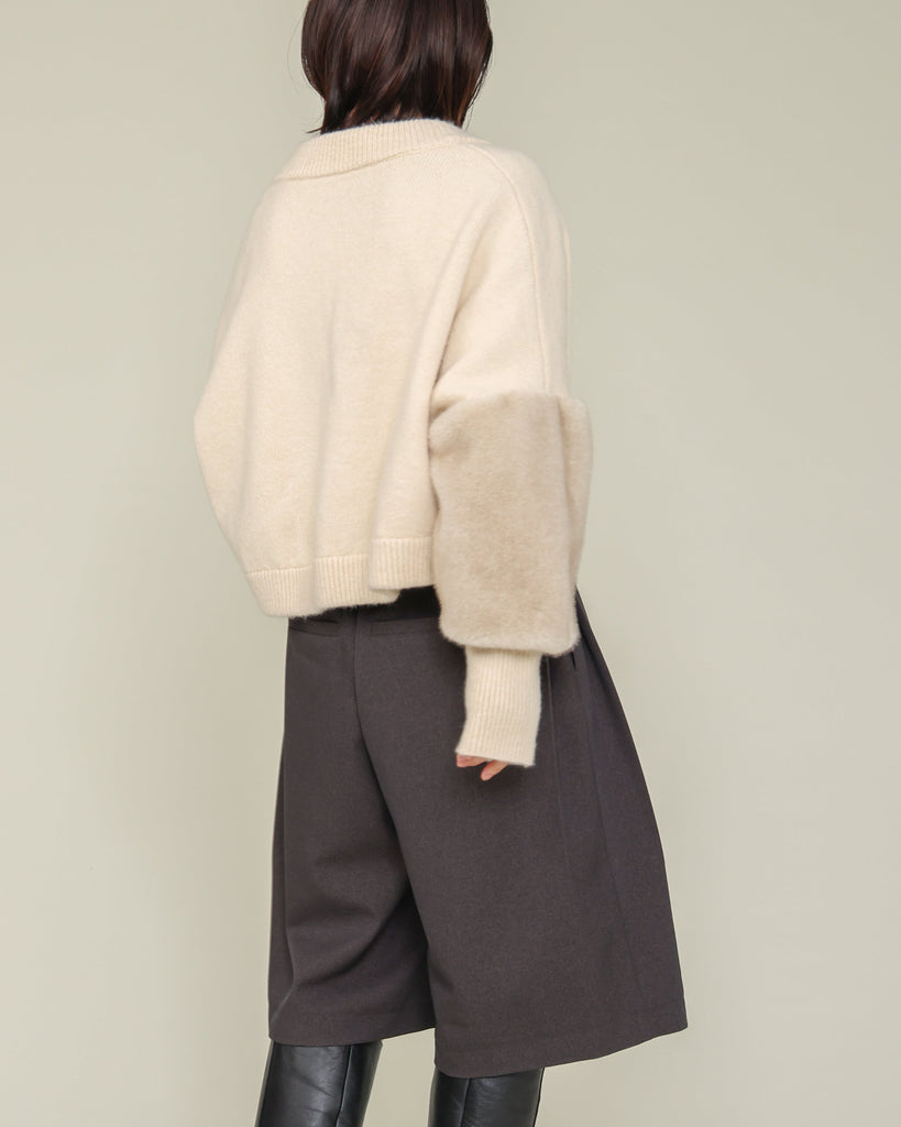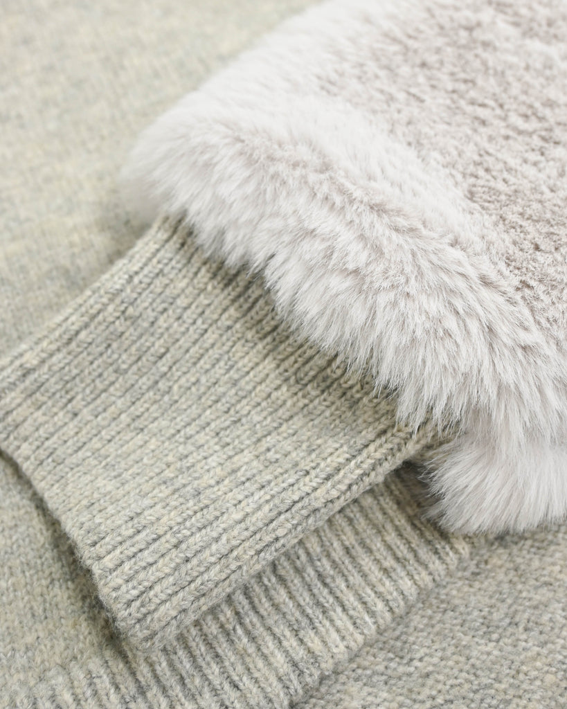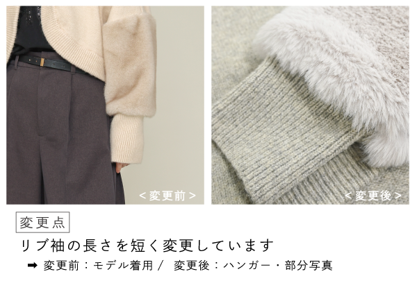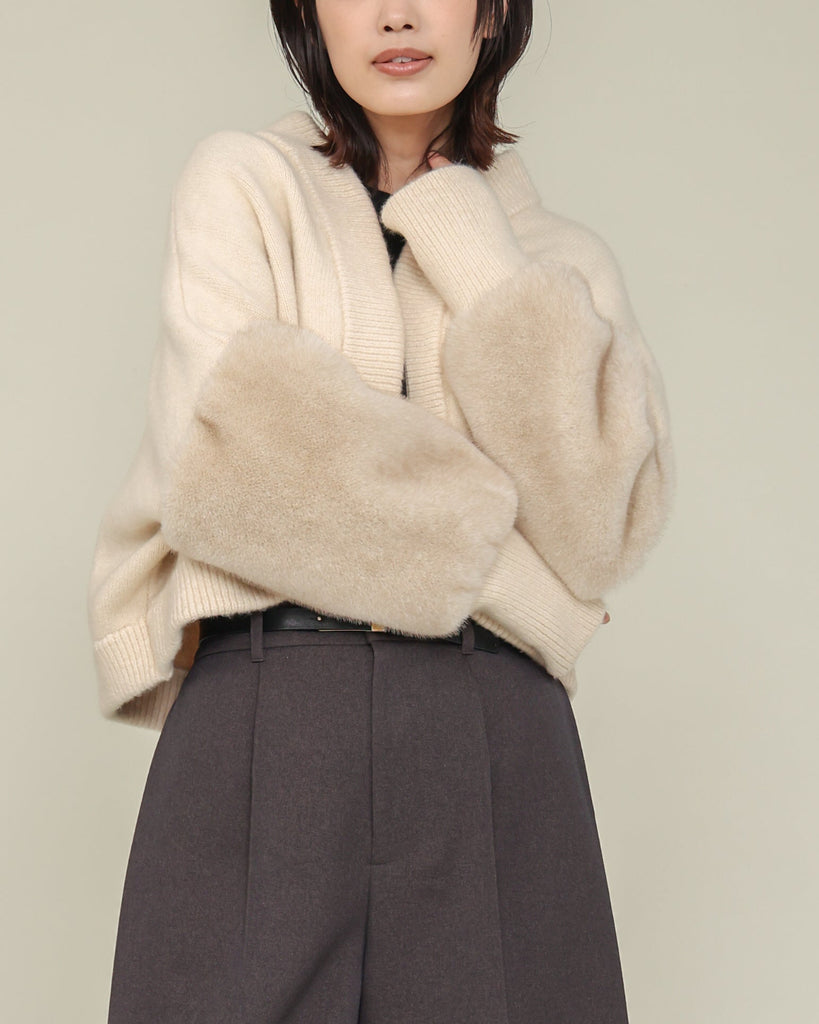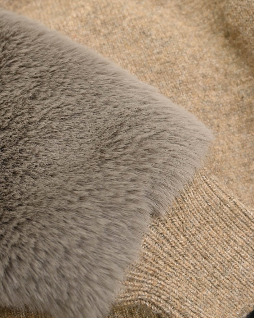軽く暖かい糸を5Gで編みたてた、弊社人気のエコファー切替ニット。