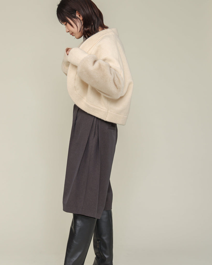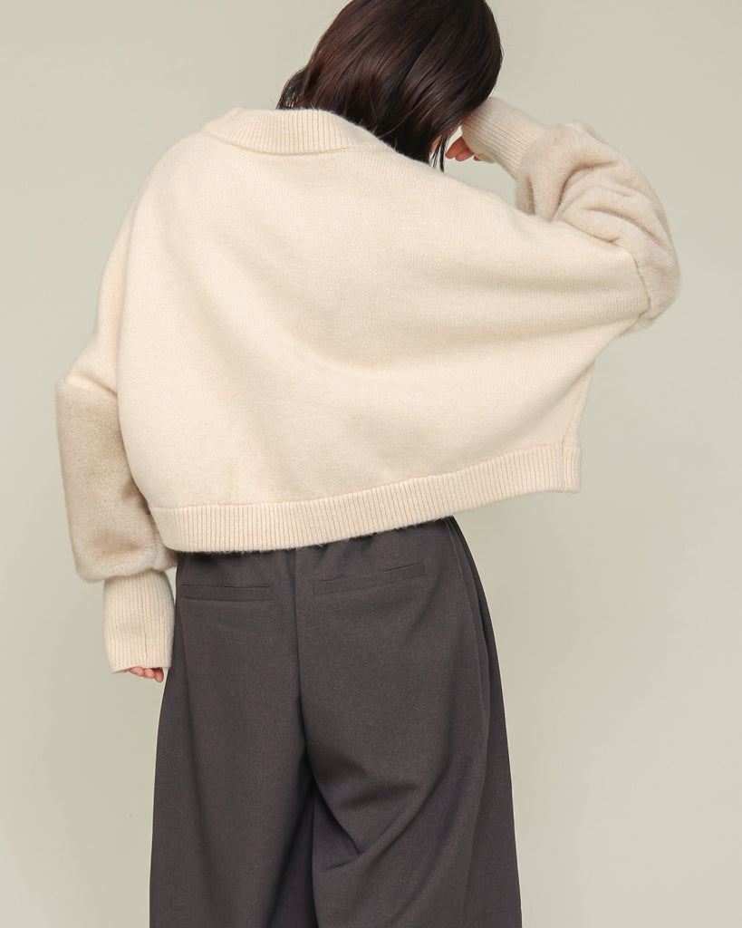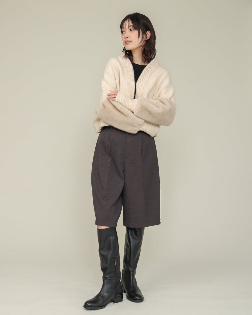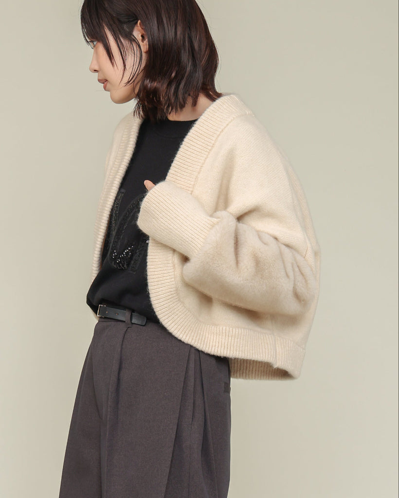 ボリューム袖がふんわりと柔らかな印象に。丸みのあるシルエットが女性らしく、体を包み込むような優しい着用感です。ショート丈でバランスが取りやすく、ワンピースやハイウエストボトムとも好相性。いつものコーデをスタイルアップしてくれる、存在感のある1枚です。