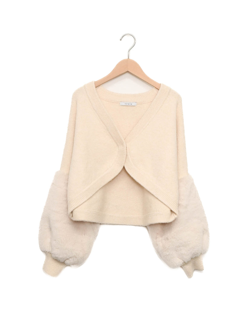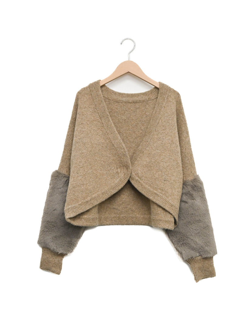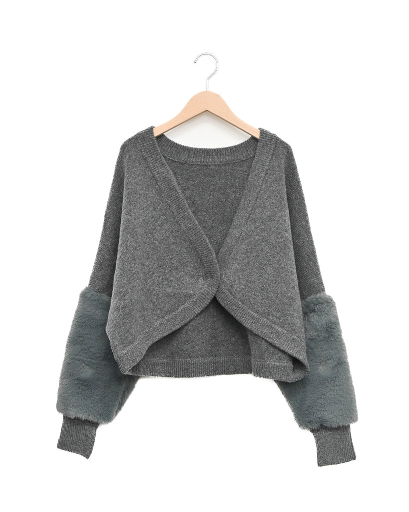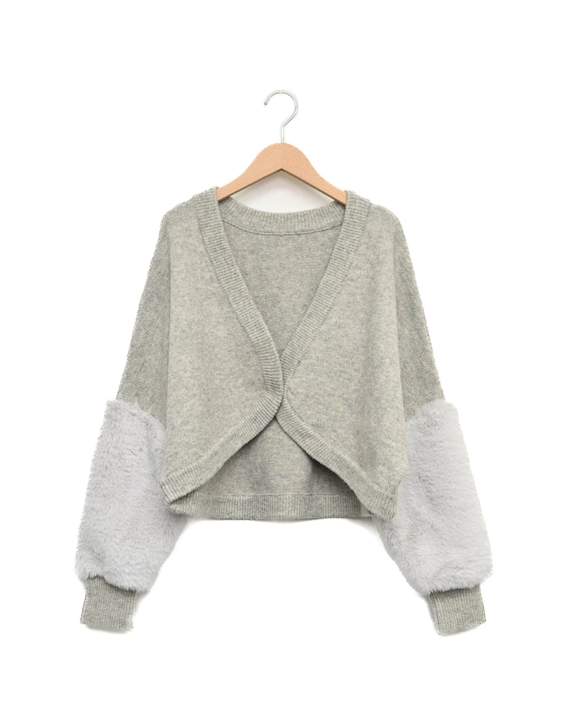 5G天竺編袖エコファー切替 ショートボレロ(T256-88065)