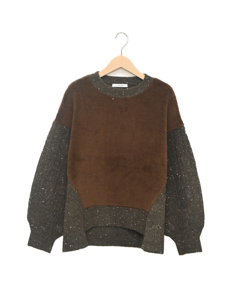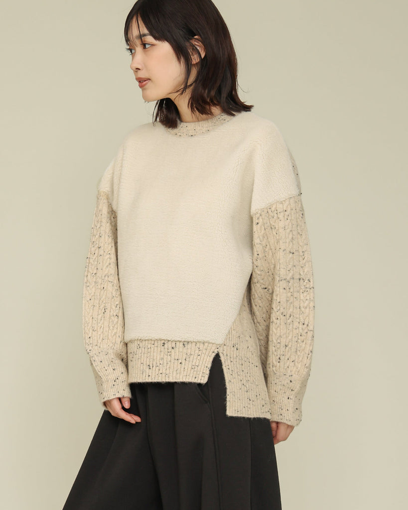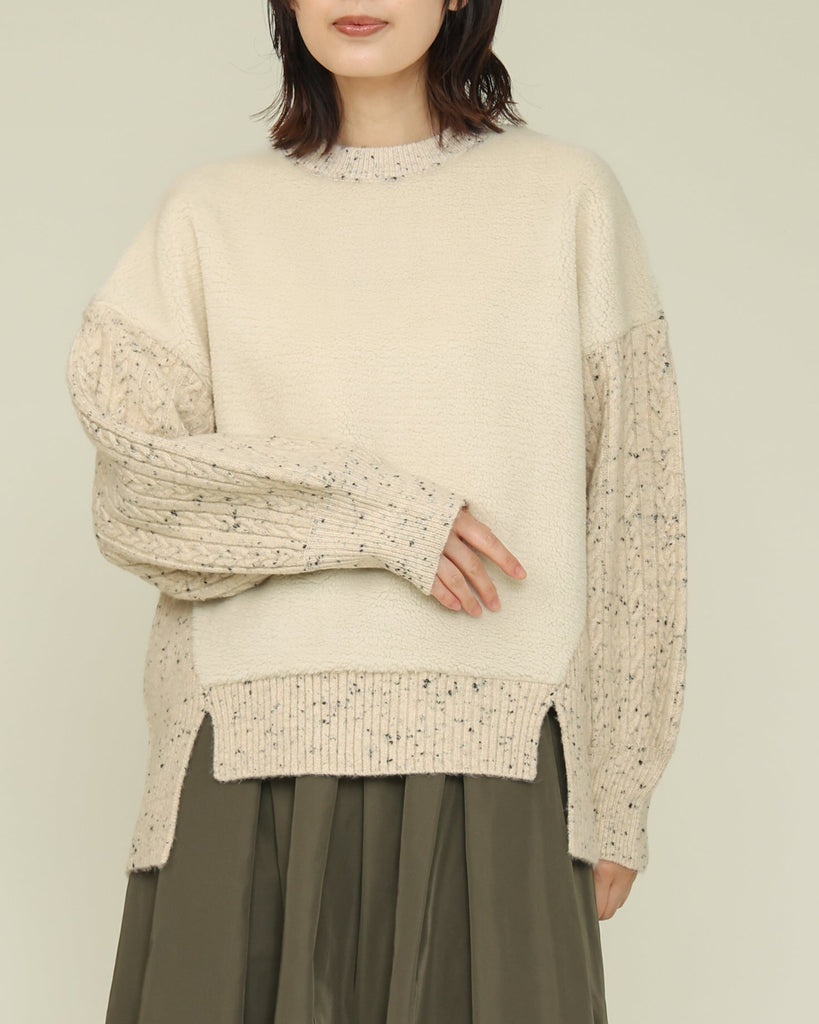 MIXニット×ボア 切替プルオーバー(T256-88067)