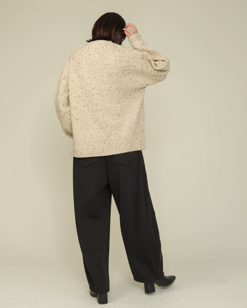MIX糸ならではの表情豊かな編地に、柔らかくふんわりとしたボア素材を切り替えたプルオーバー。見た目にも暖かみがあり、軽い着心地ながらしっかりと保温性を感じられる一着です。やゆとりのあるシルエットで、体のラインを拾いにくく、リラックス感のある着こなしが叶います。シンプルながらも素材のコンビネーションが存在感を放ち、着るだけでコーディネートの主役になるアイテムです。