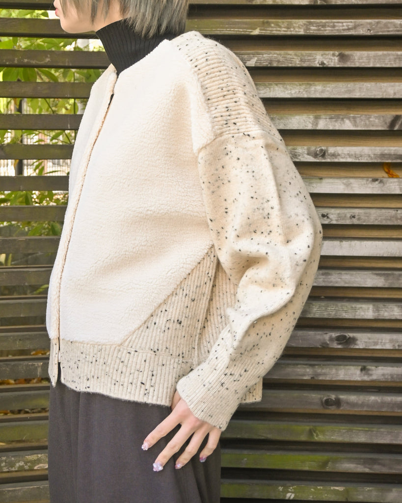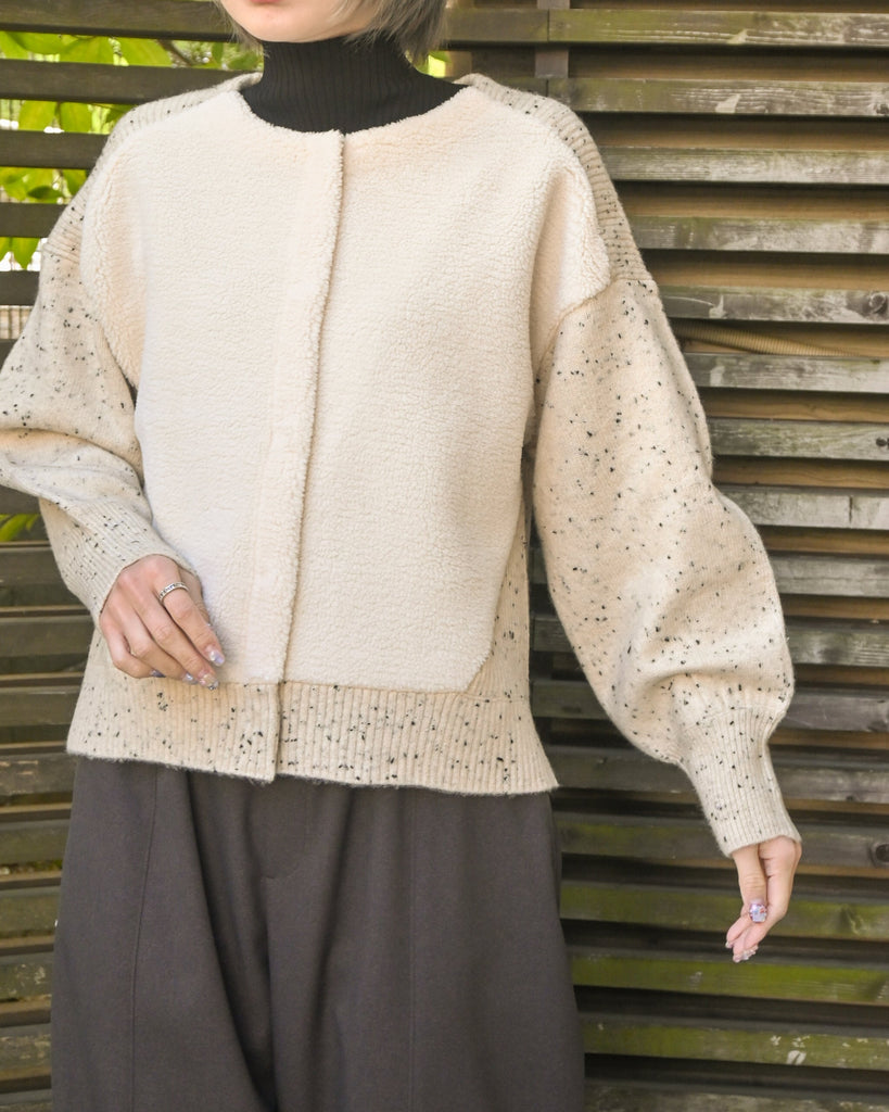 MIXニット×ボア 切替カーディガン(T256-88068)