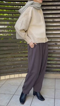 ふんわり優しい肌触りで、季節感のある温かみを感じられる一枚です。ゆとりのあるシルエットで抜け感があり、カジュアルからフェミニンまでさまざまなスタイルに合わせやすい万能アイテムです。さっと纏うだけで華やかさが加わり、デイリーに活躍します。