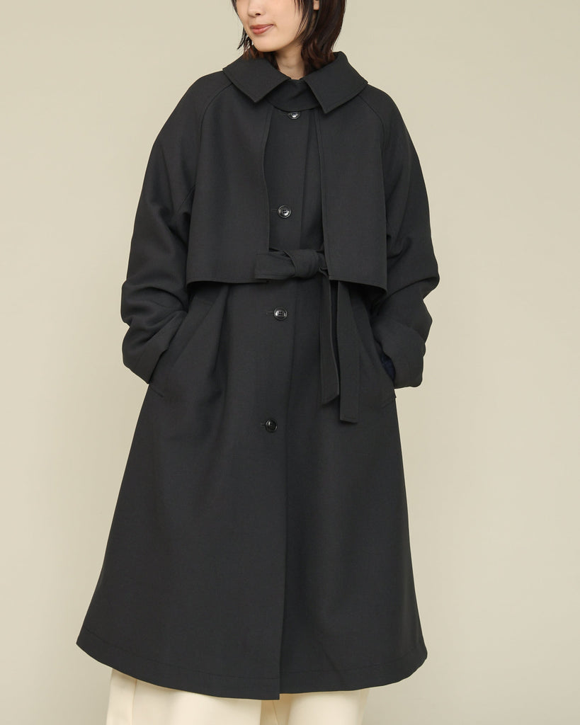 【OUTLET】圧縮ジャージー&ループファー ノーカラーハーフ丈コート(T236-84060)