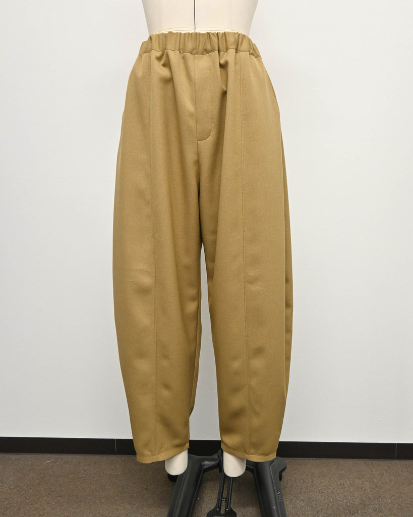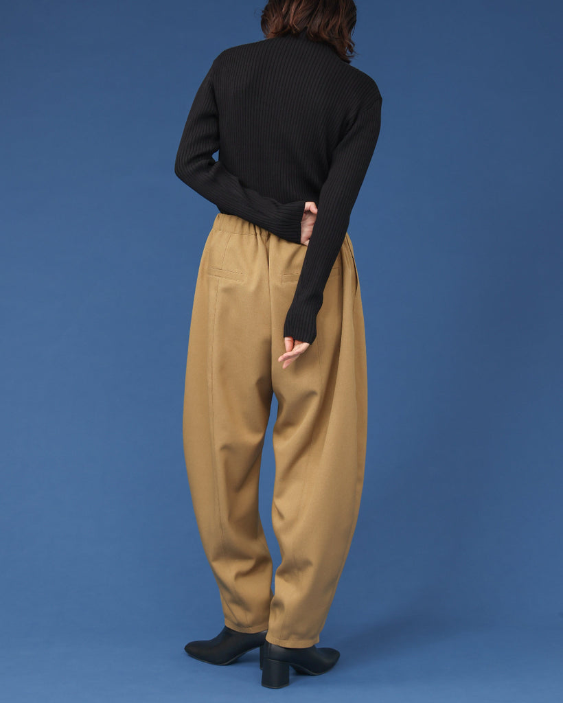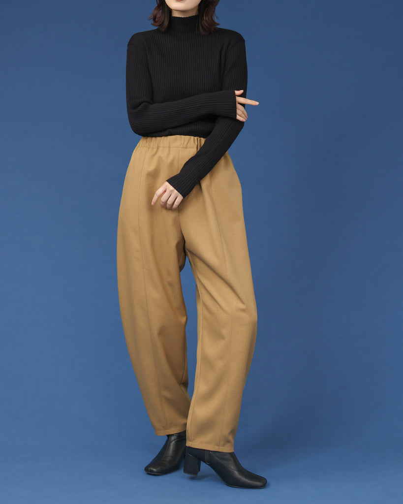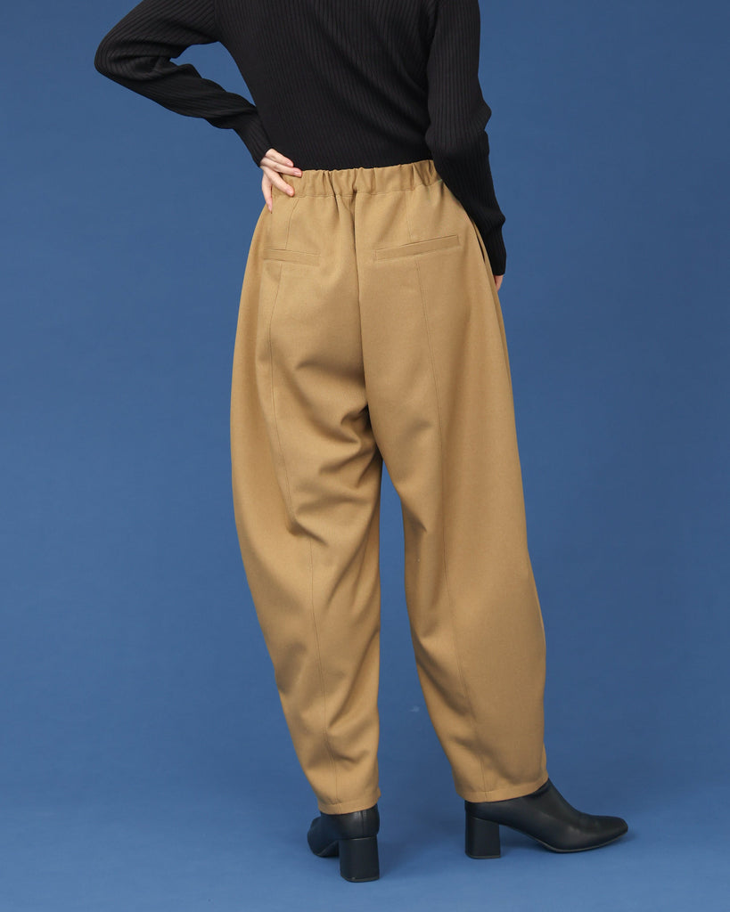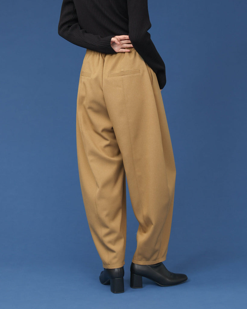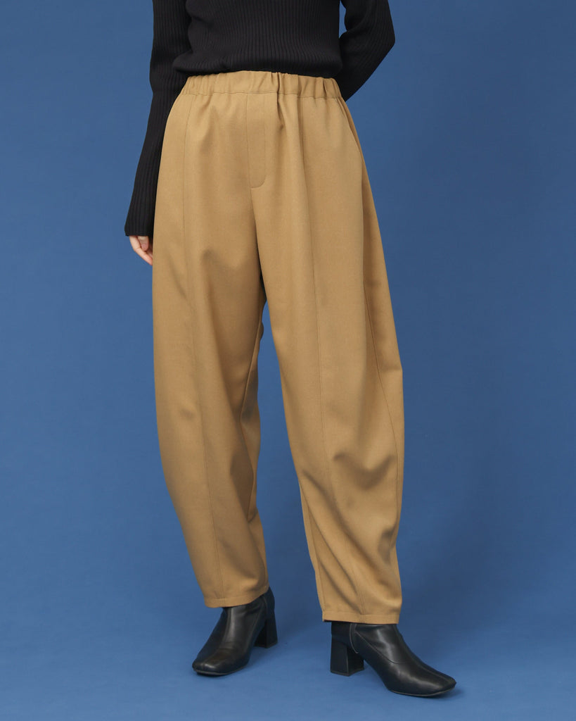 軽く着心地のよいウールライク素材。シワになりにくく気軽に洗えるイージーケアが嬉しいポイント。ほどよい張り感が立体的なシルエットを生み、丸みのあるバレルラインが大人の抜け感を演出。カジュアルにもきれいめにも合わせやすく、季節のスタイリングに取り入れやすい万能アイテムです。