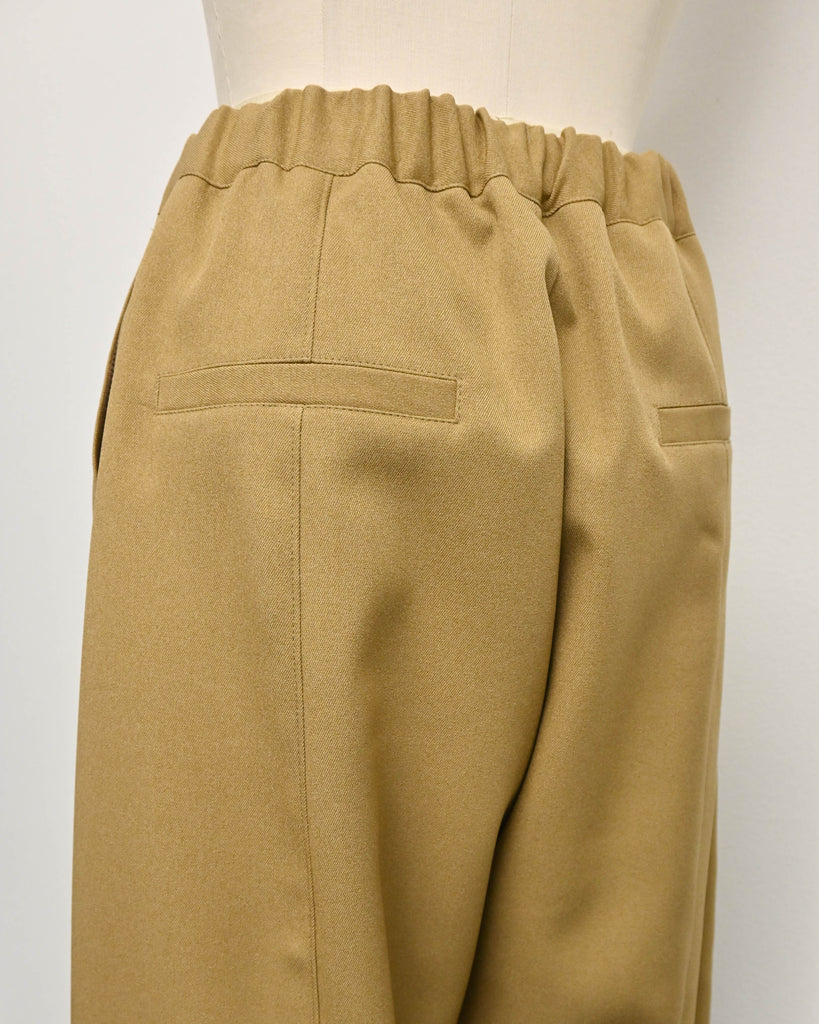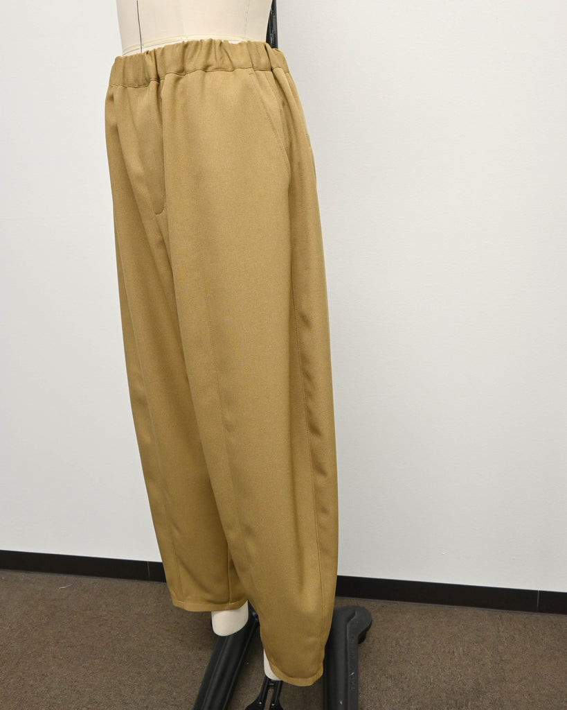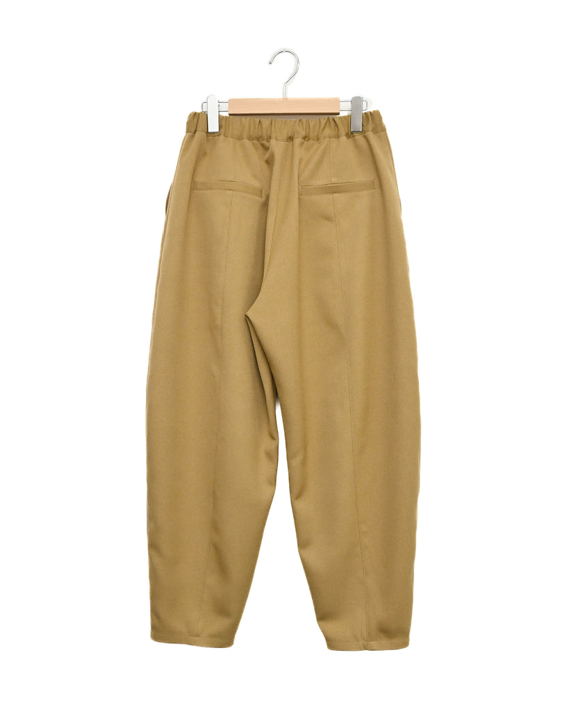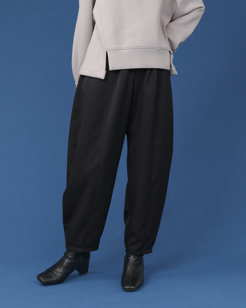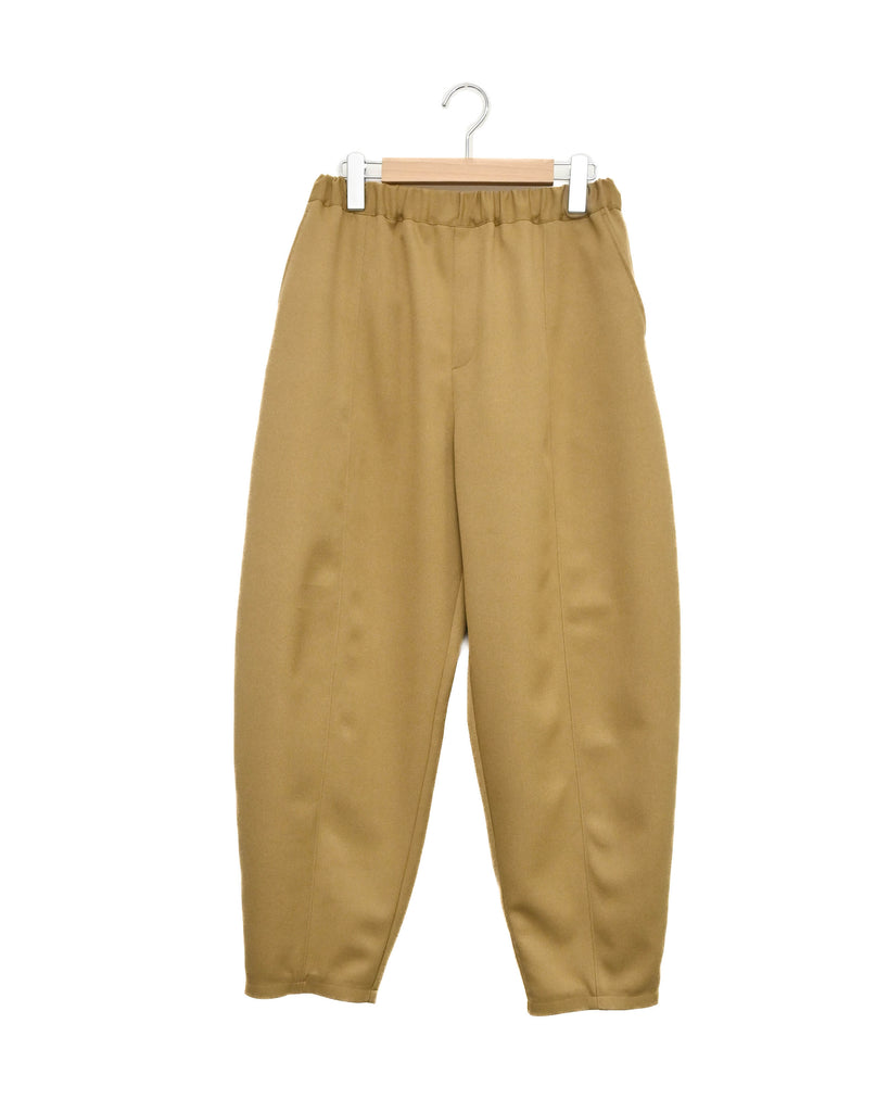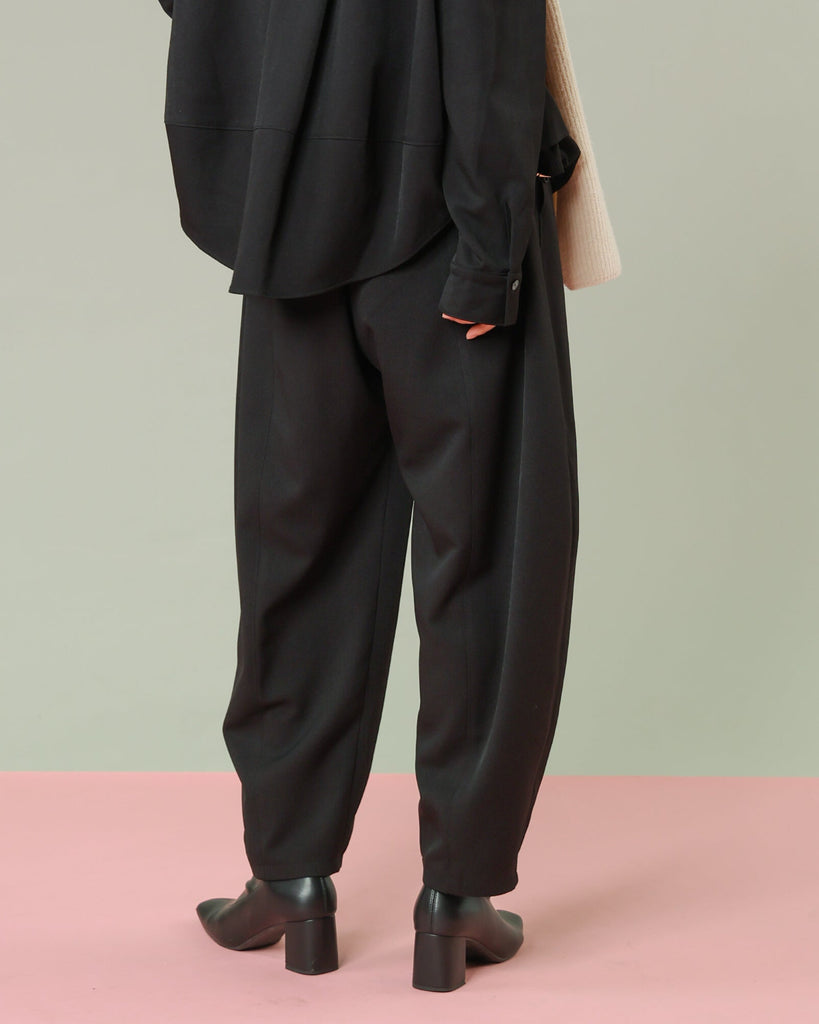 軽く着心地のよいウールライク素材。シワになりにくく気軽に洗えるイージーケアが嬉しいポイント。ほどよい張り感が立体的なシルエットを生み、丸みのあるバレルラインが大人の抜け感を演出。カジュアルにもきれいめにも合わせやすく、季節のスタイリングに取り入れやすい万能アイテムです。