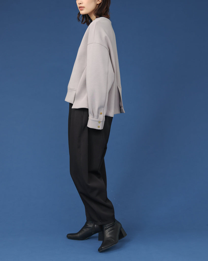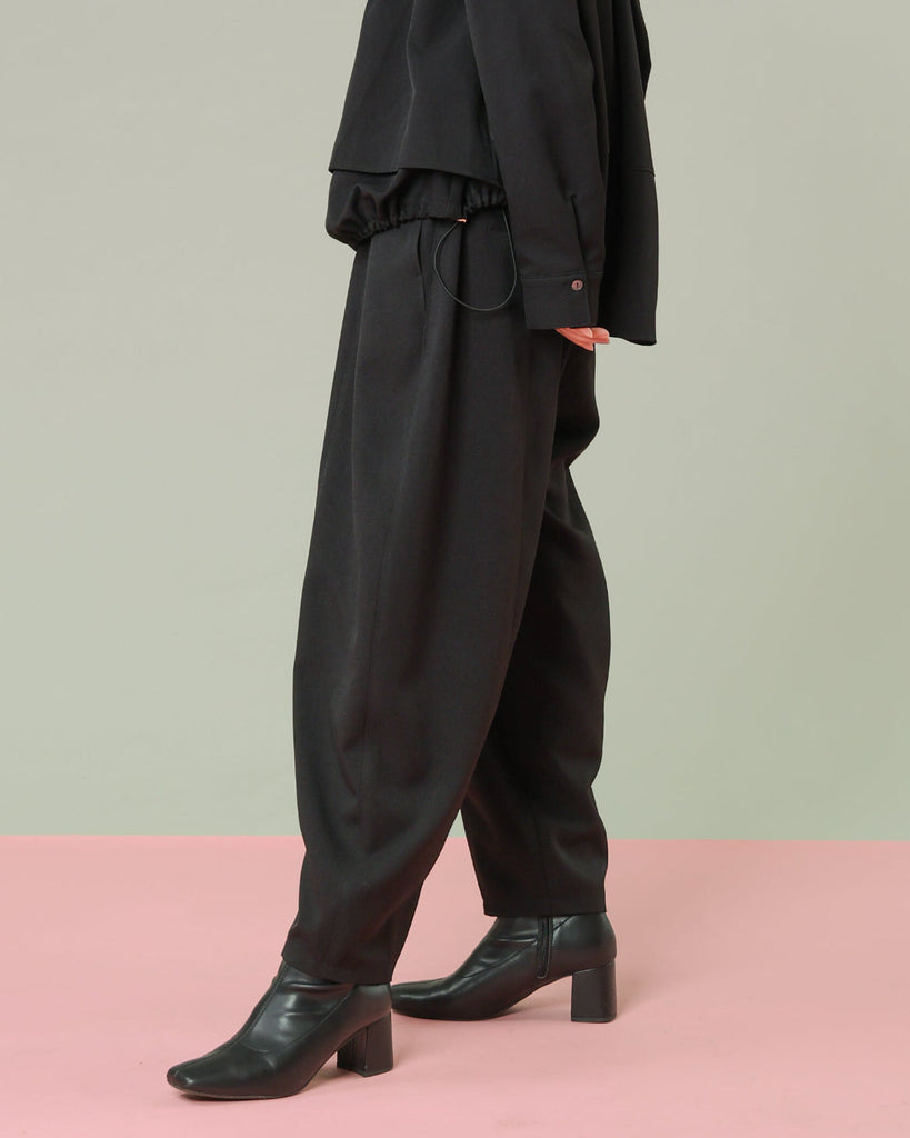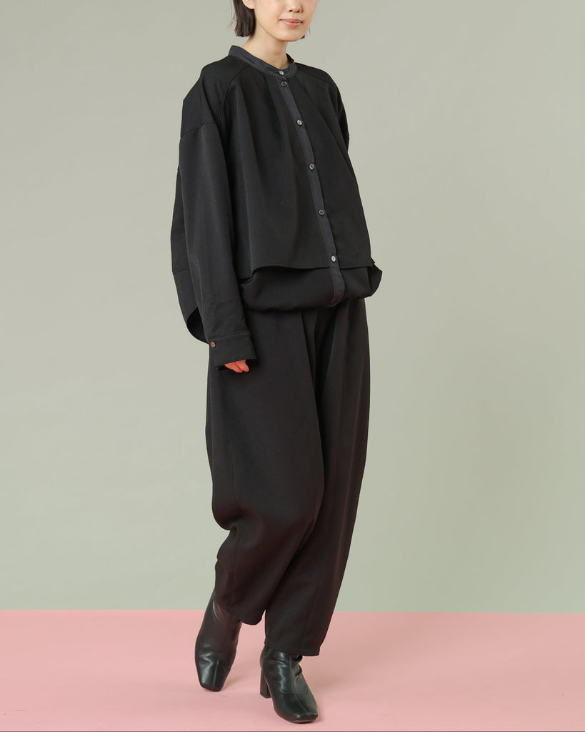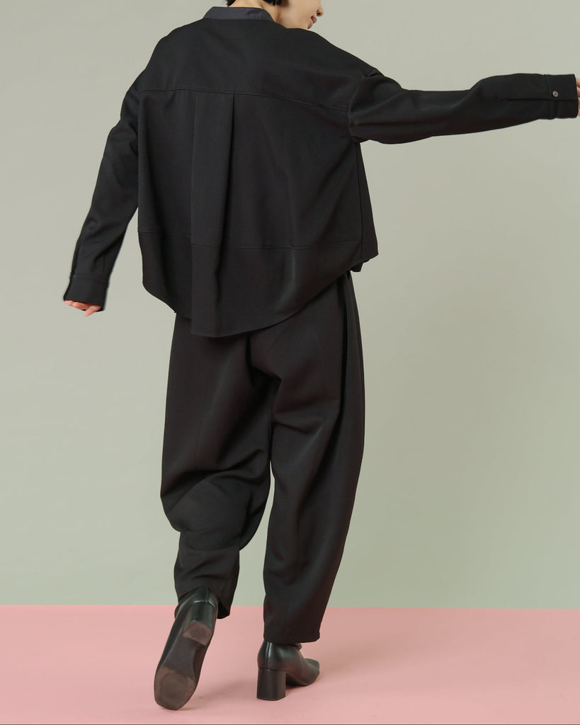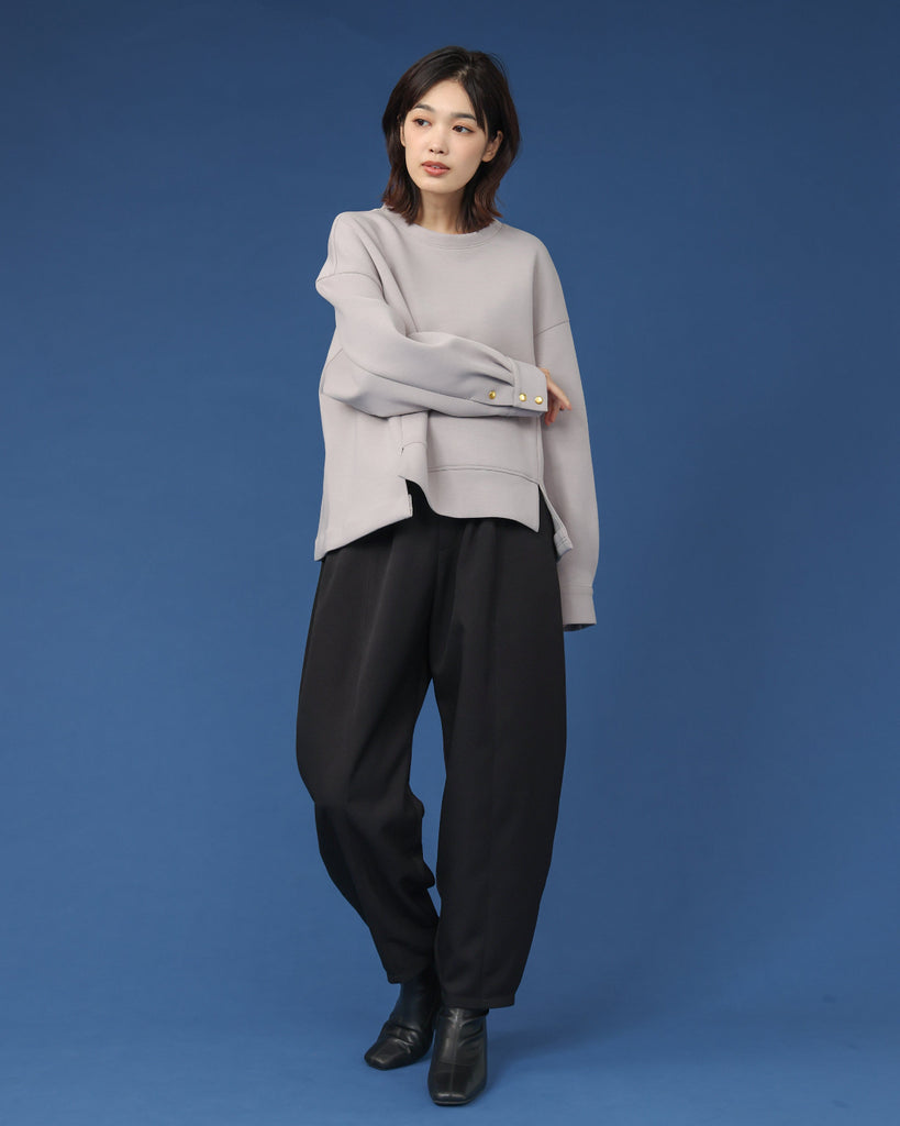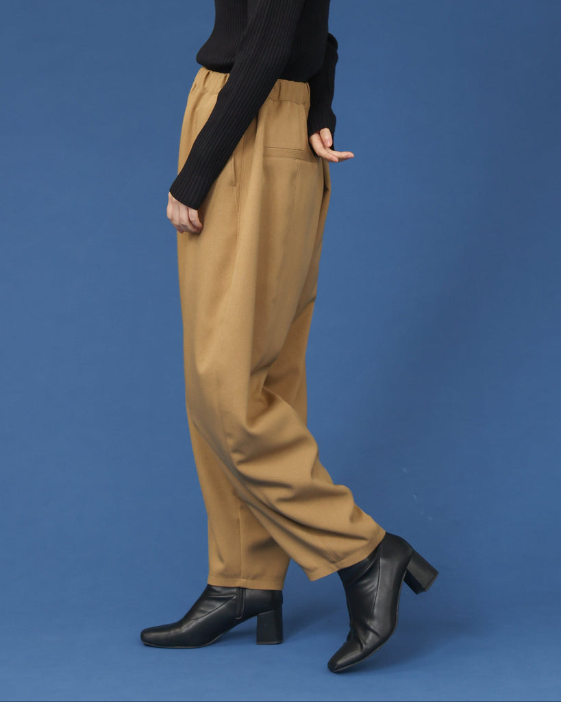 軽く着心地のよいウールライク素材。シワになりにくく気軽に洗えるイージーケアが嬉しいポイント。ほどよい張り感が立体的なシルエットを生み、丸みのあるバレルラインが大人の抜け感を演出。カジュアルにもきれいめにも合わせやすく、季節のスタイリングに取り入れやすい万能アイテムです。