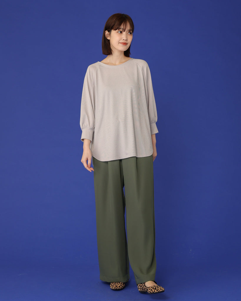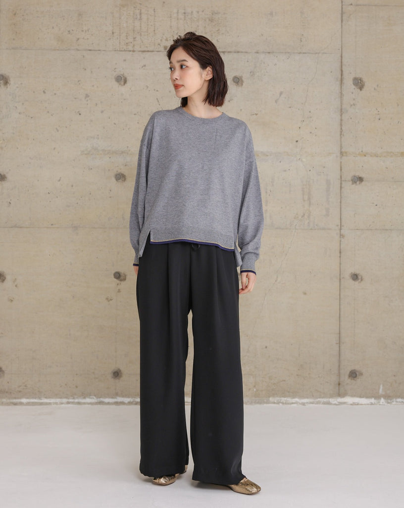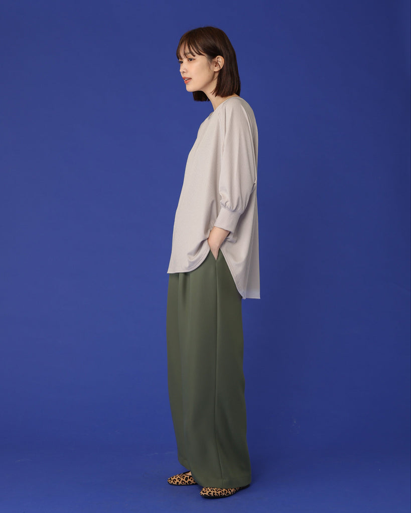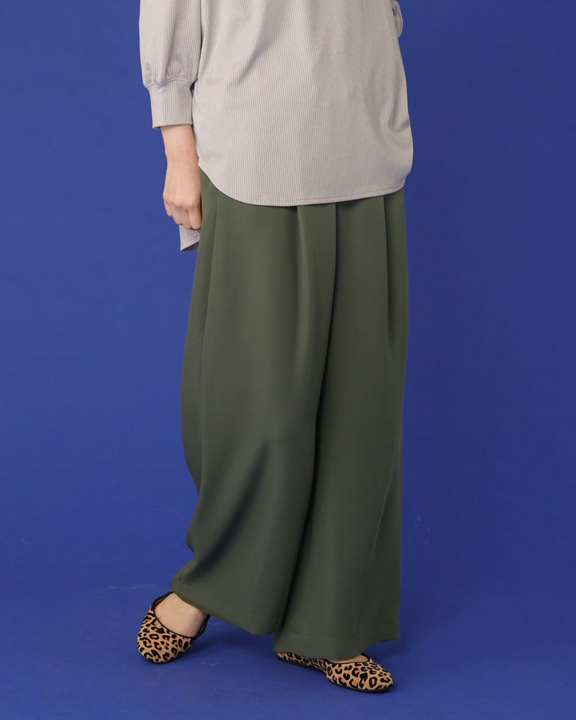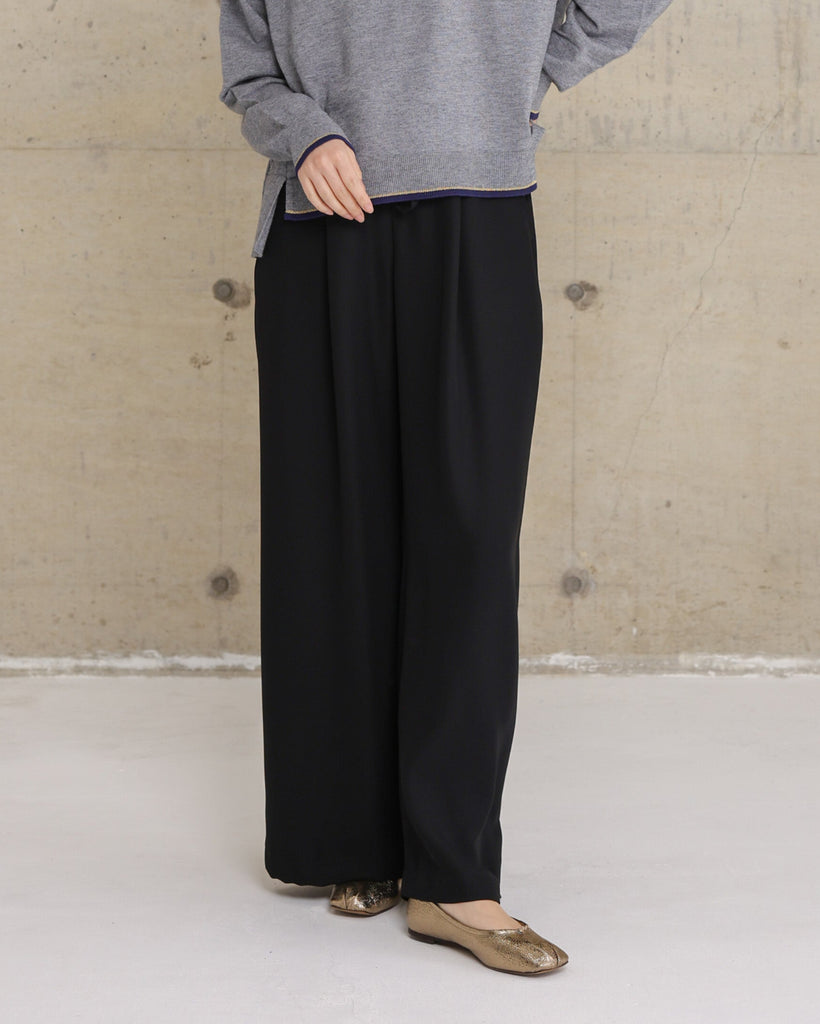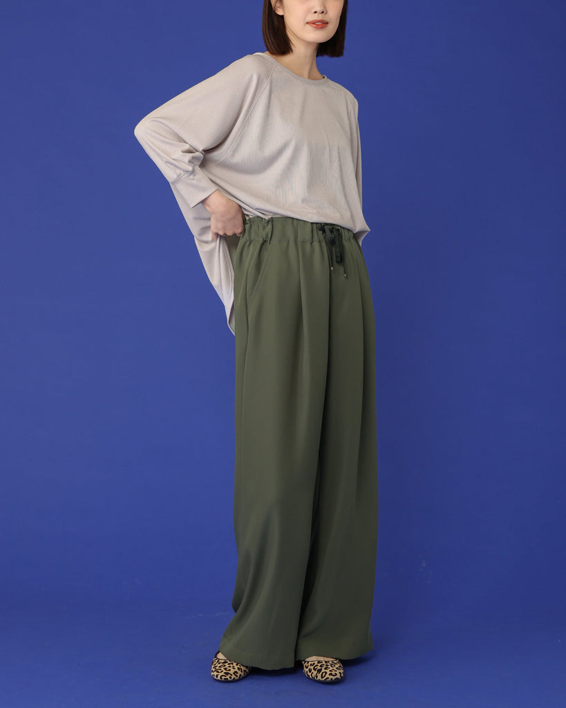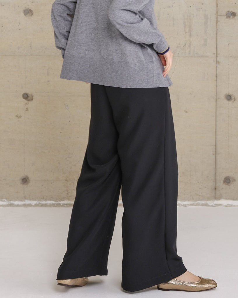 軽い履き心地が魅力のダブルクロスをつかったワイドパンツ。