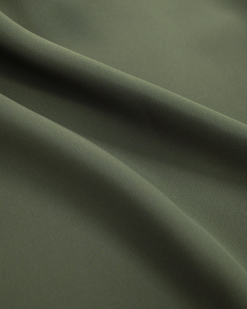 ドライタッチかつ伸縮性に富んだ糸を使用したダブルクロス生地。