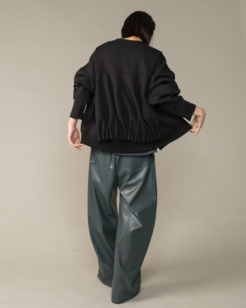 ふんわりとした風合いで着心地はもちろん、紫外線防止効果も。後ろ身はギャザーを寄せたデザインで丸みをもたせ、シンプルながら立体感があり着るだけでこなれた雰囲気を演出します。