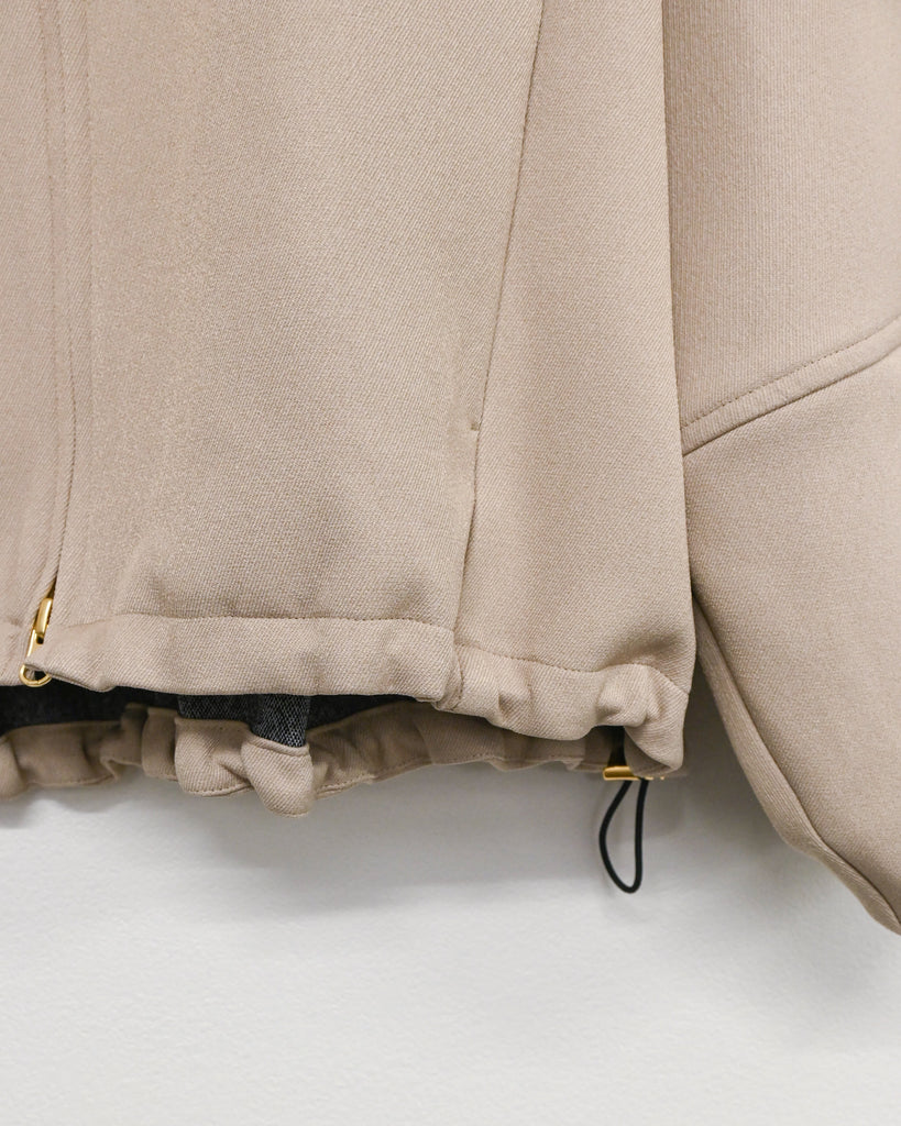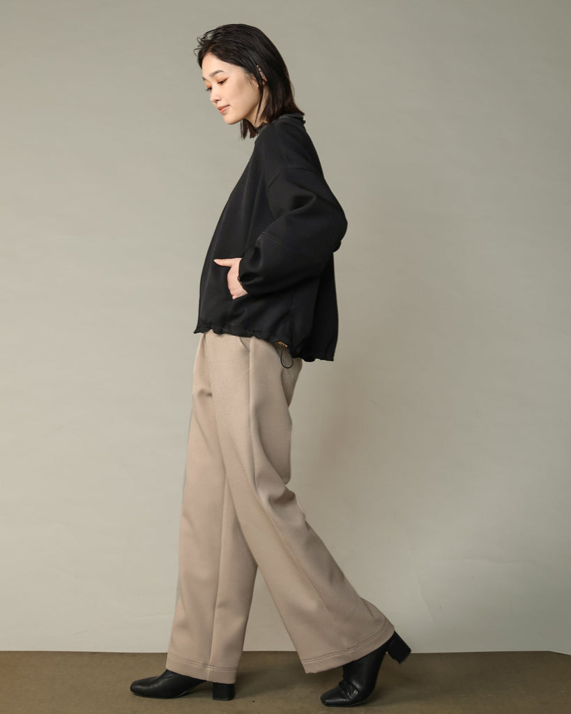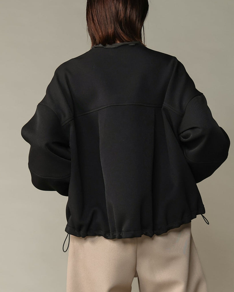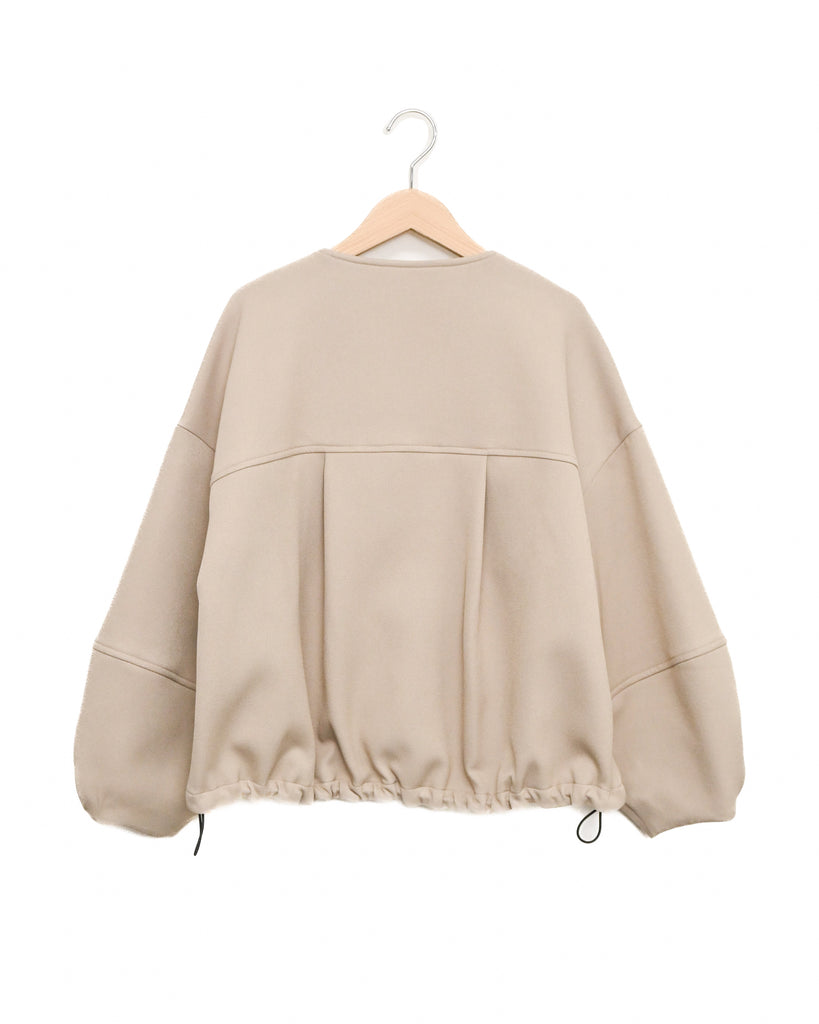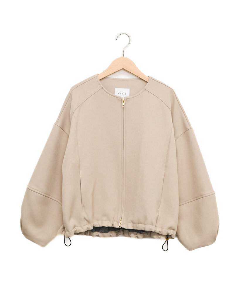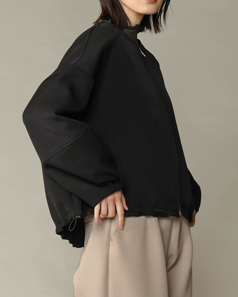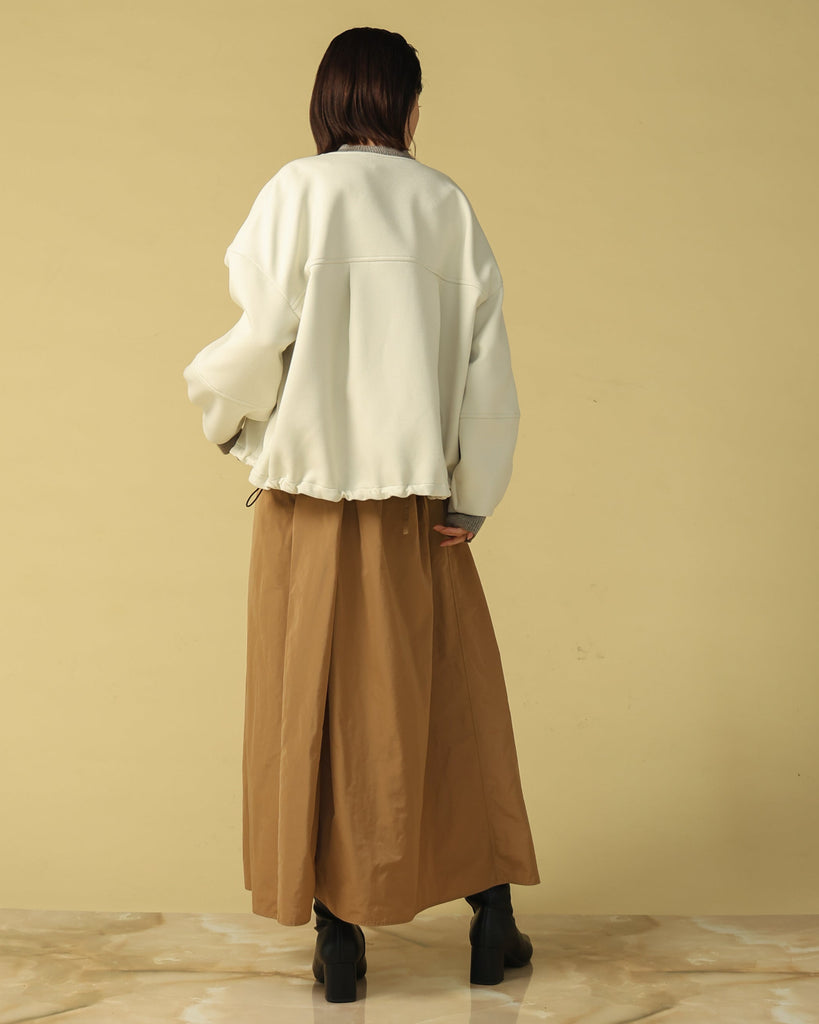 ラウンドネックのノーカラーデザインとフロントジップで顔まわりがすっきり見え◎適度にゆとりのあるボックスシルエットは、ニットやスウェットの上からでも重ねやすい万能アウターです。