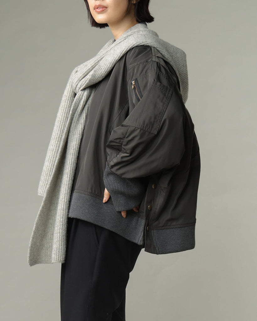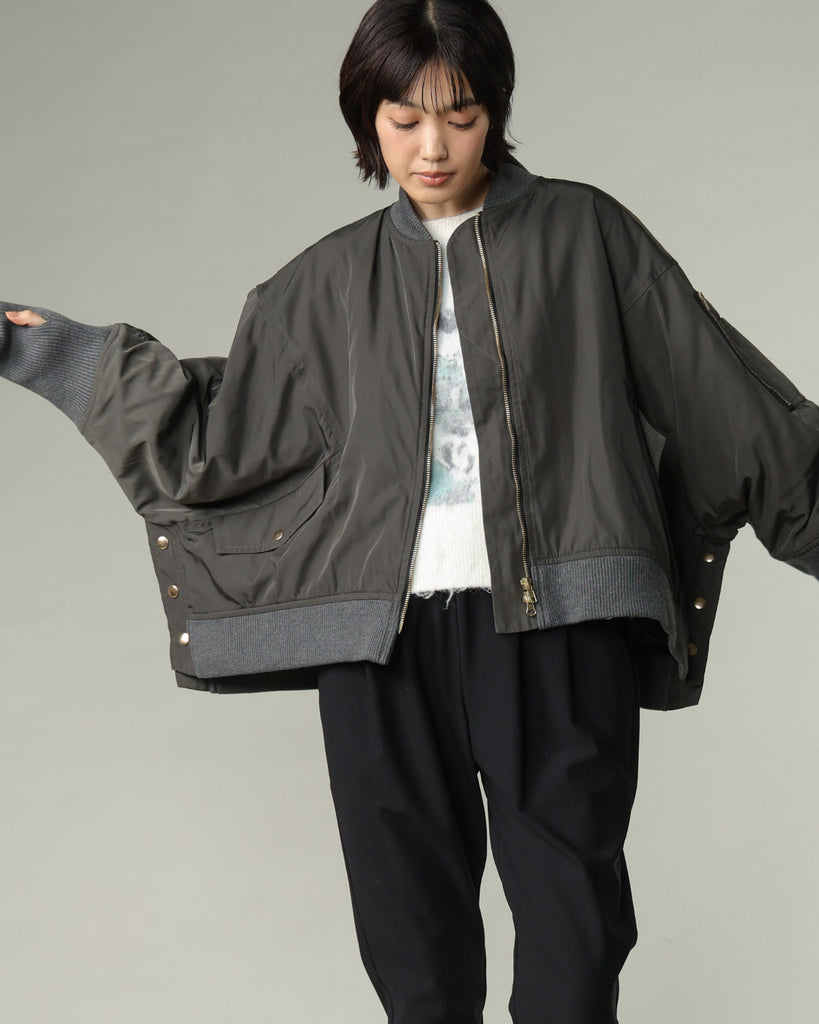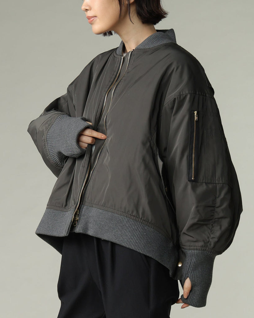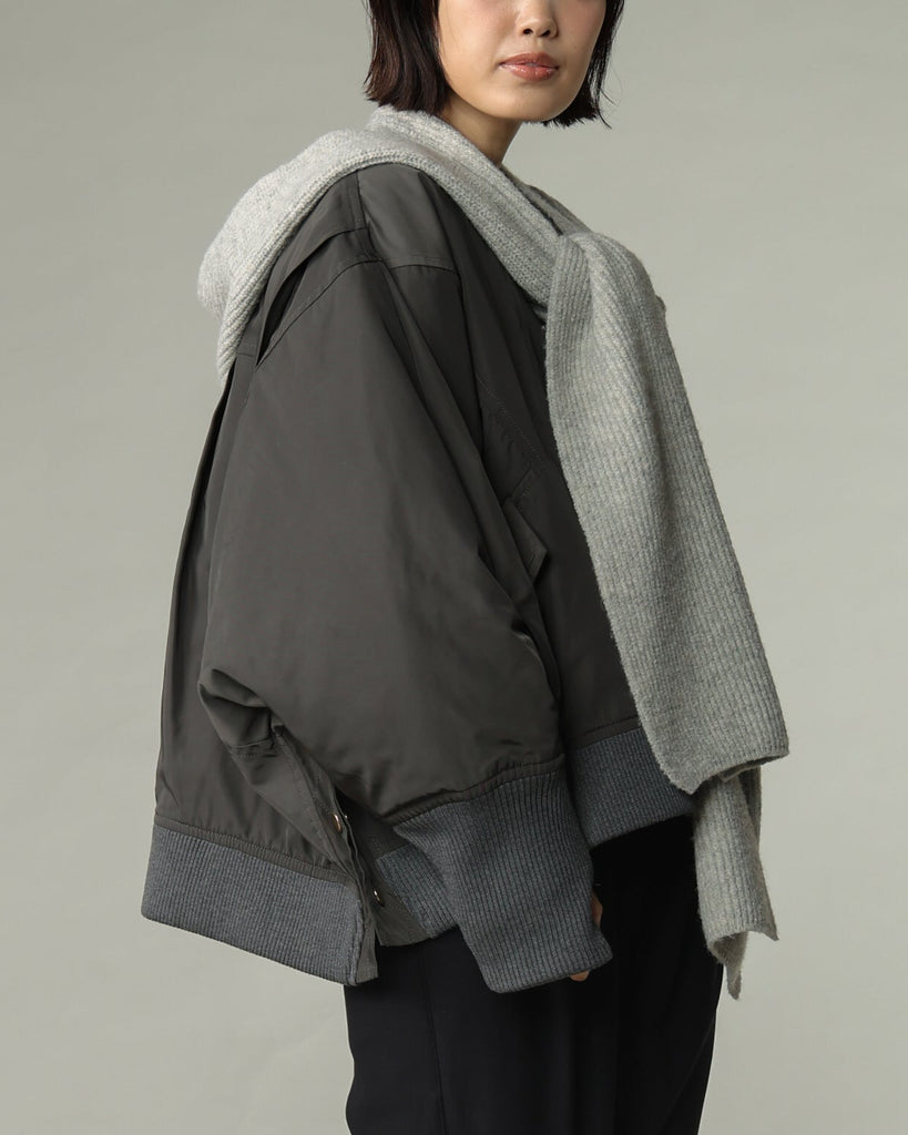 ポンチョとMA-1を合体させた様な裏キルティングのショートブルゾン。