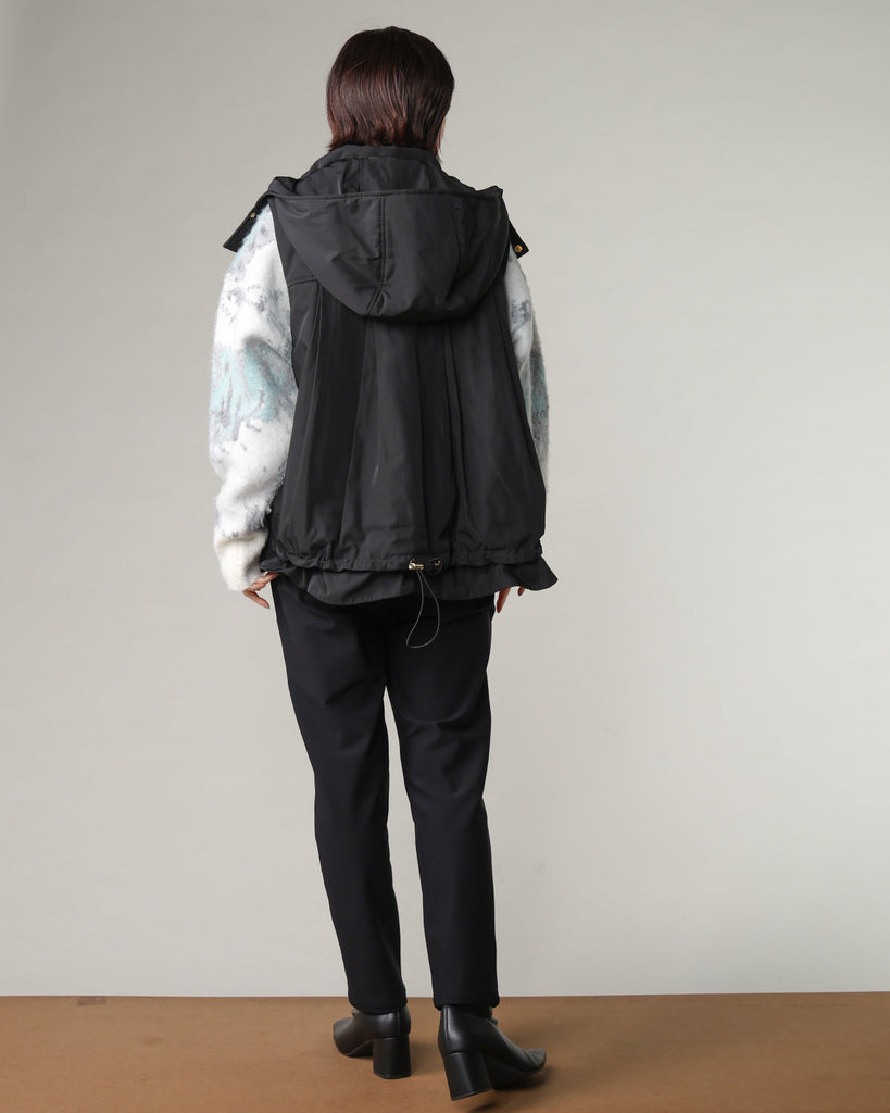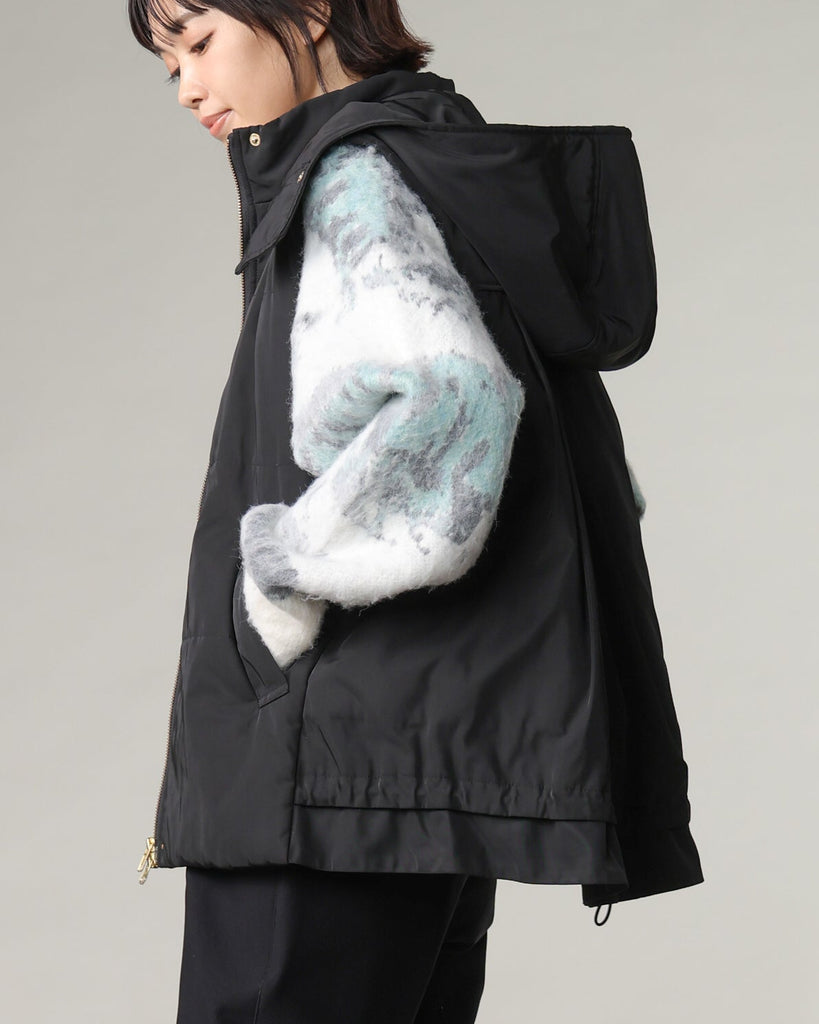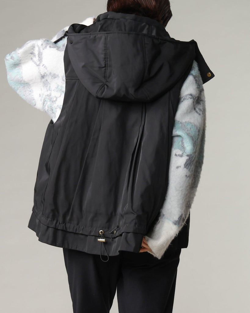 ヒップの隠れる丈とゆとりのあるサイズ感で、カジュアルかつ抜け感のある一枚。厚手のスウェットやニットの上に着用でき、季節の変わり目に温度調整のし易いアイテムです。フードはファスナーで簡単に取り外しが可能なので、カジュアルからキレイ目まで幅広くコーデにも取り入れやすい秋の万能アイテム。