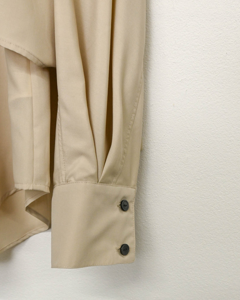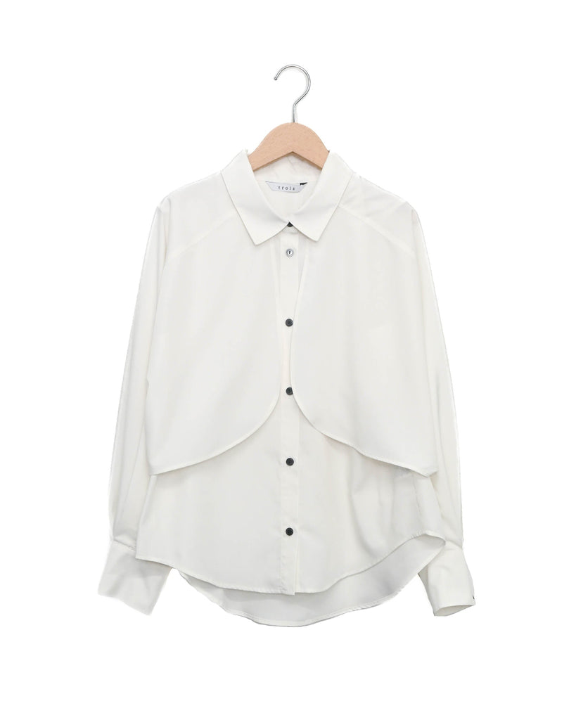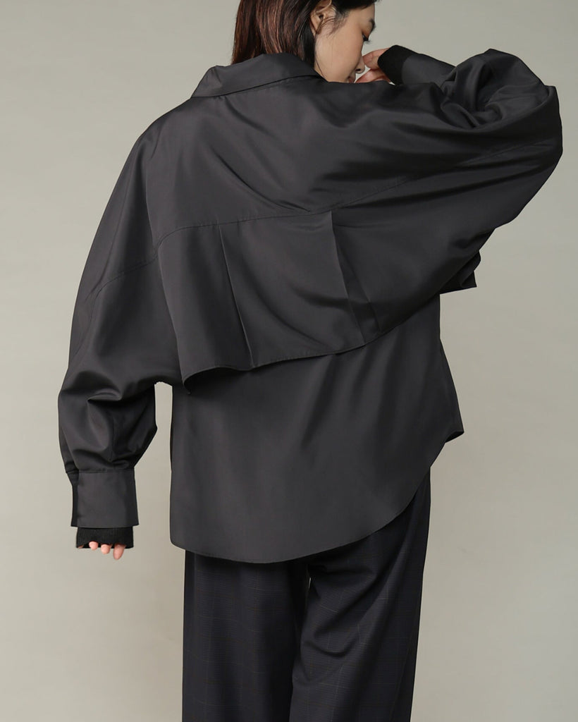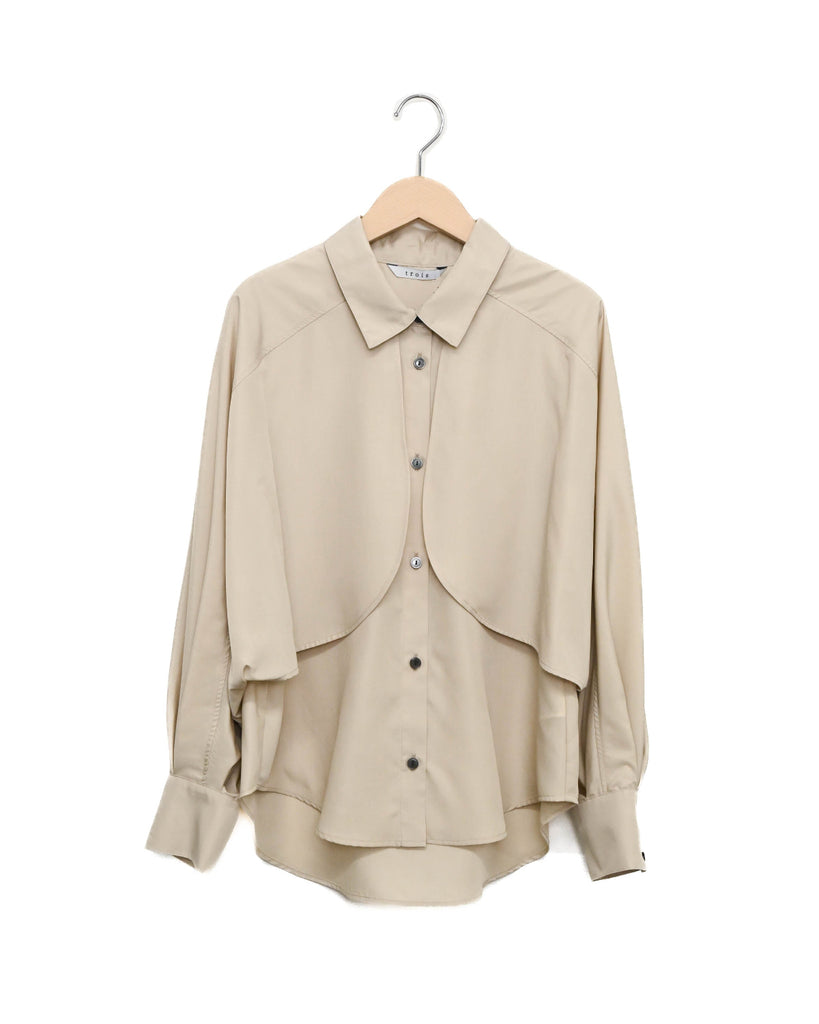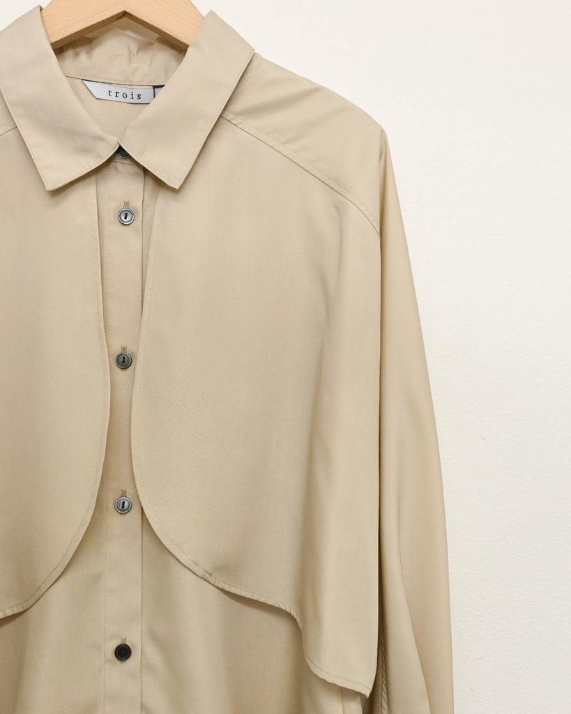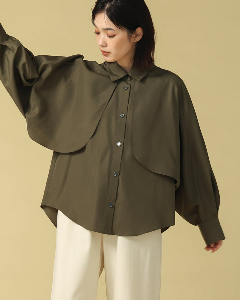 UV遮断率80%、優しい肌触りが魅力のポリエステル。イージーケア商品です。ノースリーブブラウスに大き目のフラップを重ねた様なデザインで涼しく着ていただけます。ゆったりとした身幅が抜け感を演出し、バランスの良いコーデが完成します。