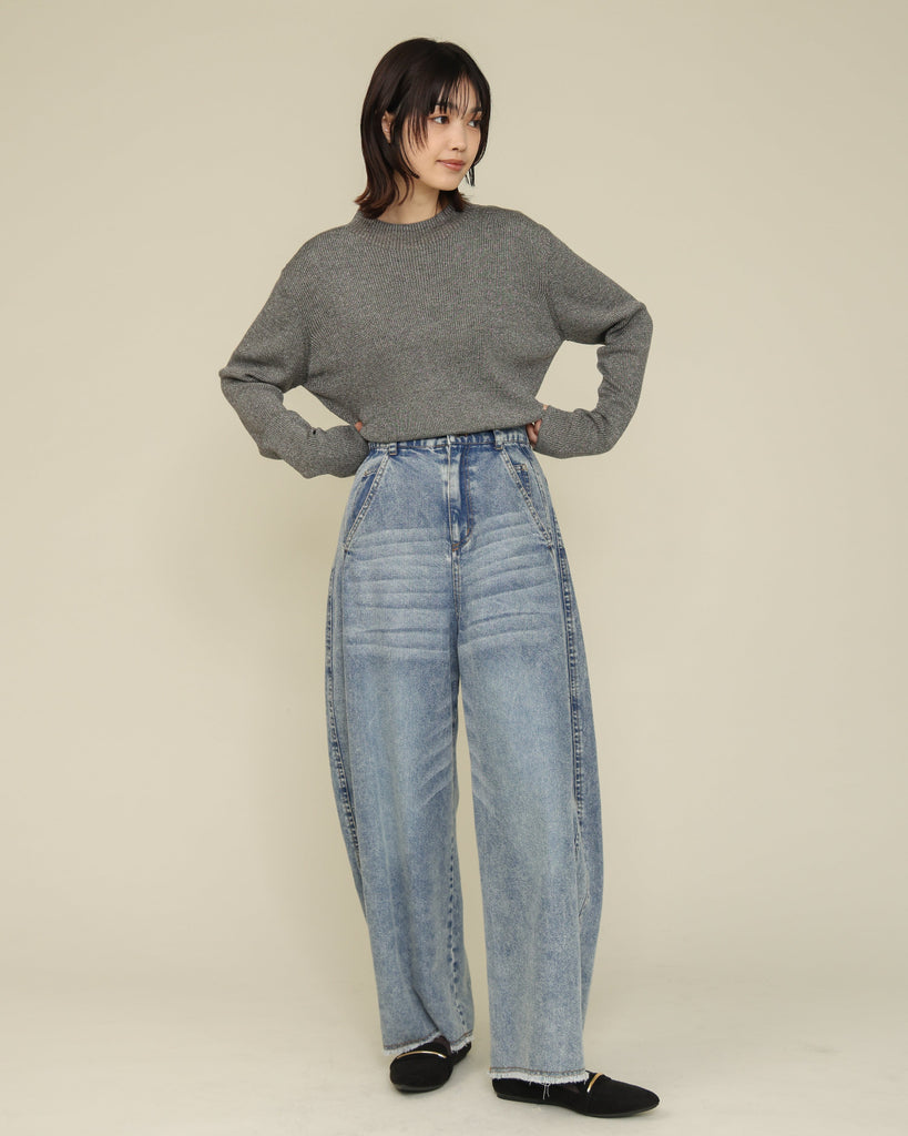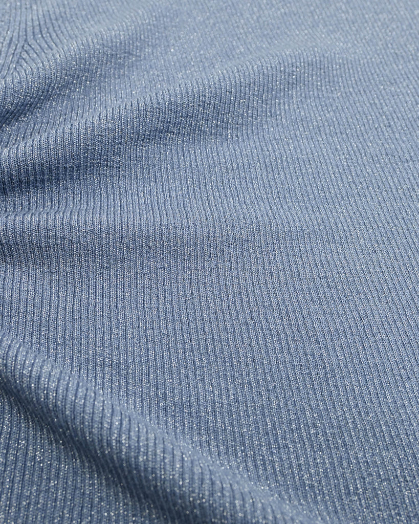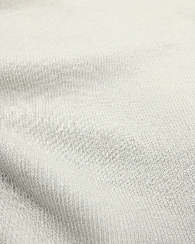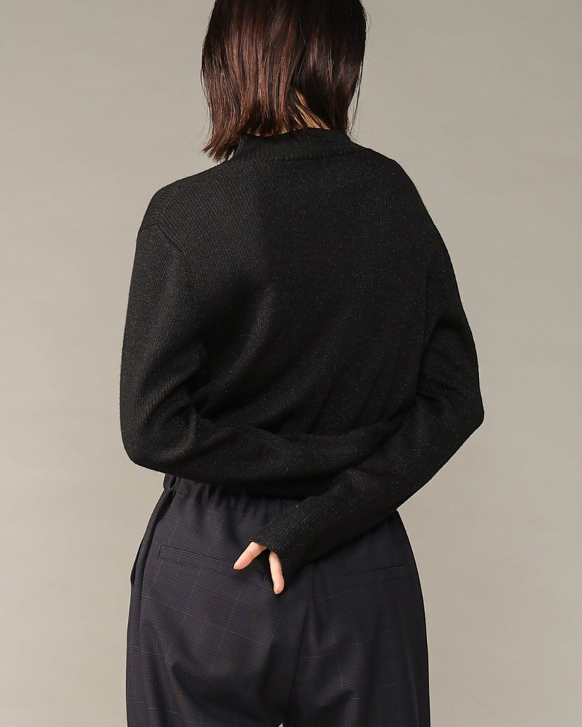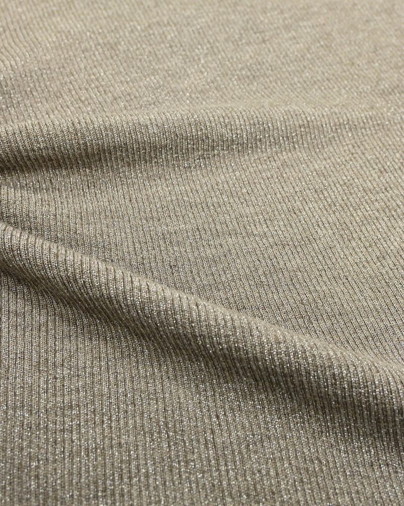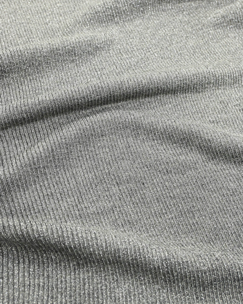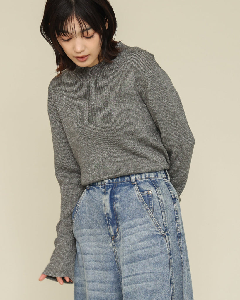 ウール混の柔らかなラメニット。ほんのり光沢のあるキレイめ上品なラメは、シンプルながら華やかさを添えてくれる一枚です。薄手なので、インナーとしてもメイントップスとしても活躍し、季節の変わり目から冬まで長いシーズン着回せます。きれいめからカジュアルまで幅広いコーデに対応できる万能アイテムです。