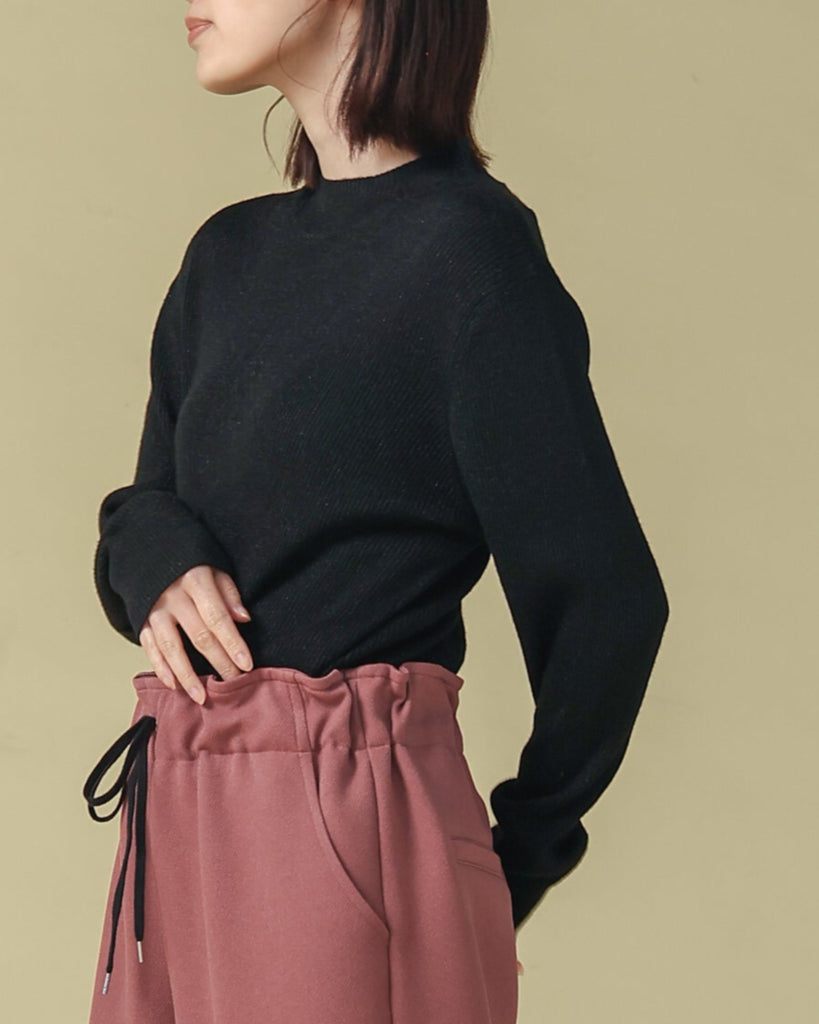 ウールならではの温かみと柔らかさを持ちつつ、細かい目で編まれた生地。