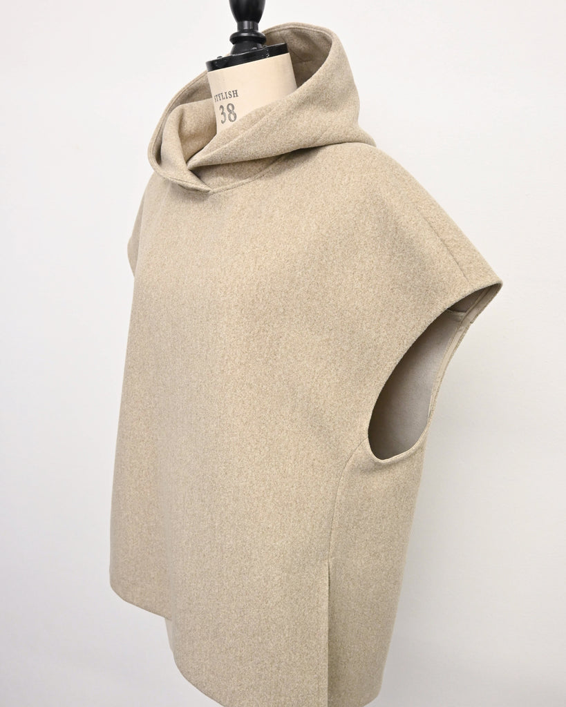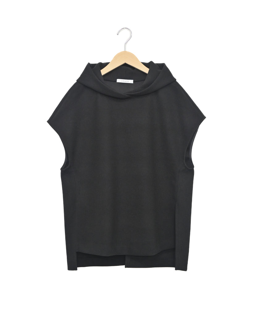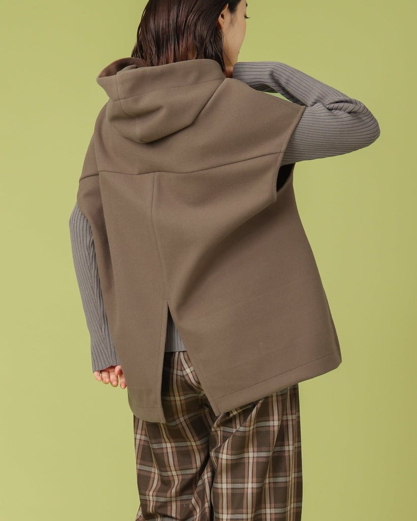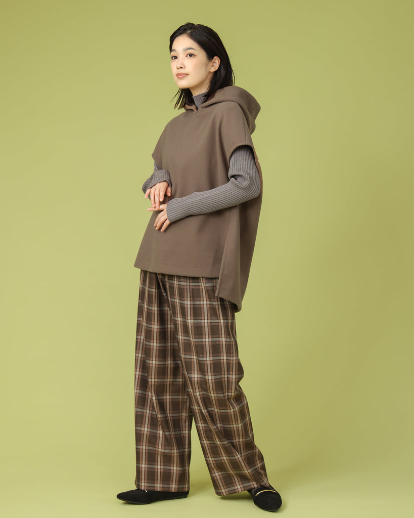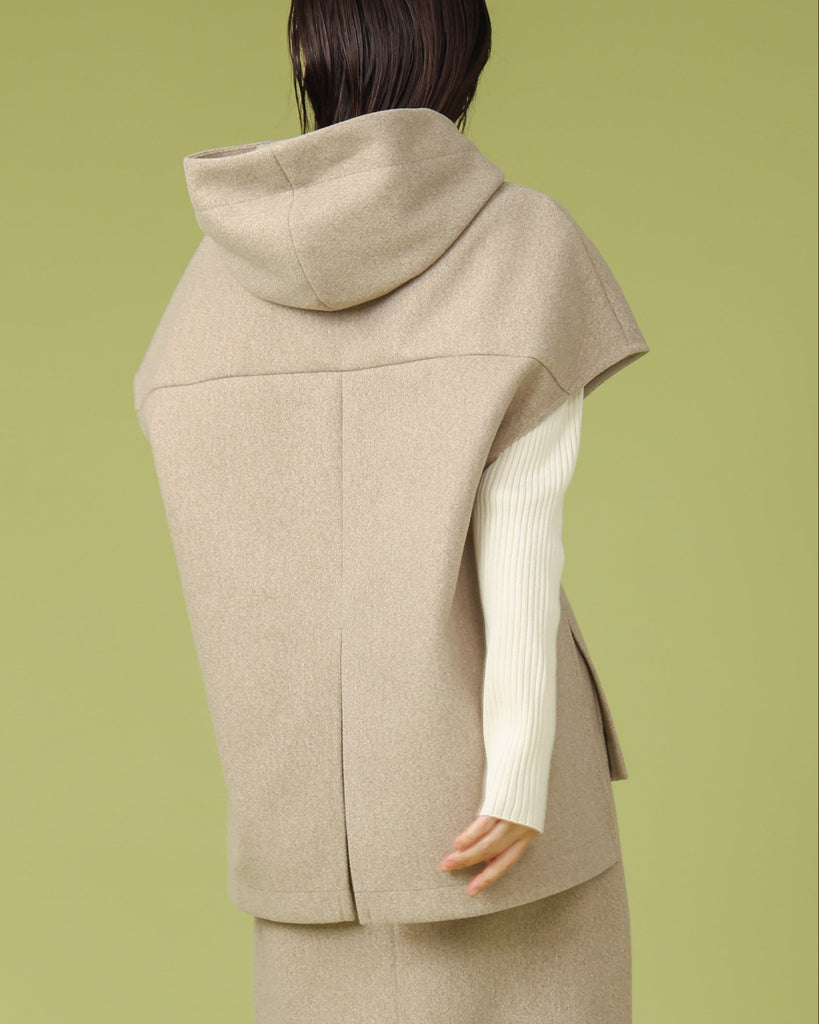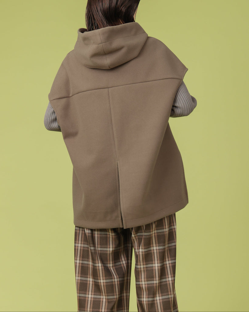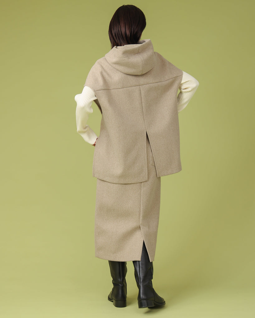 軽く柔らかい生地感で動きやすくストレスフリーな着心地です。フード付きのデザインが顔まわりに立体感をプラスし、カジュアルながらも上品な印象に。やや長めの丈感と、両サイドに入ったスリットが抜け感を生み、重ね着してももたつかない設計になっています。同素材シリーズのパンツやスカートとセットアップで着用すれば、統一感のある洗練されたスタイルに。