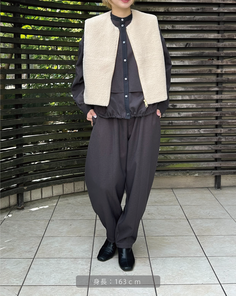 軽いエアリーな雰囲気のボアと柔らかいポンチを切り替えたショートベスト。