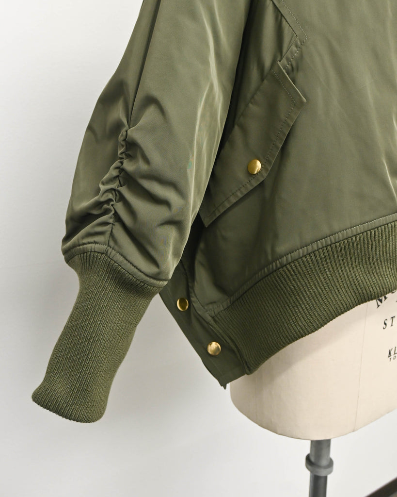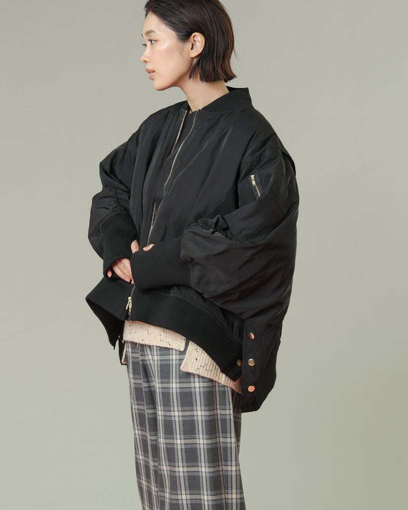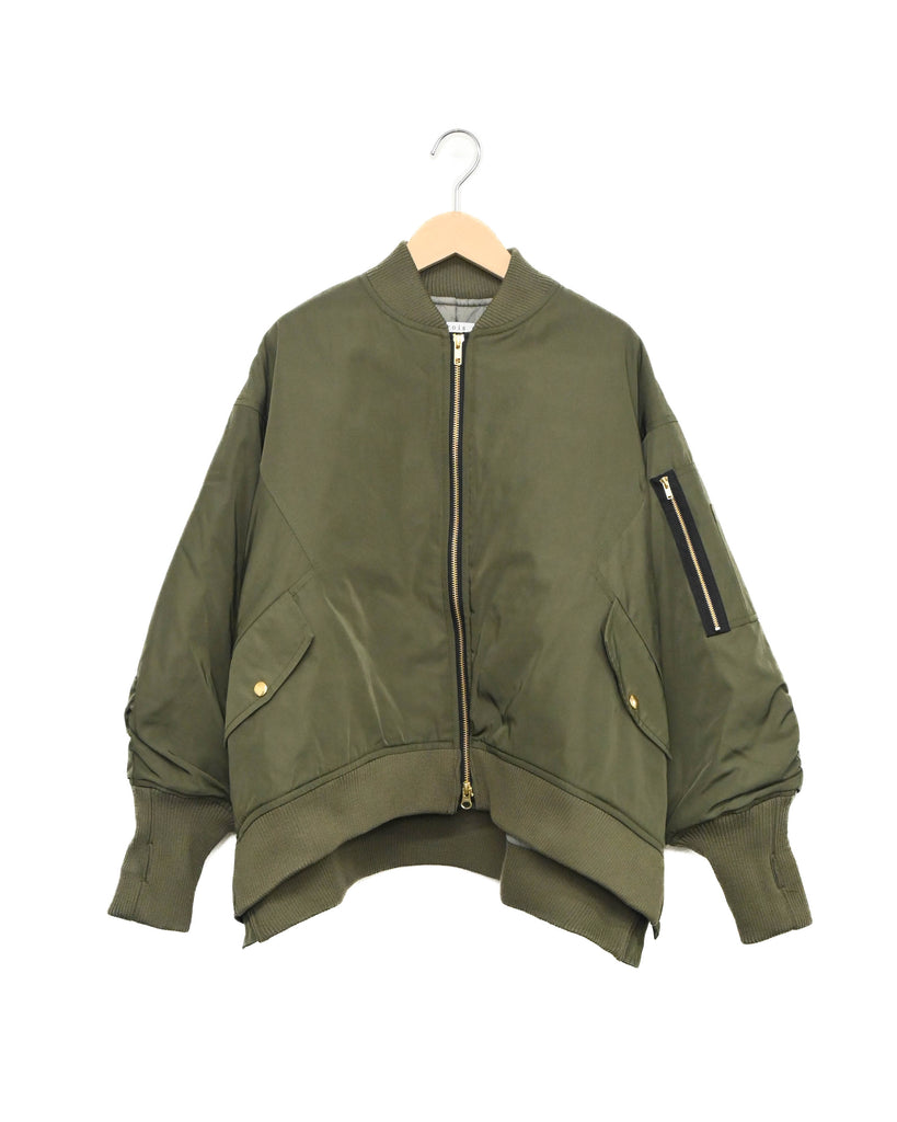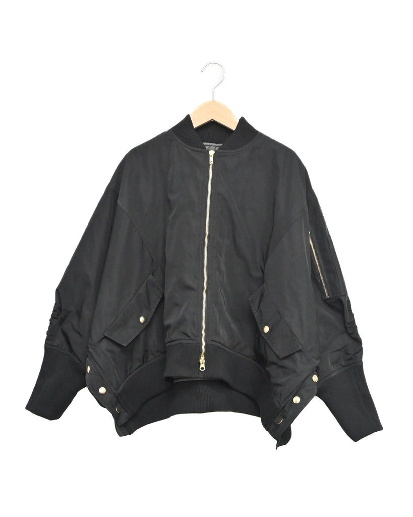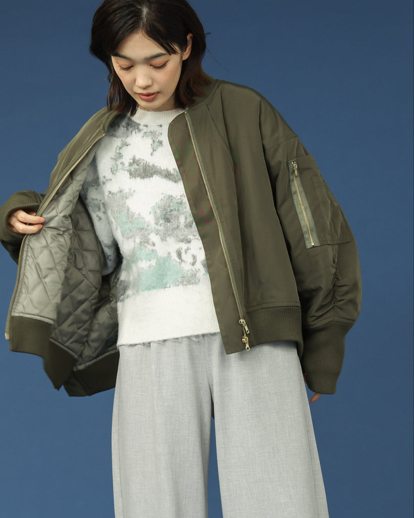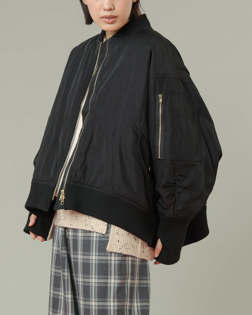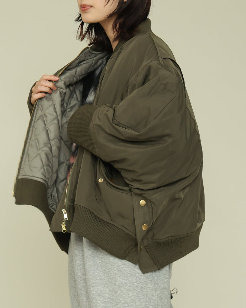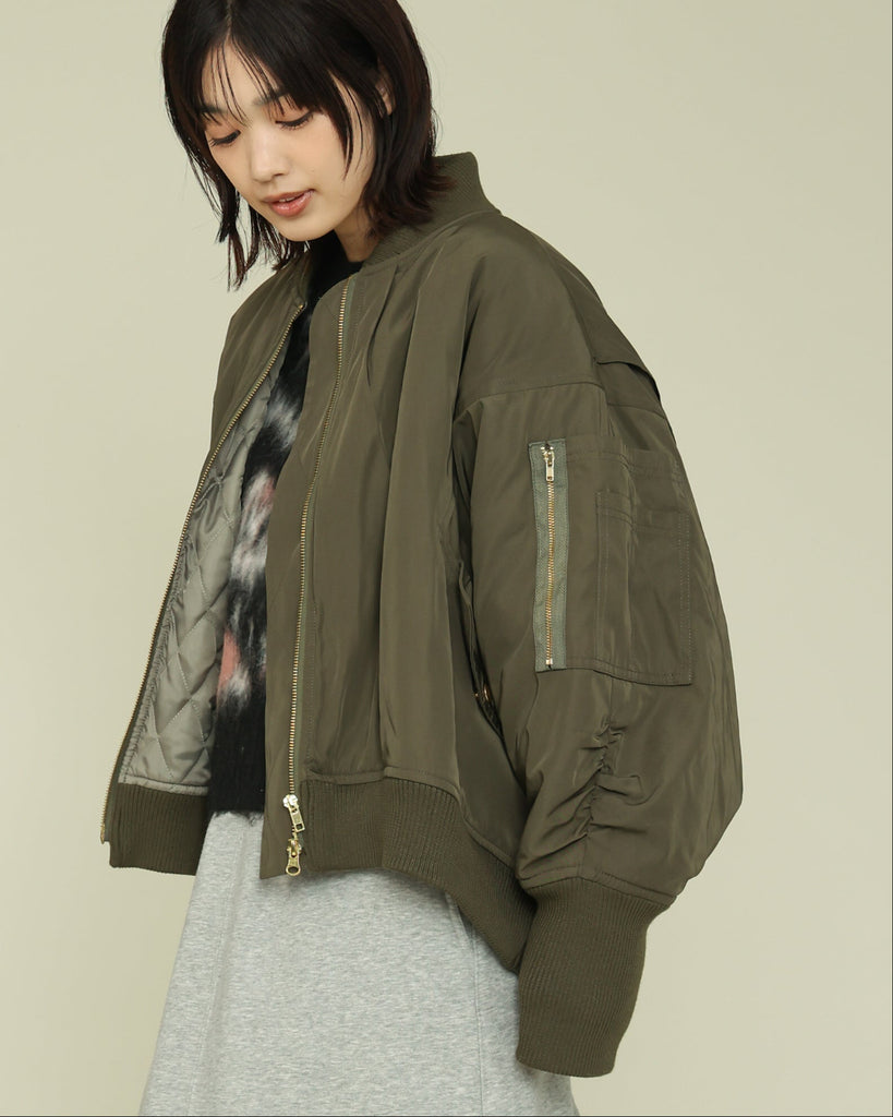 ポンチョとMA-1を合体させた様な裏キルティングのショートブルゾン。