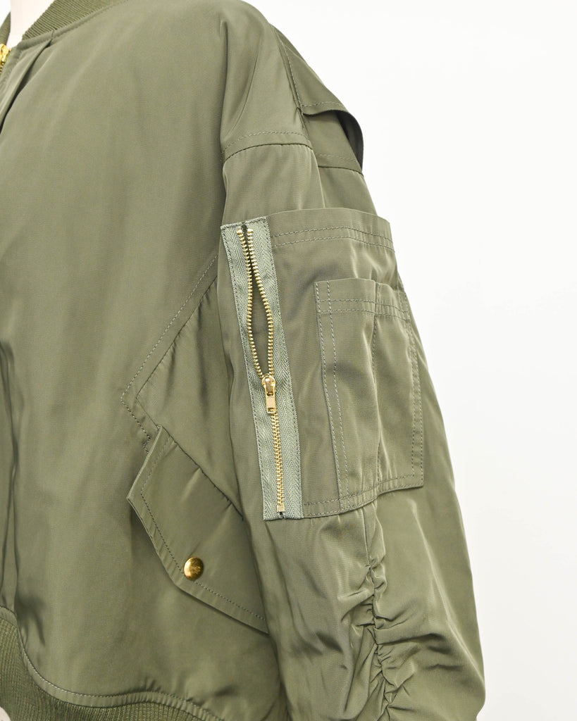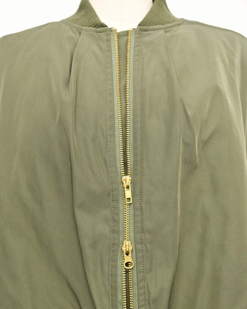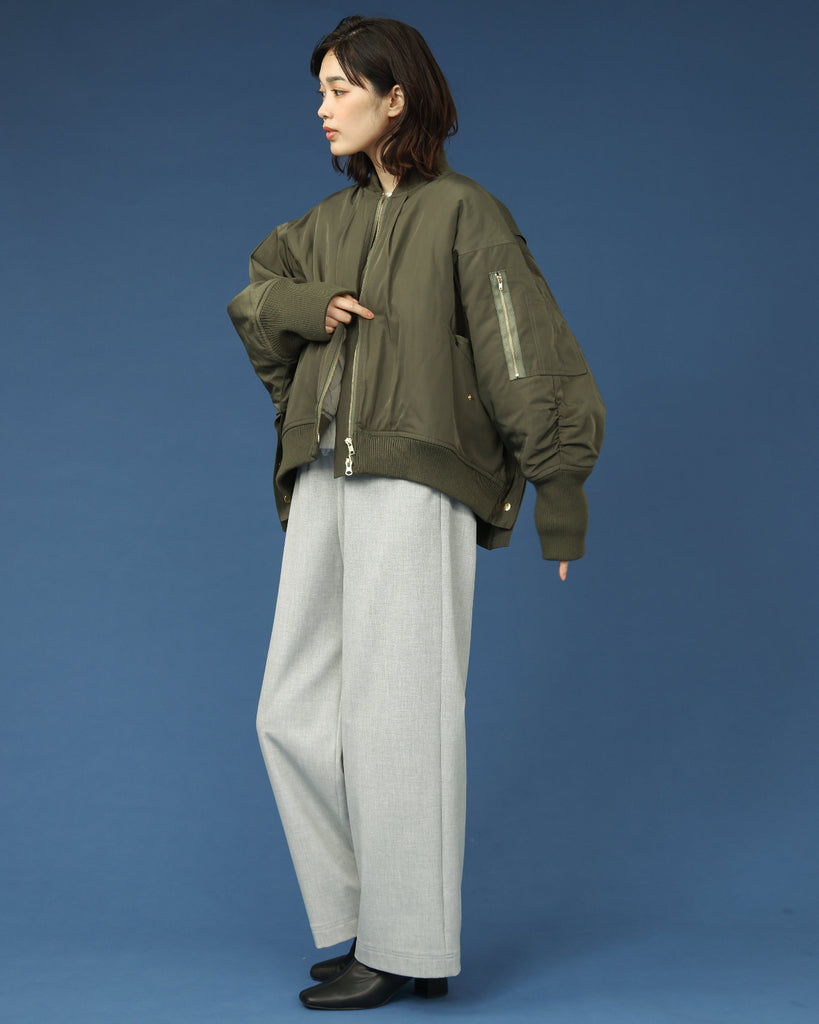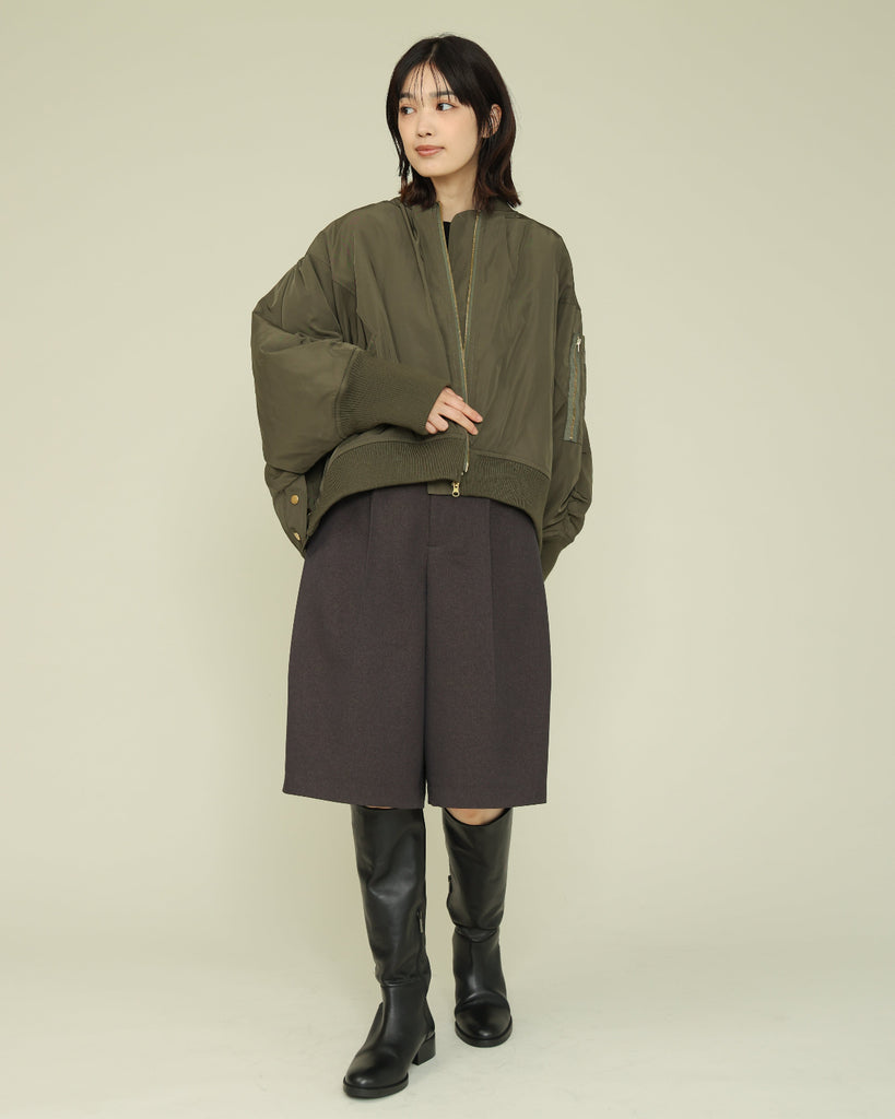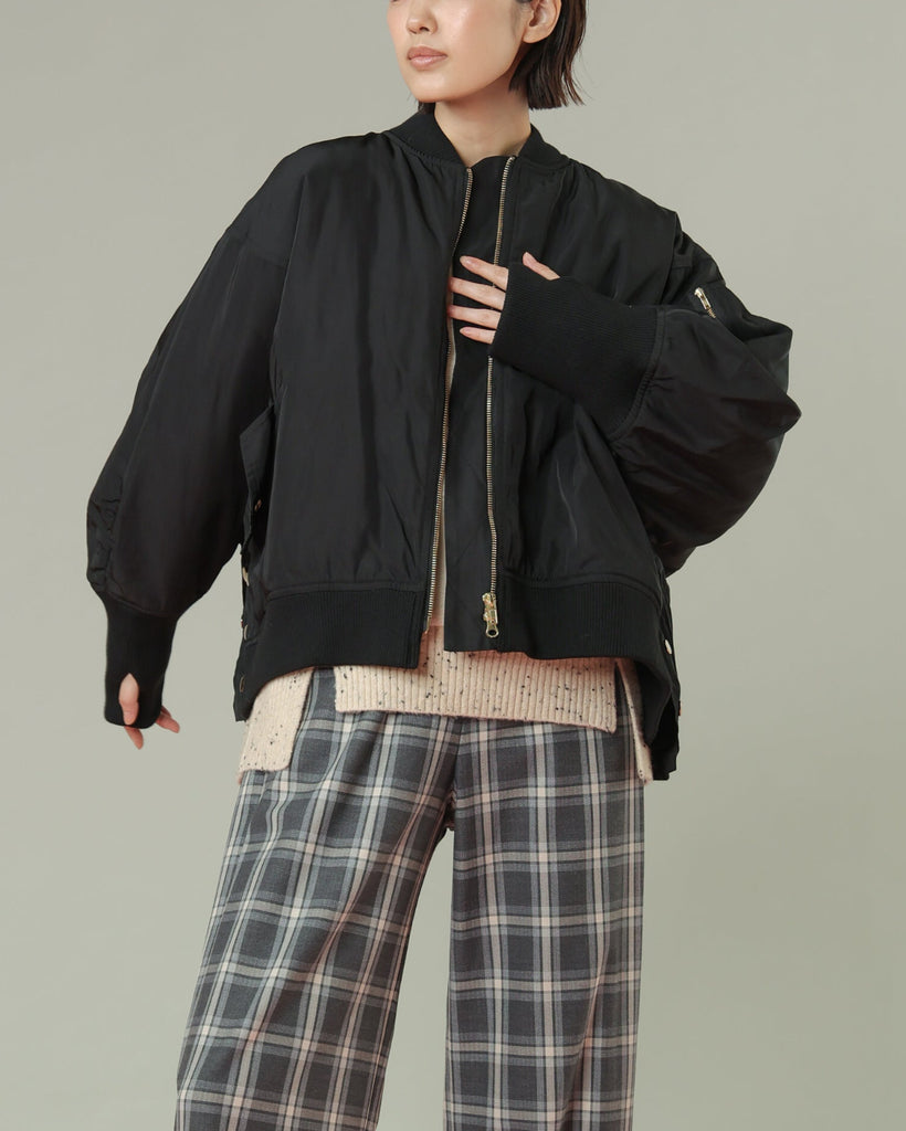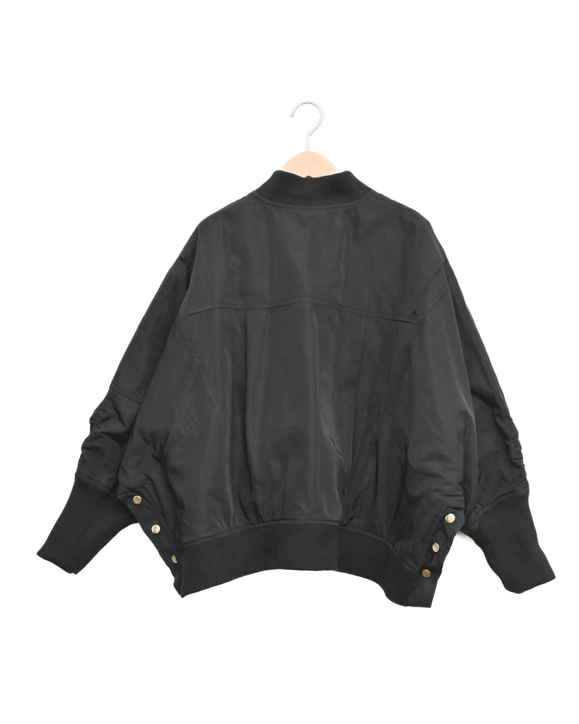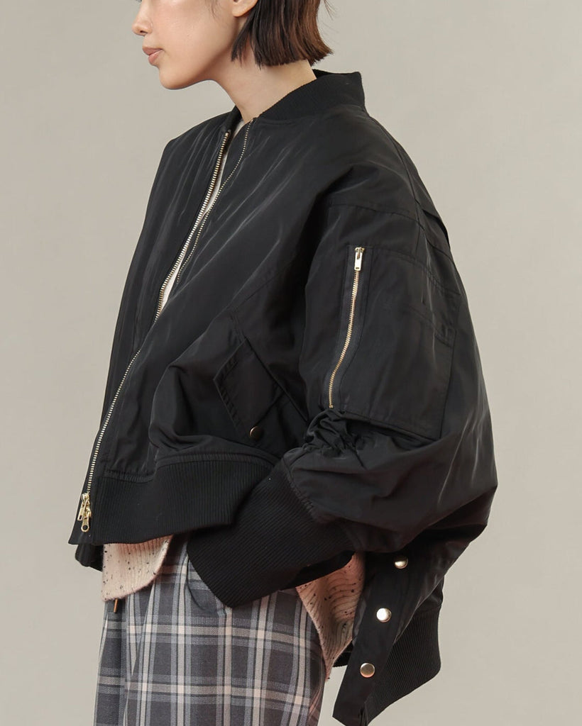 ポンチョとMA-1を合体させた様な裏キルティングのショートブルゾン。