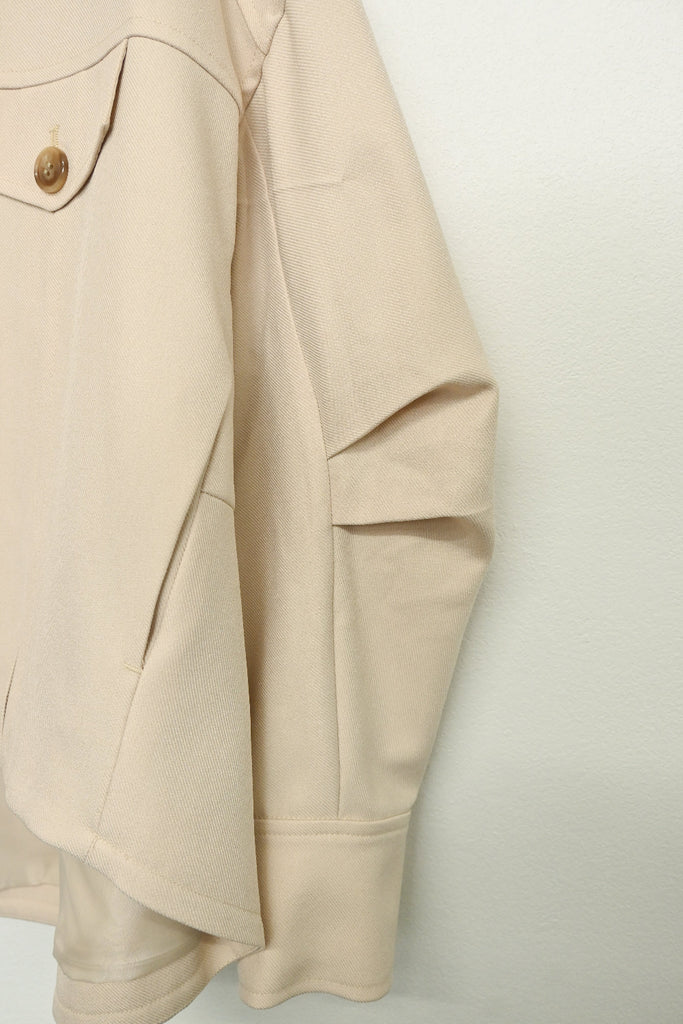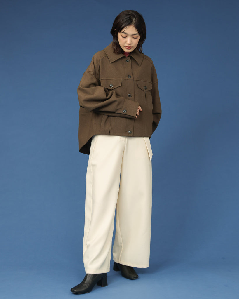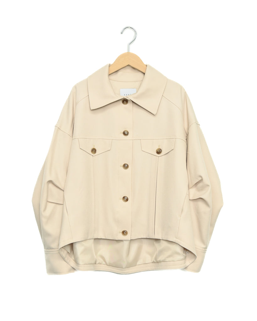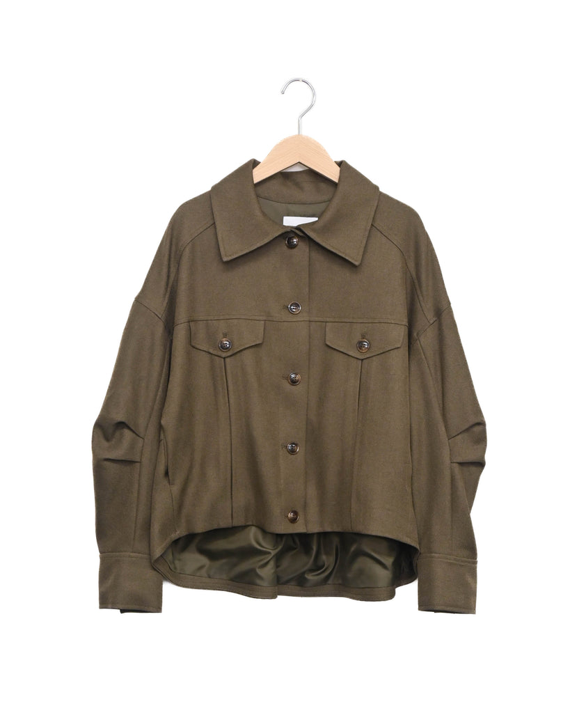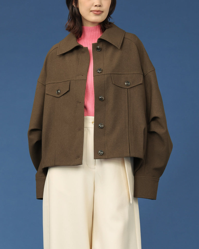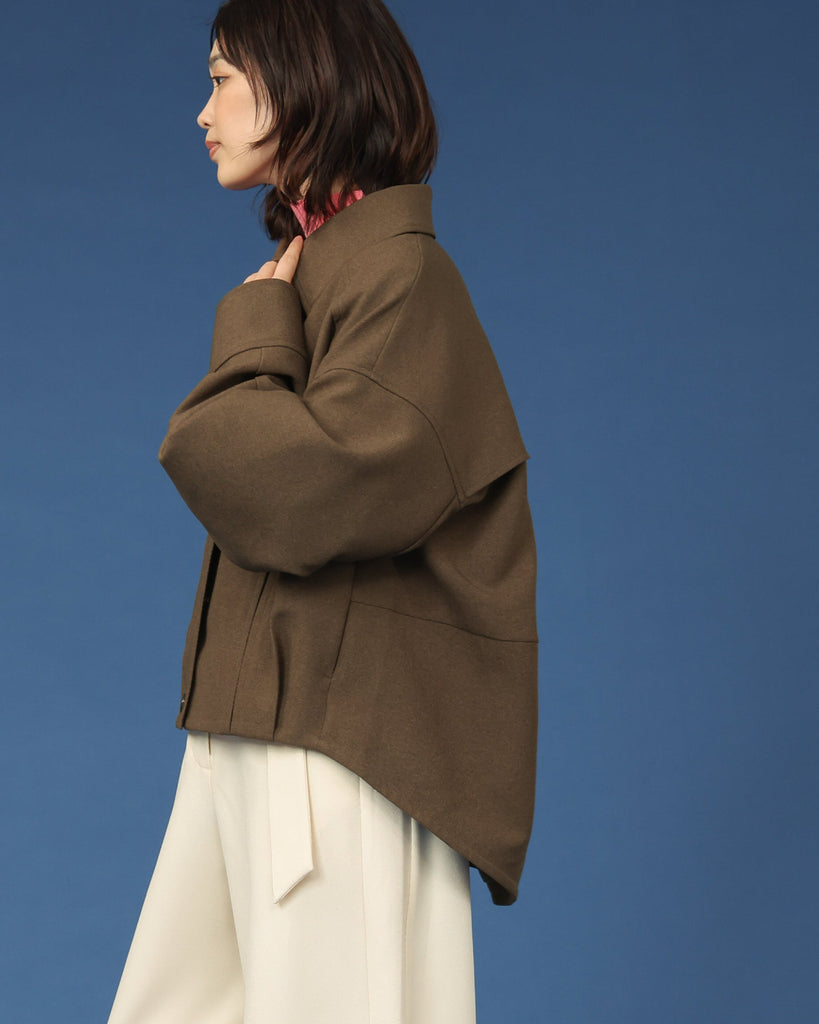程よい厚みのウールライクカルゼを使用したバレルスリーブのショートジャケット。