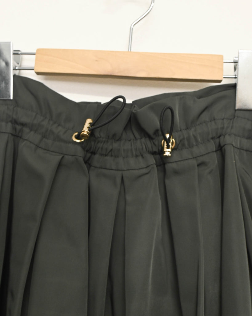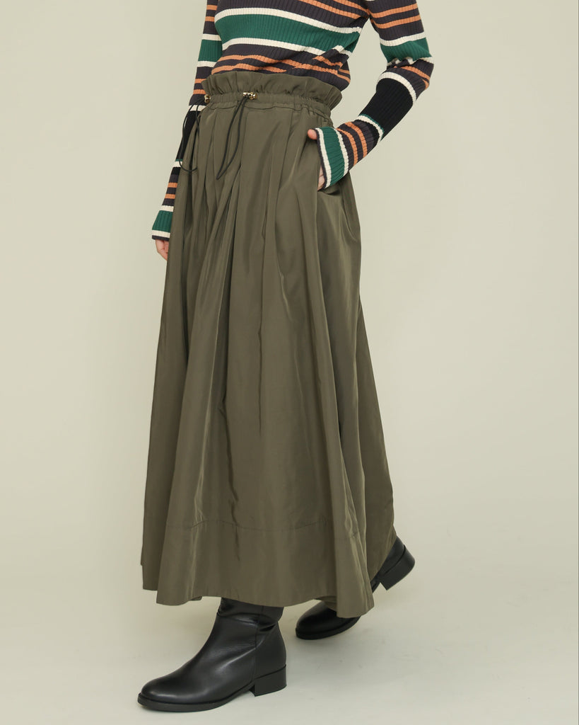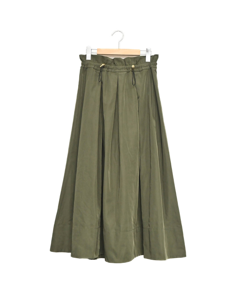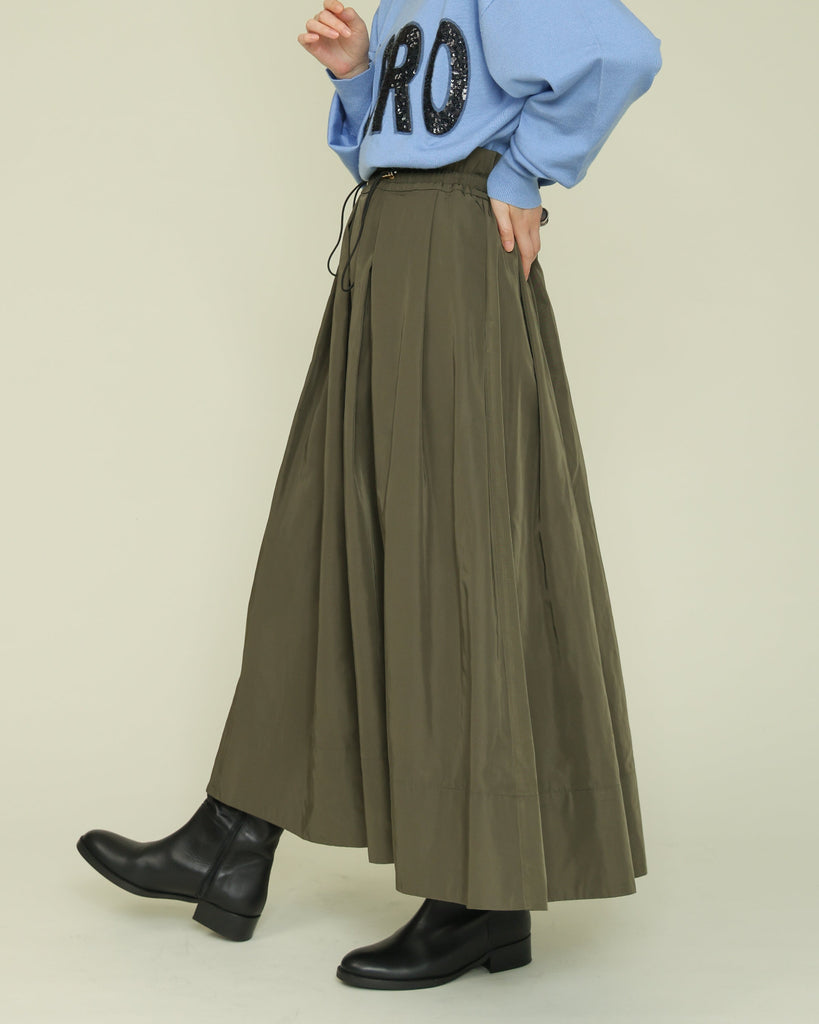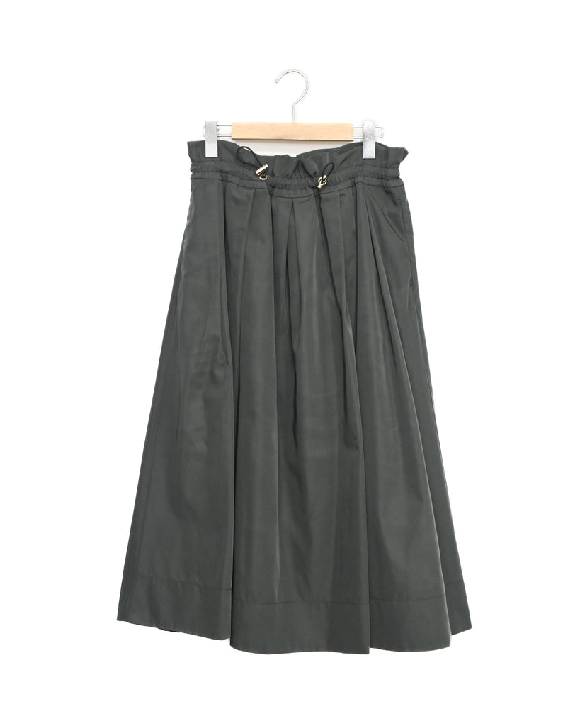 ハリのある素材を使用したタックスカート。