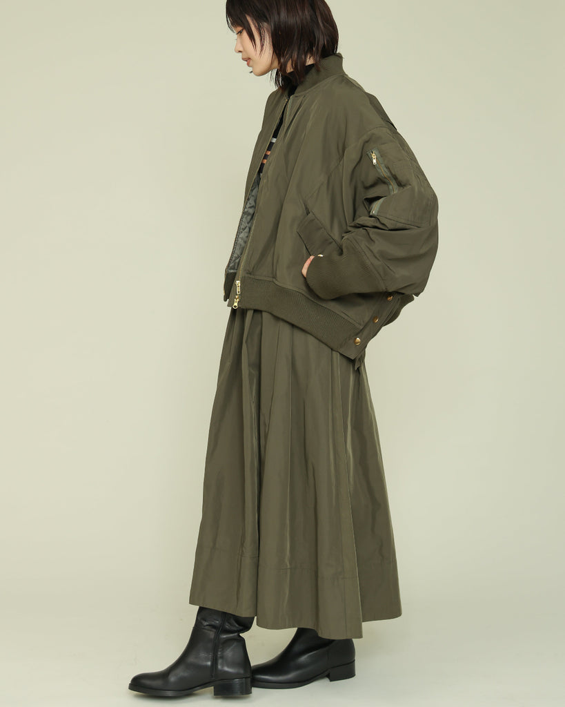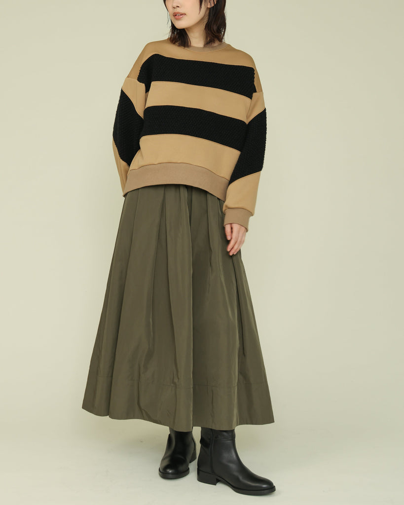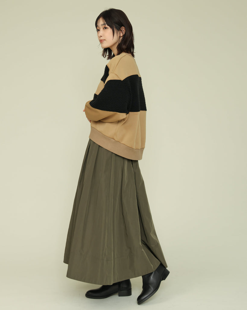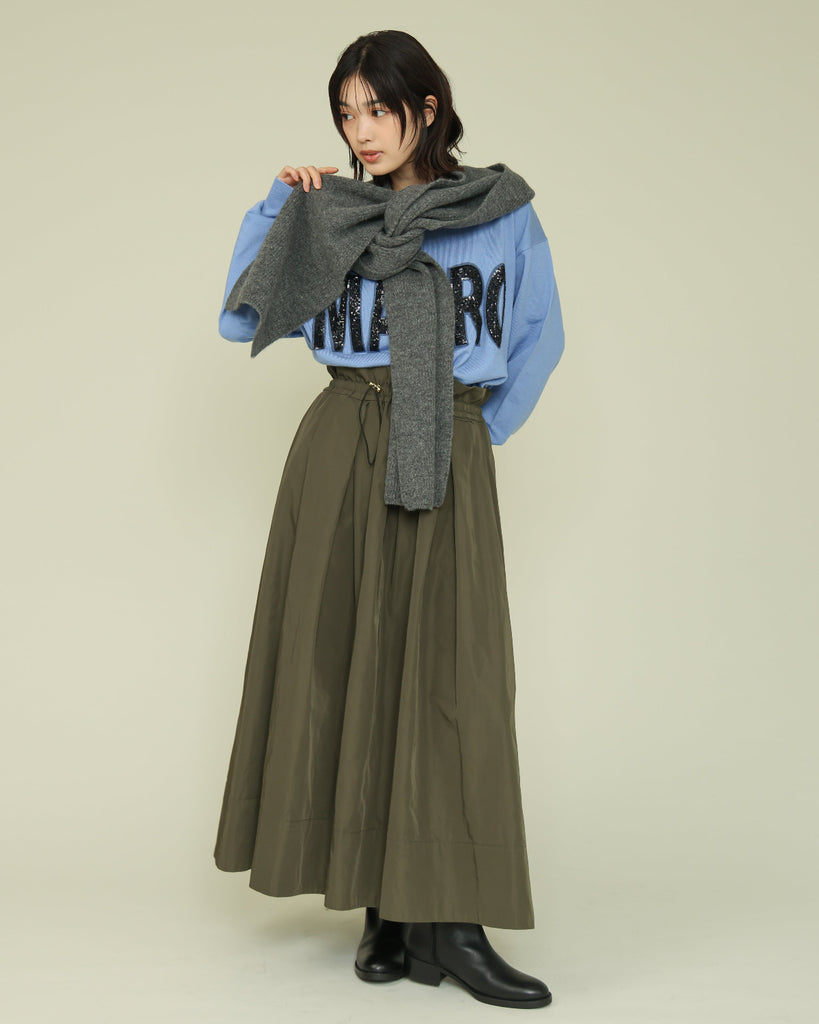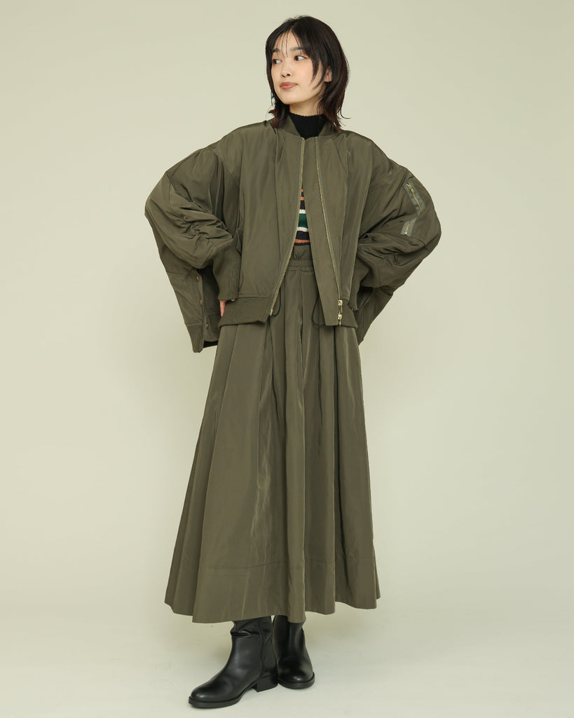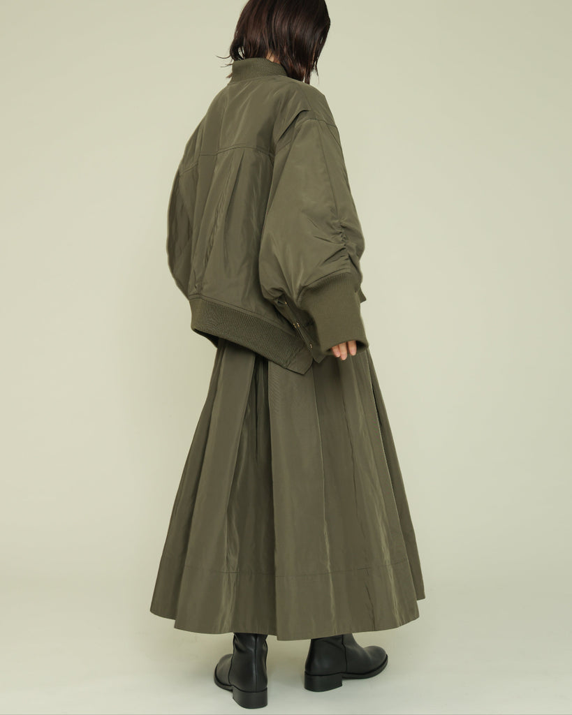 ハリのある素材を使用したタックスカート。
