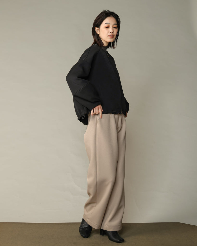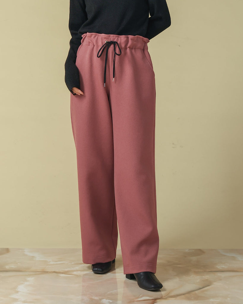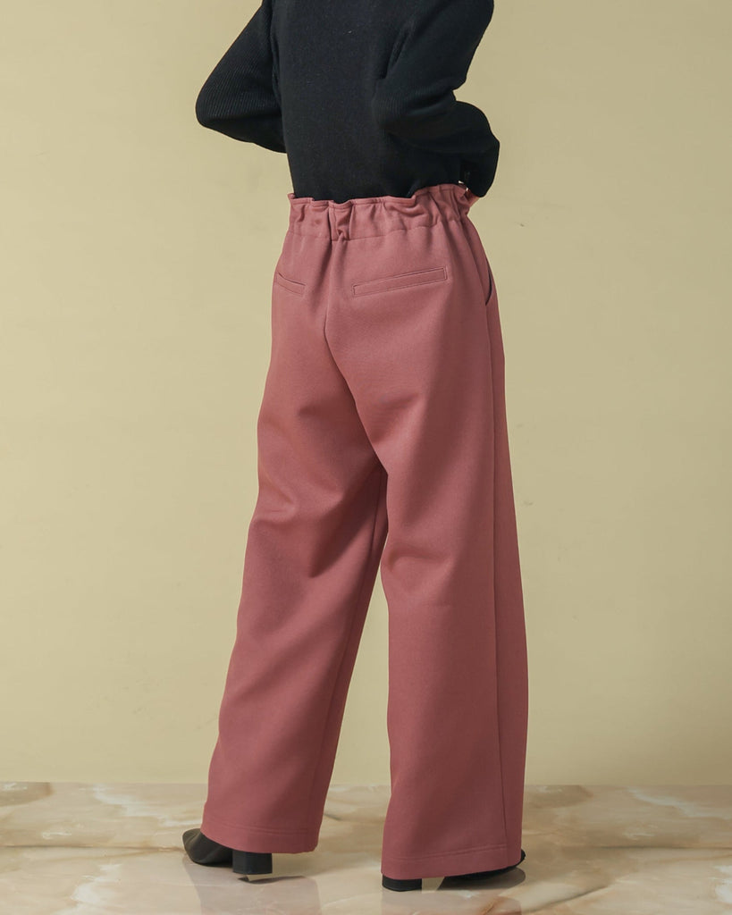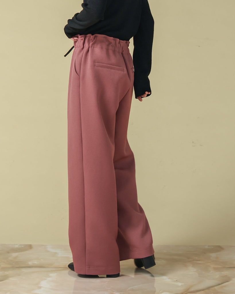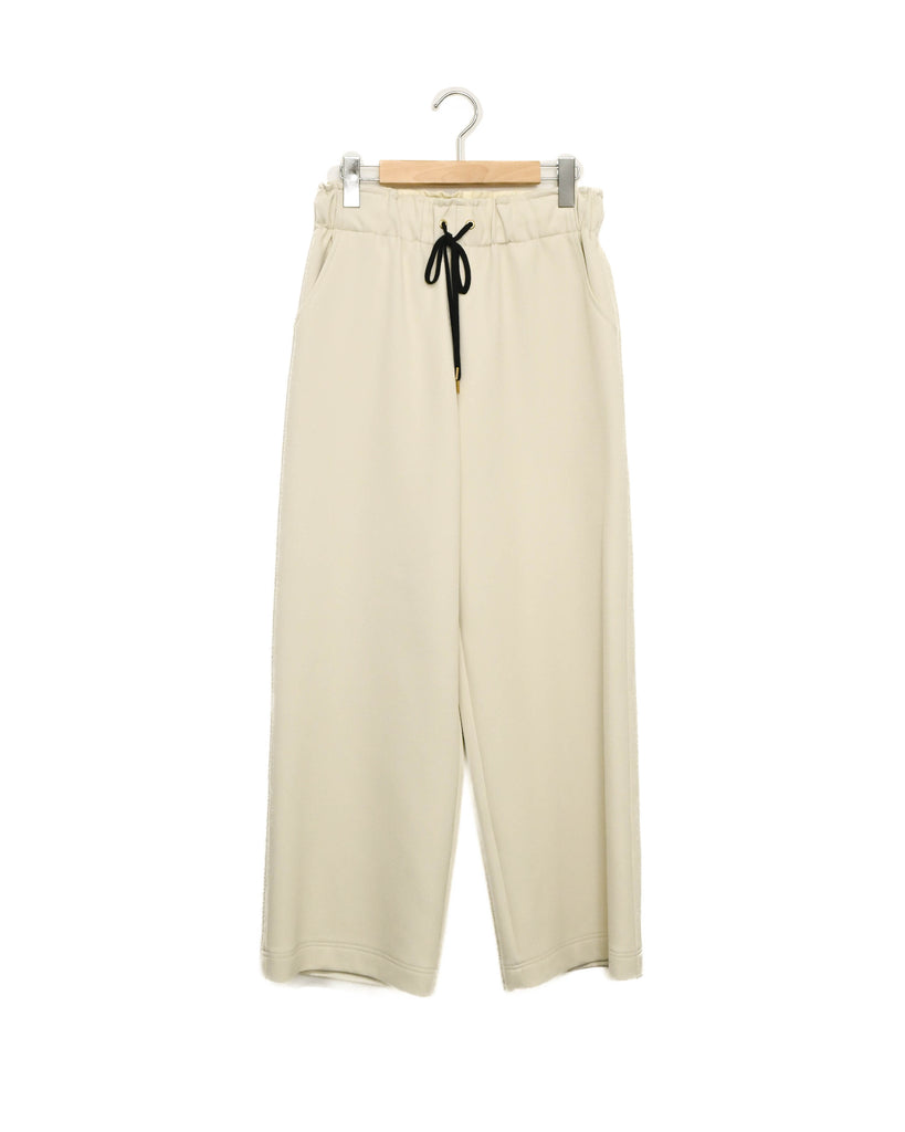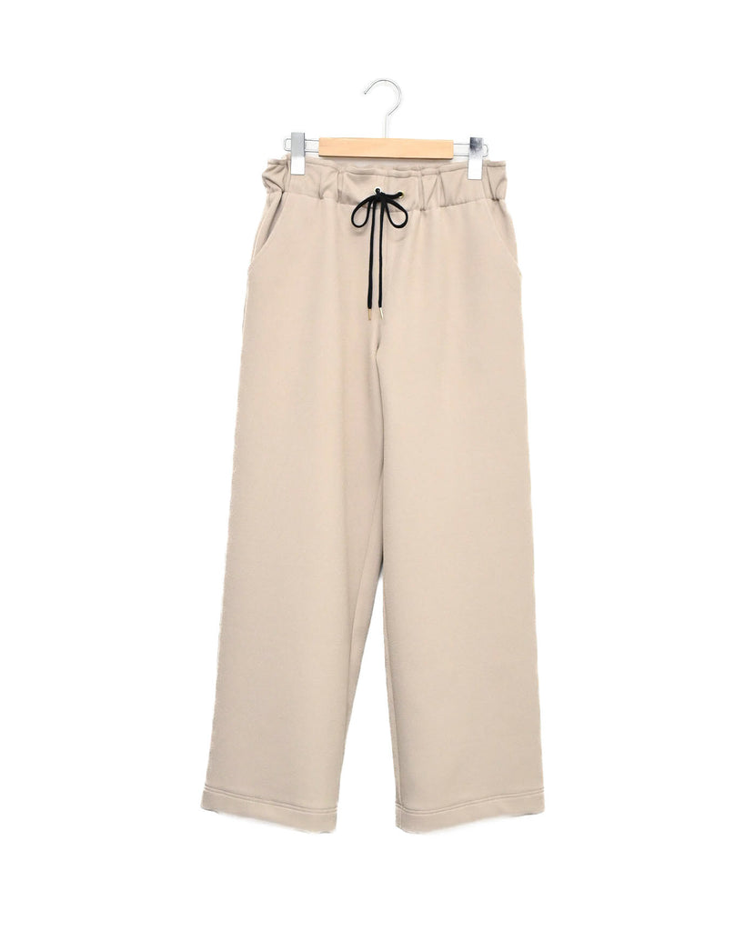 腰まわりはすっきり見せつつ、太ももから裾にかけて自然に広がるセミワイドシルエットで脚のラインを拾いにくく、女性らしいシルエットを演出します。